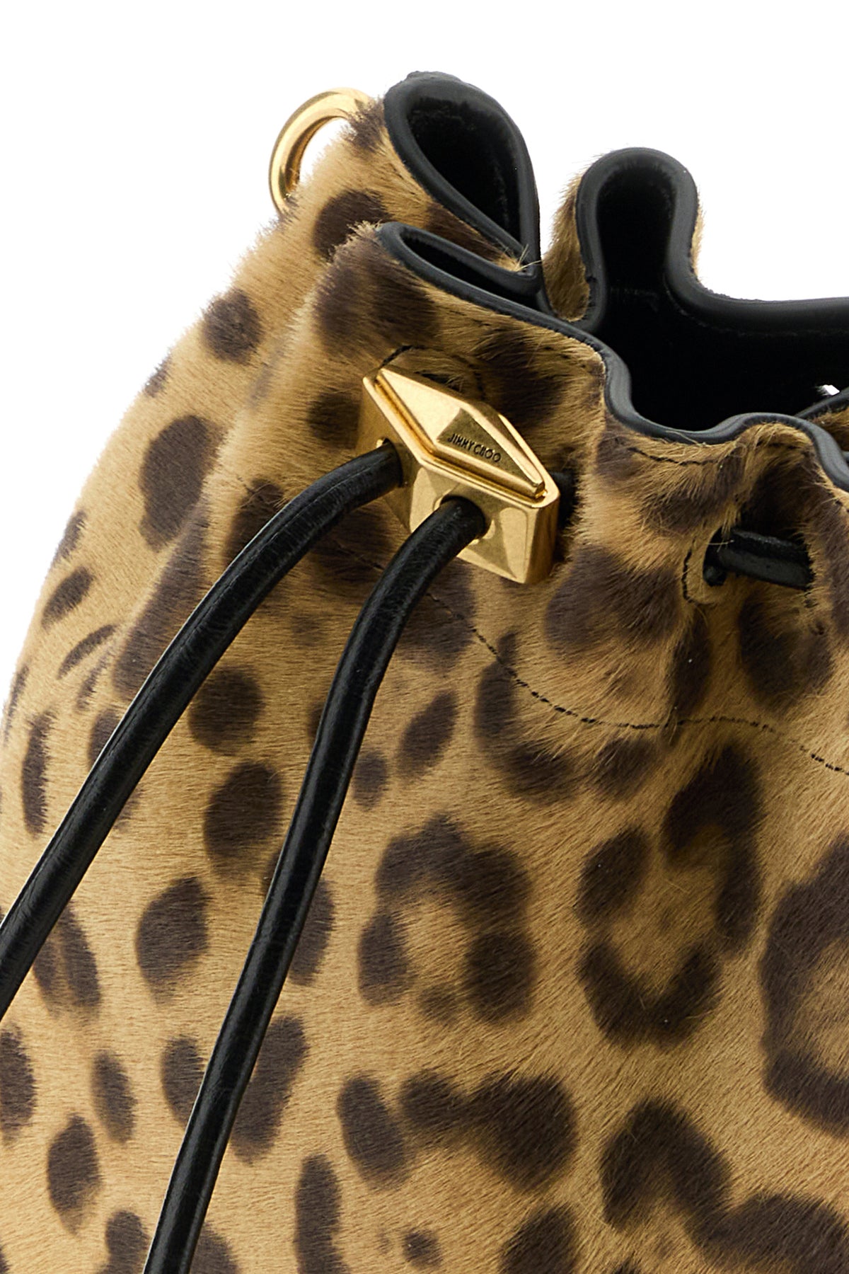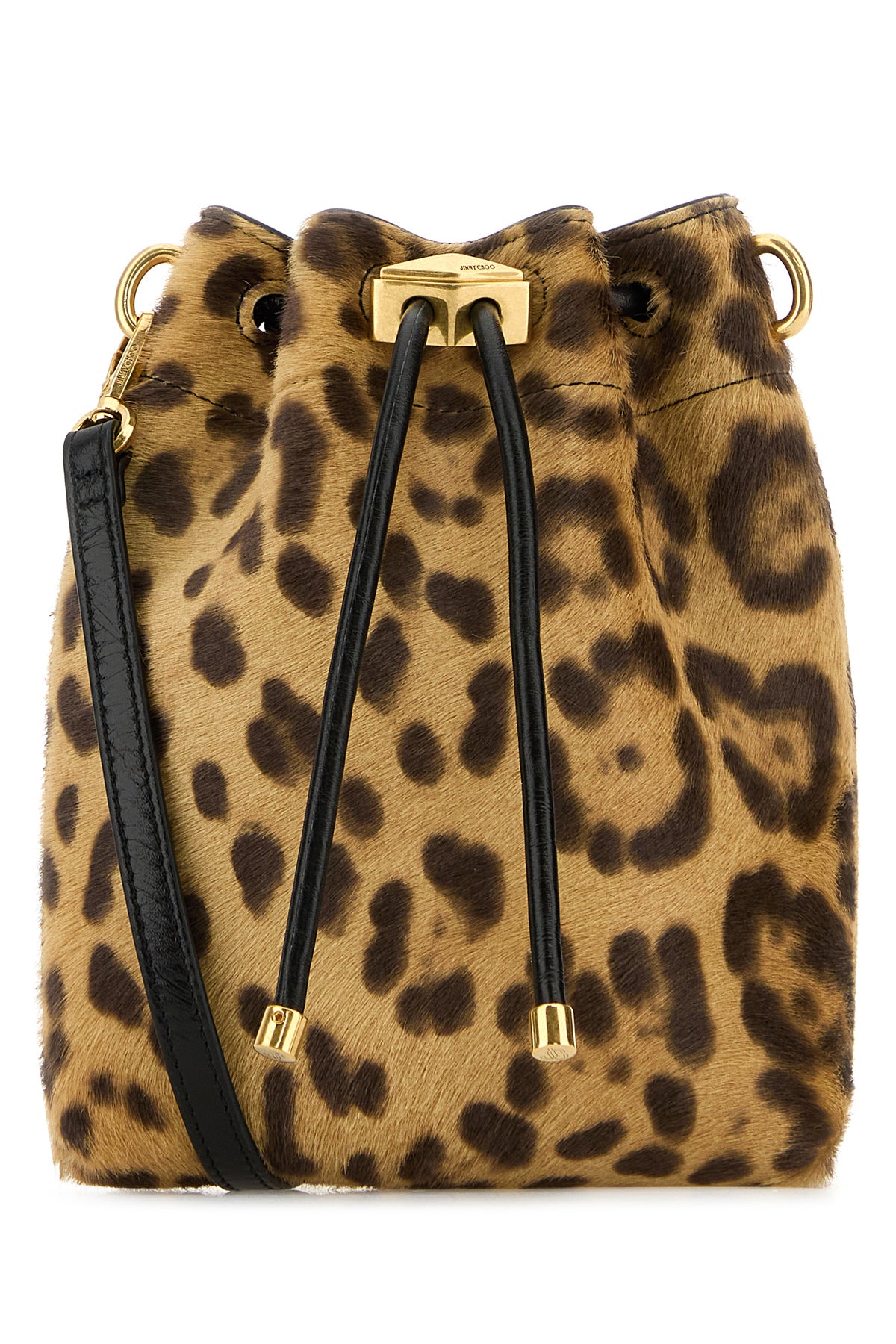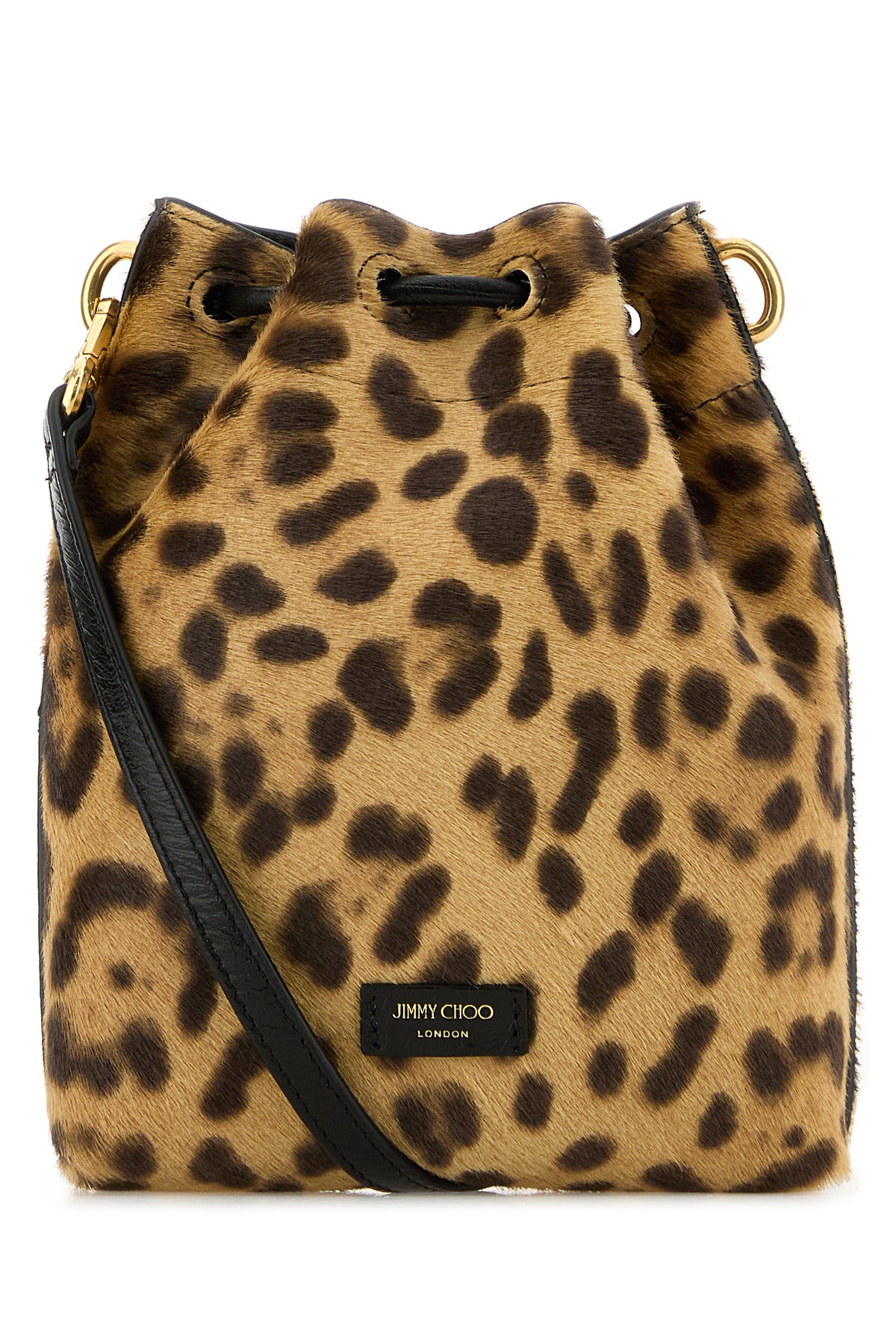 Borsa a secchiello realizzata in cavallino caratterizzata da stampa a motivo leopardo su tutta la superficie arricchita da etichetta logata sul retro.
