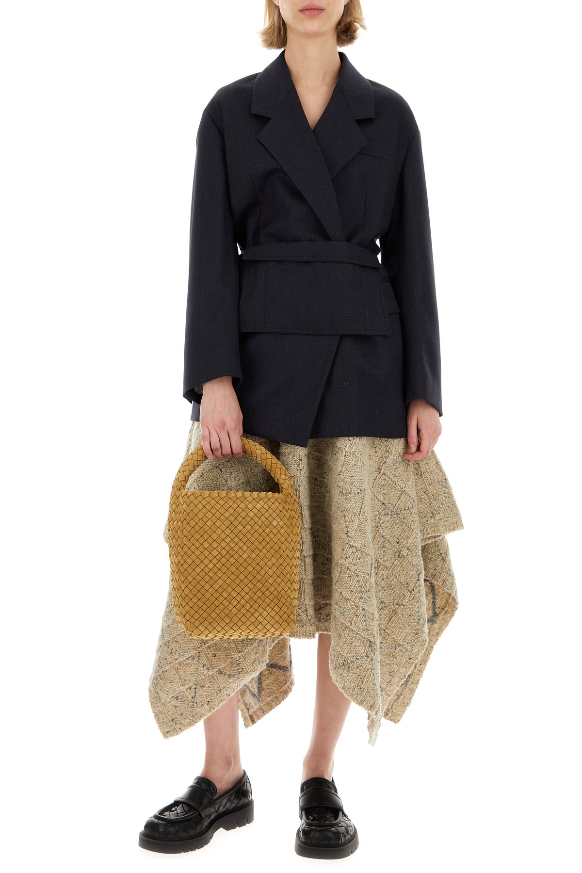 Borsa a secchiello realizzata in pelle scamosciata caratterizzata da iconico motivo Intrecciato su tutta la superficie.