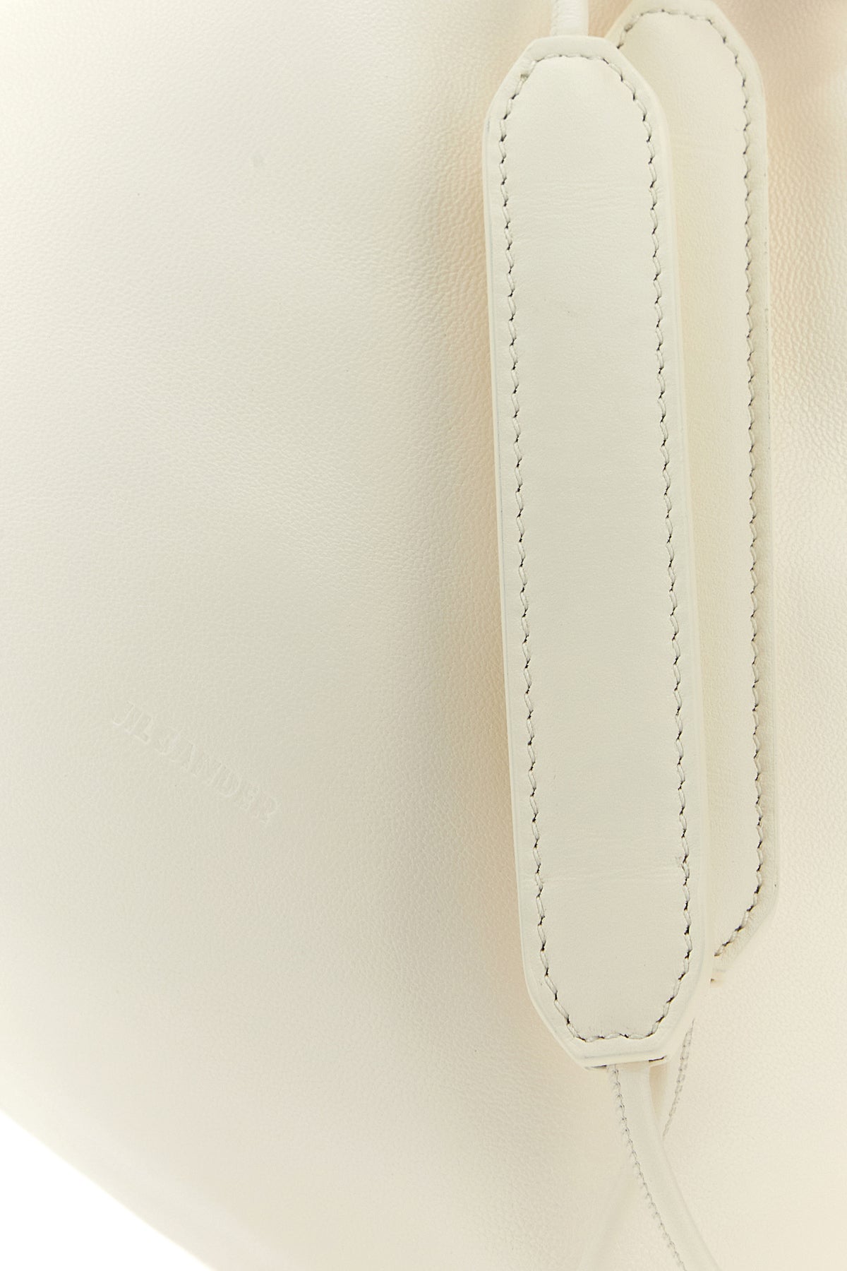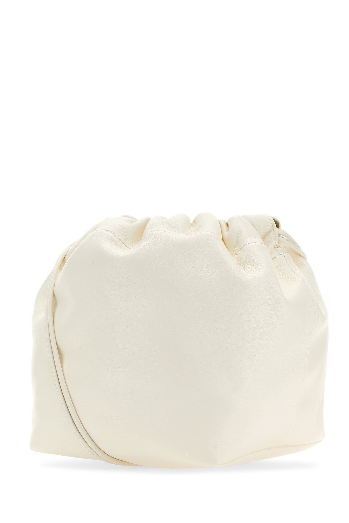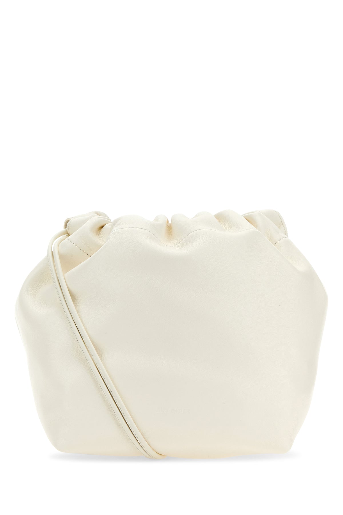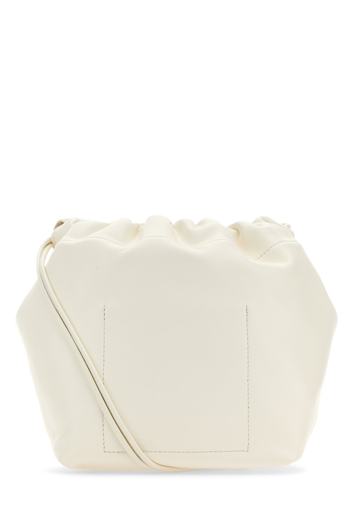 Borsa a secchiello realizzata in pelle di agnello martellata caratterizzata da logo impresso sulla parte frontale.