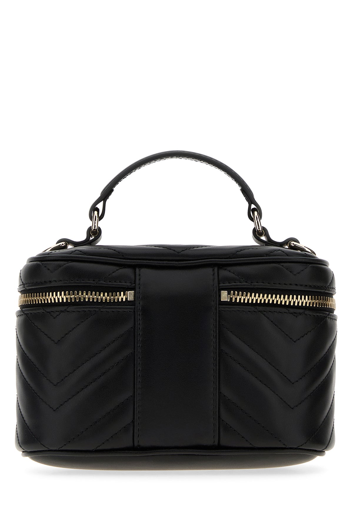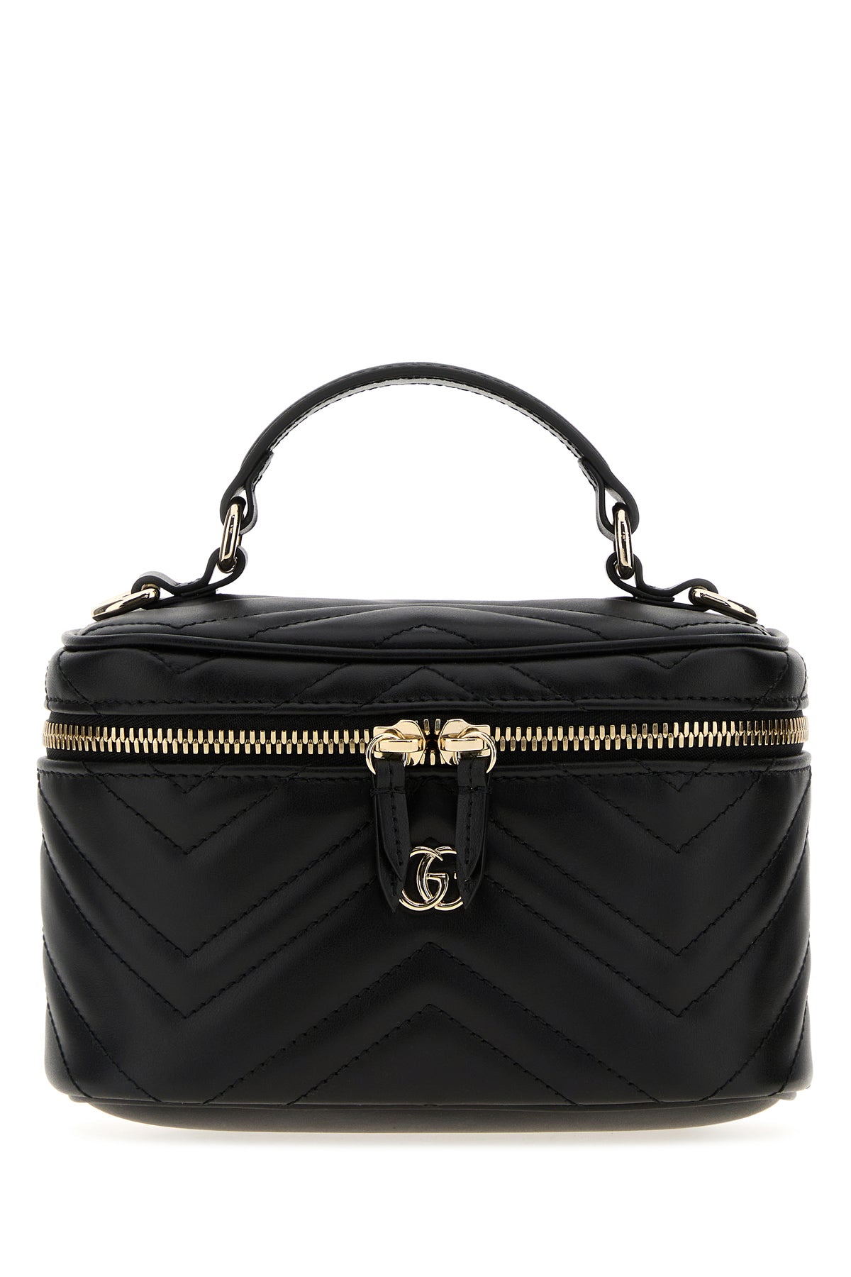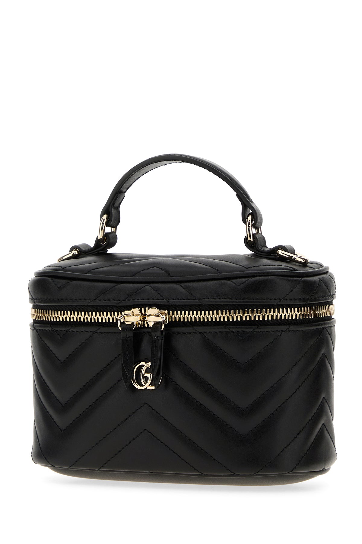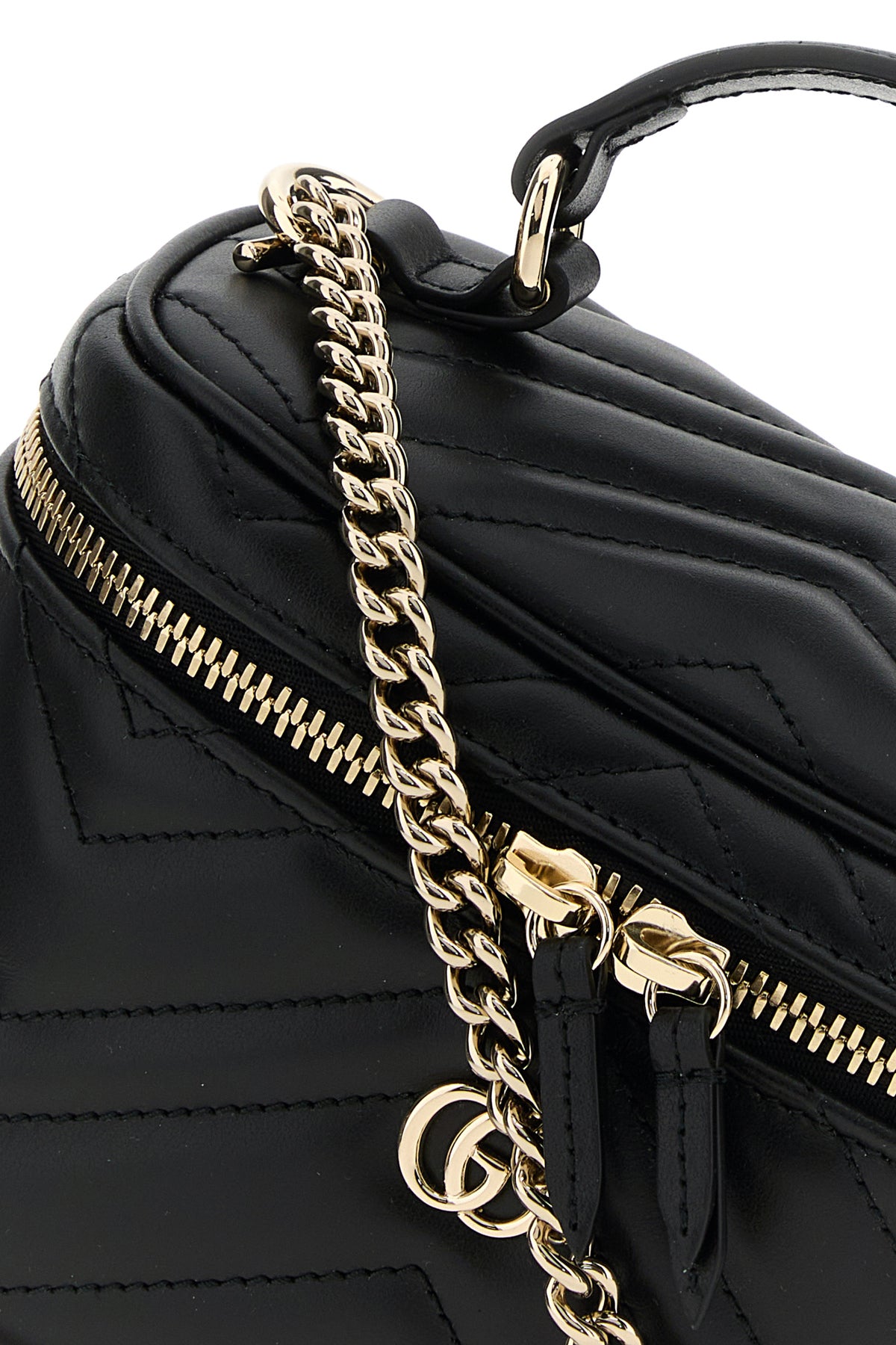 Borsa a secchiello realizzata in pelle a motivo chevron arricchita da dettaglio metallico GG sulla parte frontale.