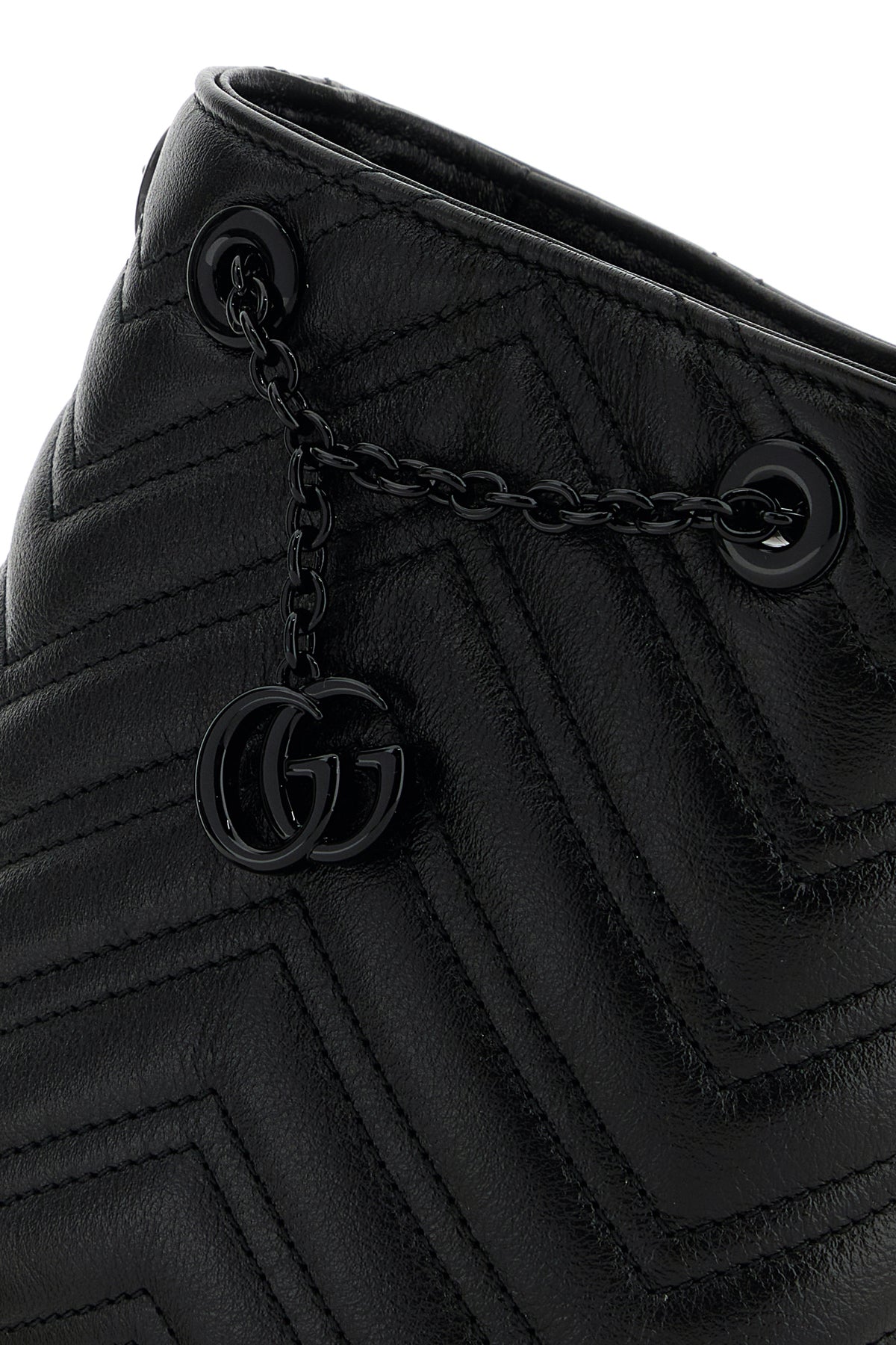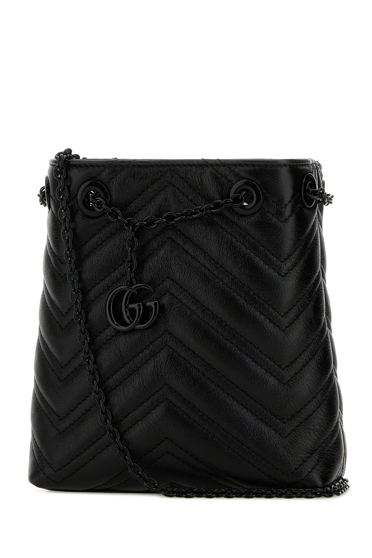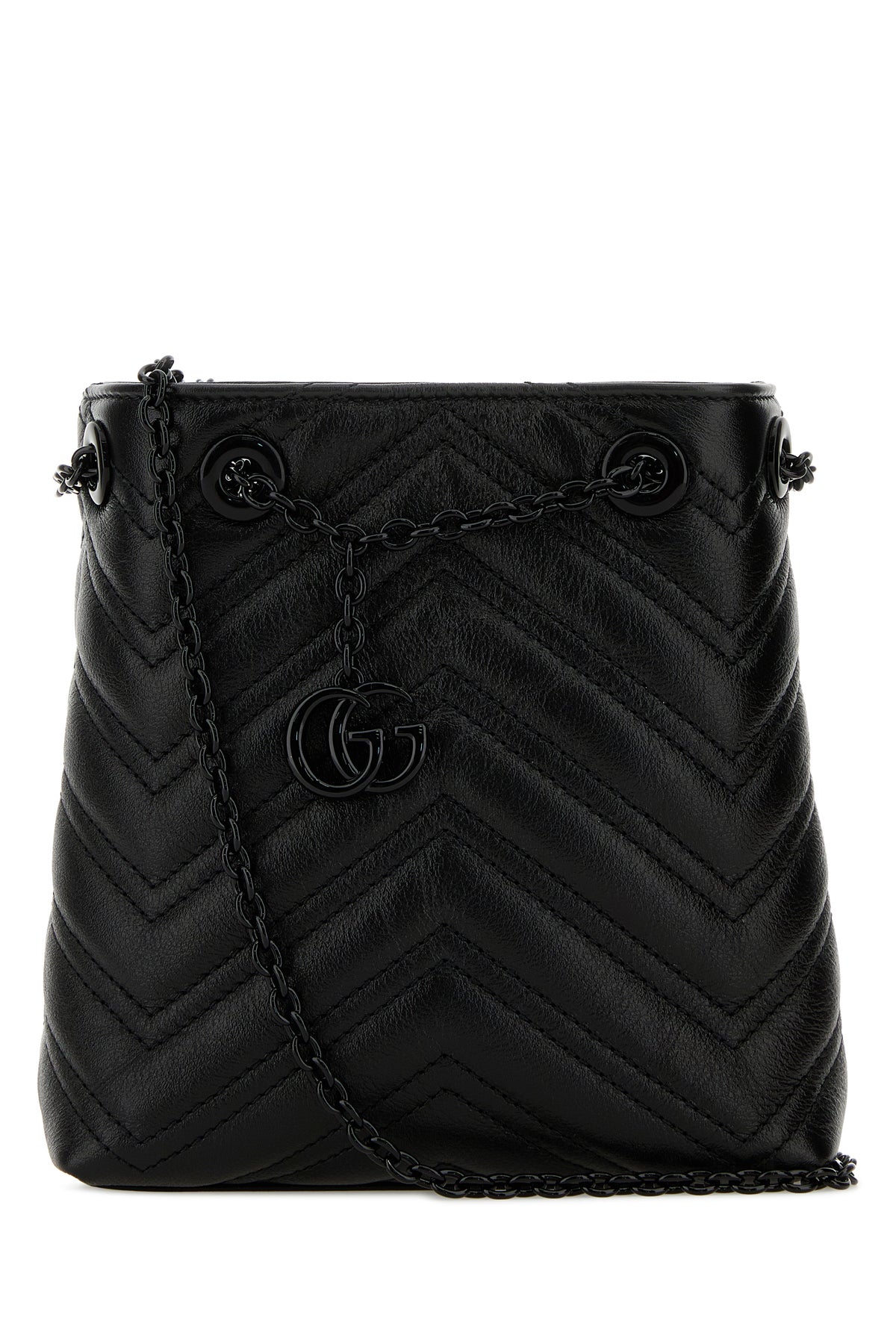 Borsa a secchiello realizzata in nappa matelassé arricchita da dettaglio metallico GG sulla parte frontale.