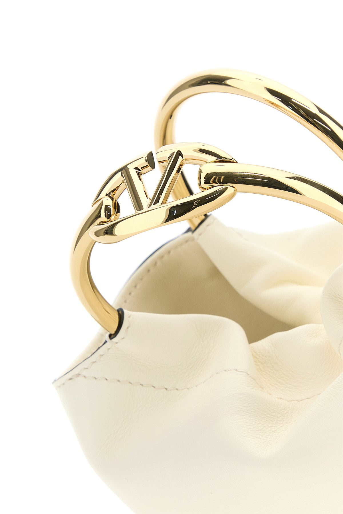 Borsa a secchiello realizzata in pelle liscia caratterizzata da logo stampato a contrasto sul retro e dettaglio VLogo metallico sul manico.