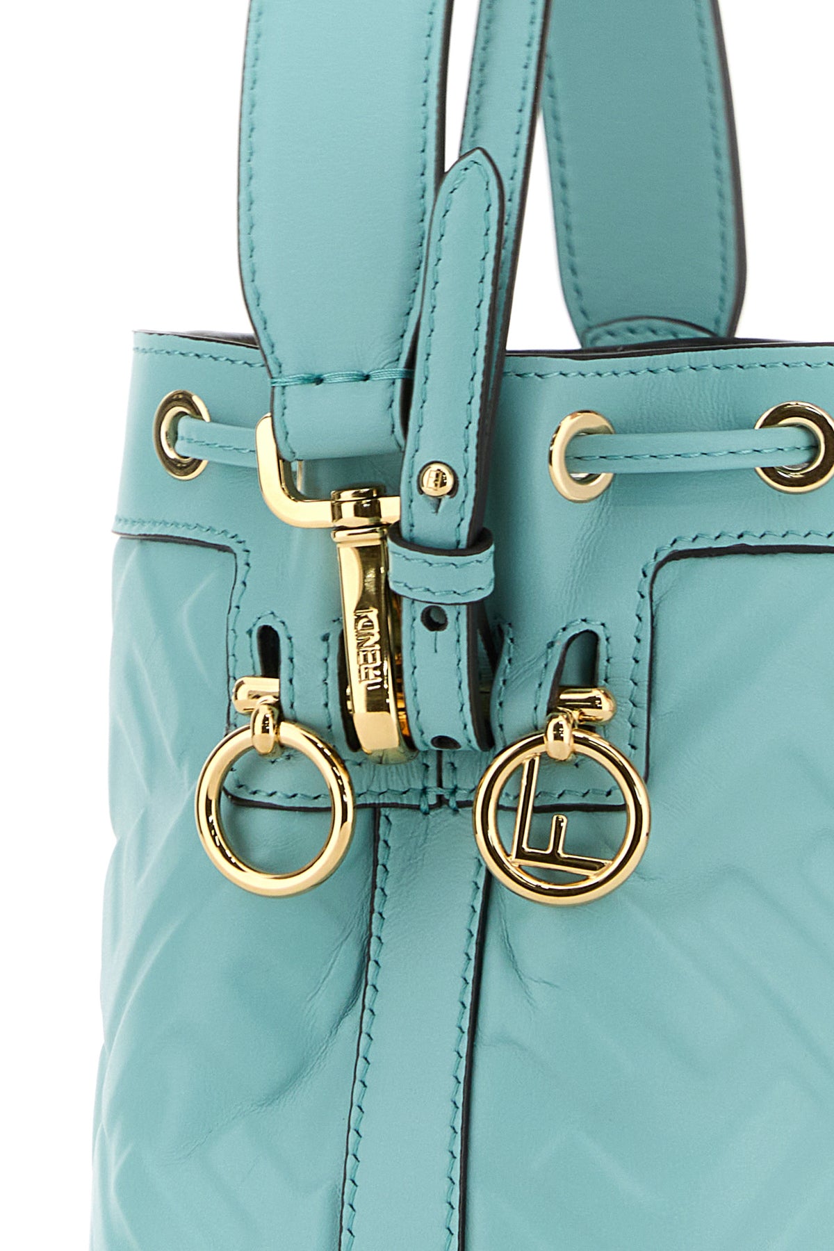 Borsa a secchiello realizzata in pelle caratterizzata da motivo FF in rilievo su tutta la superficie e logo stampato laminato sulla parte frontale arricchita da dettagli metallici logati.