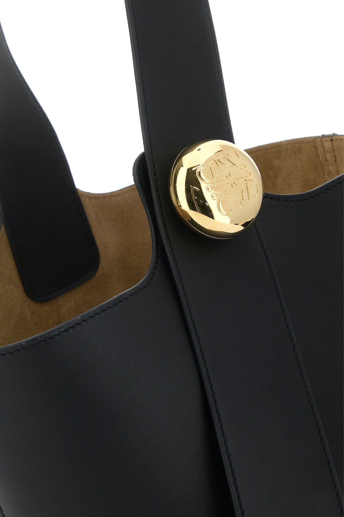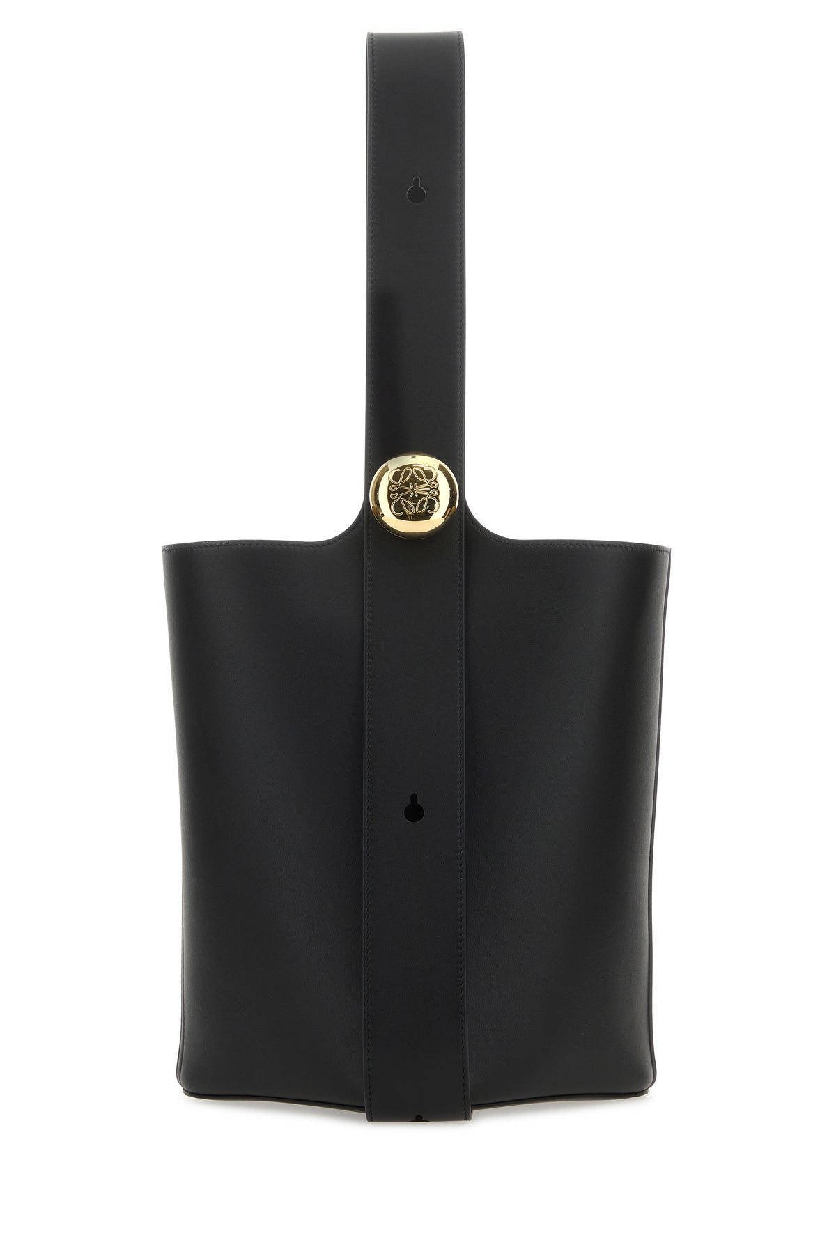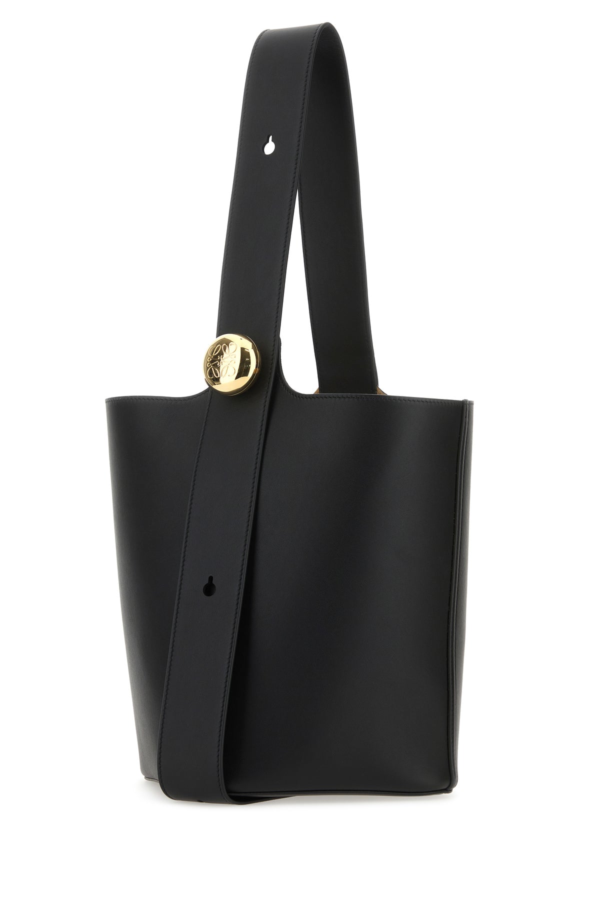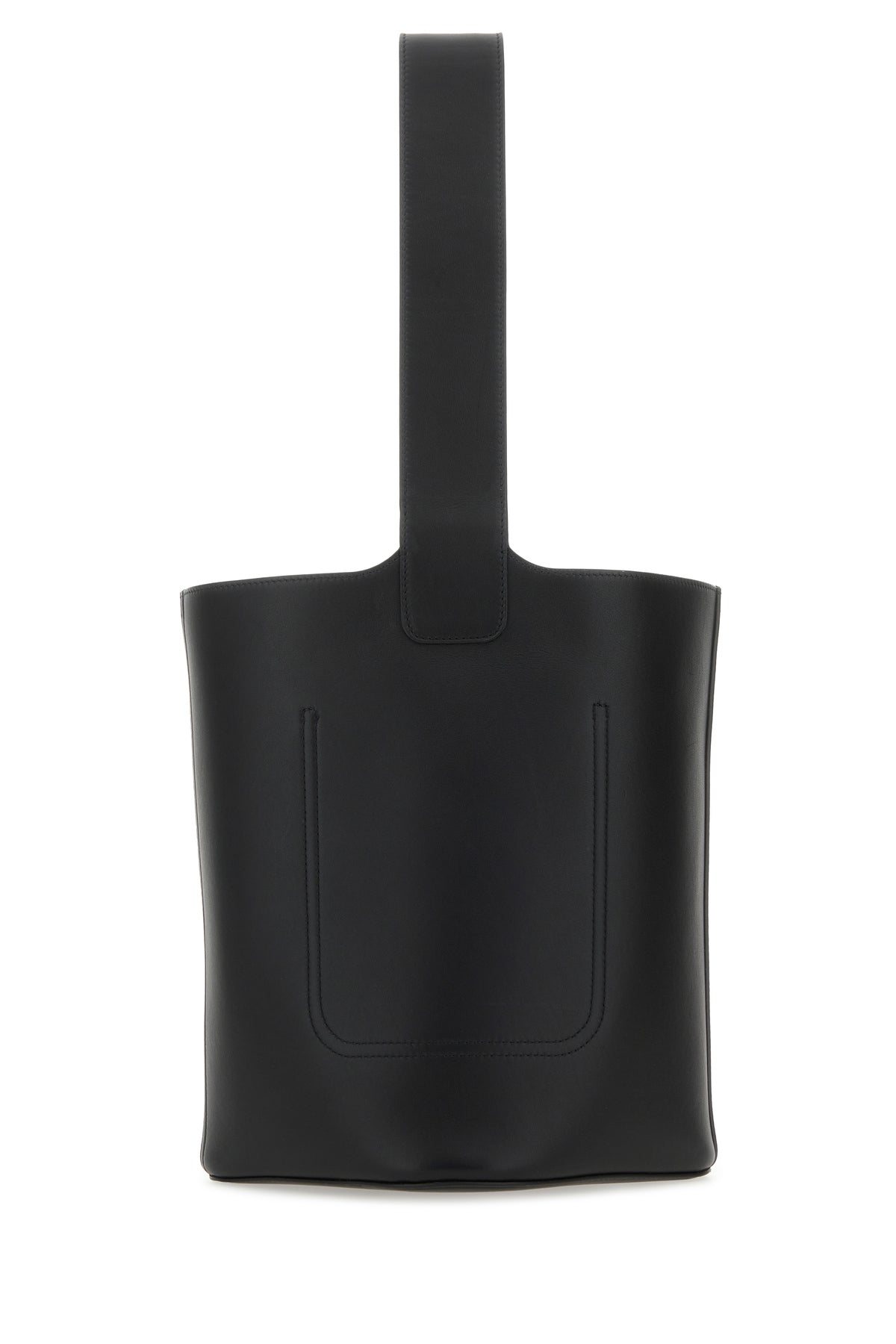 Borsa a secchiello realizzata in pelle di vitello leggermente martellata arricchita da dettaglio Anagram in metallo sulla parte frontale.