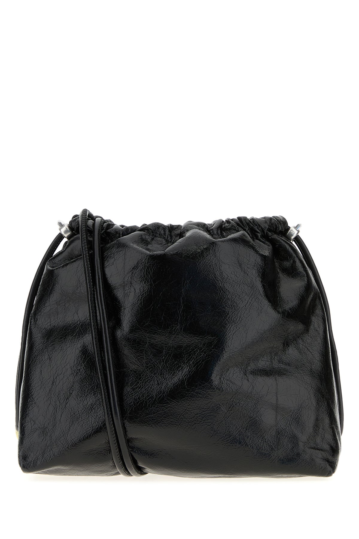 Borsa a secchiello Scrunch-D in pelle nera