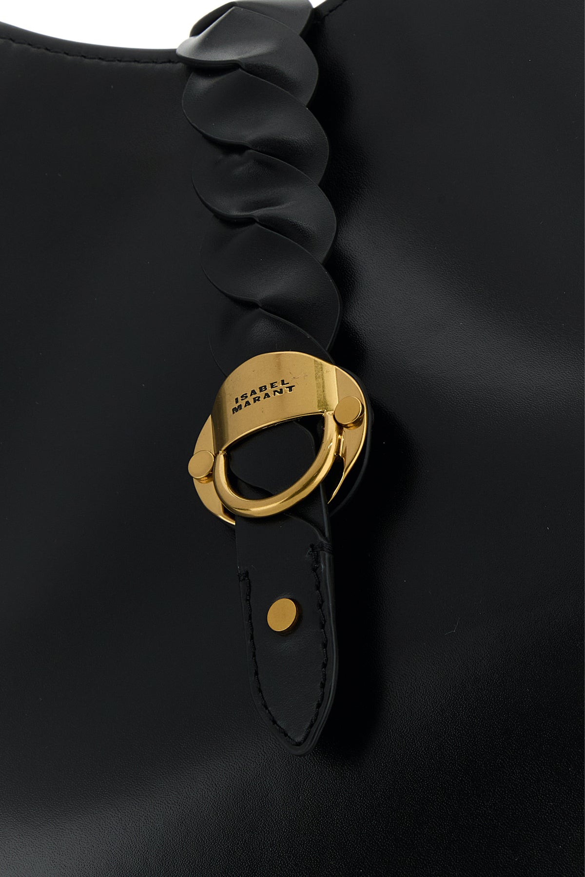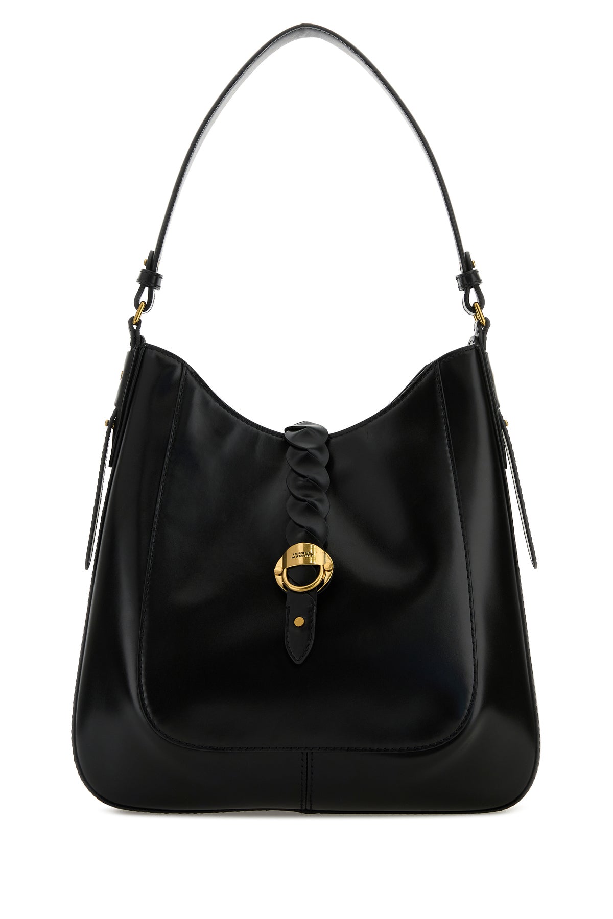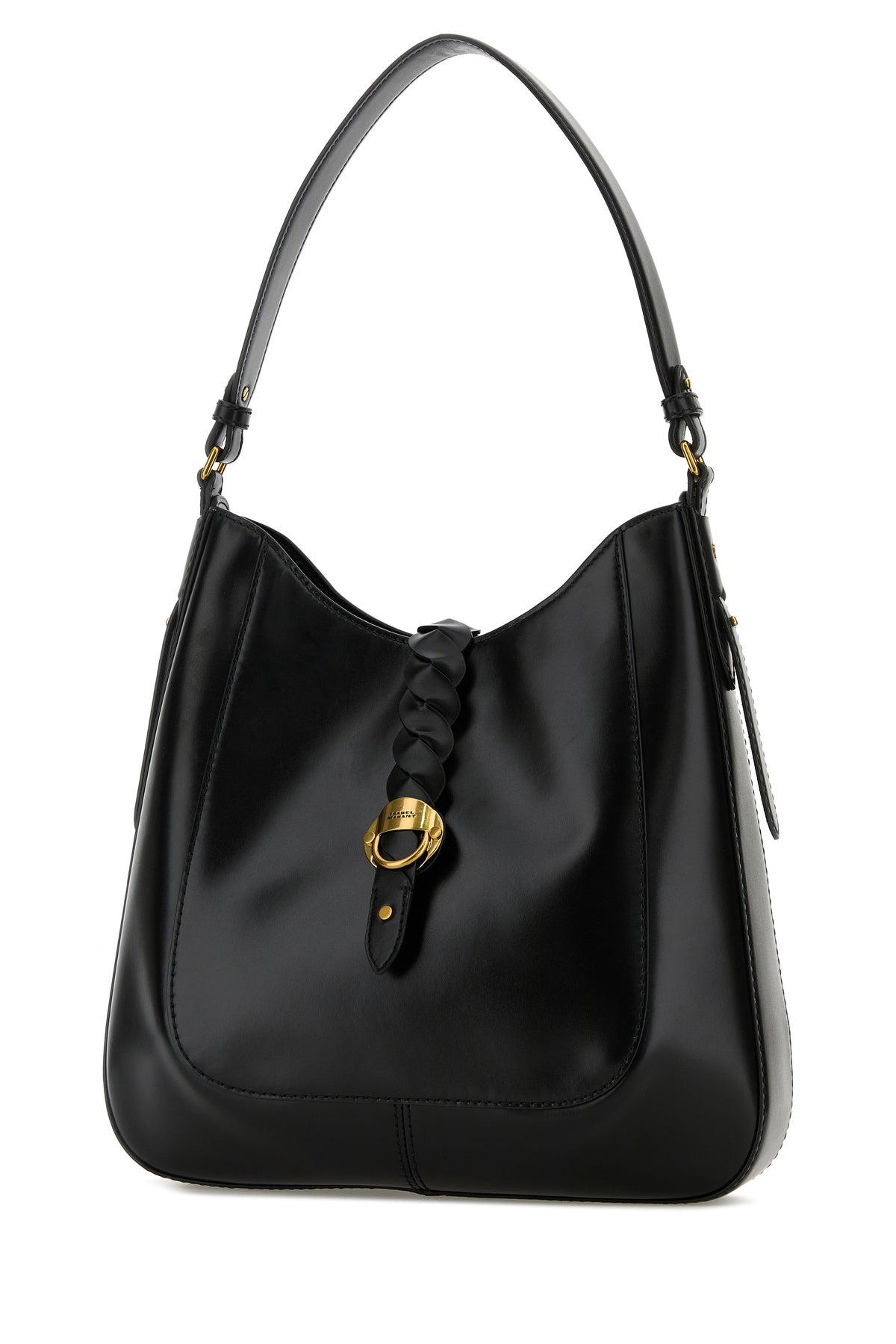 Borsa a spalla realizzata in pelle liscia arricchita da dettaglio metallico logato sulla parte frontale.