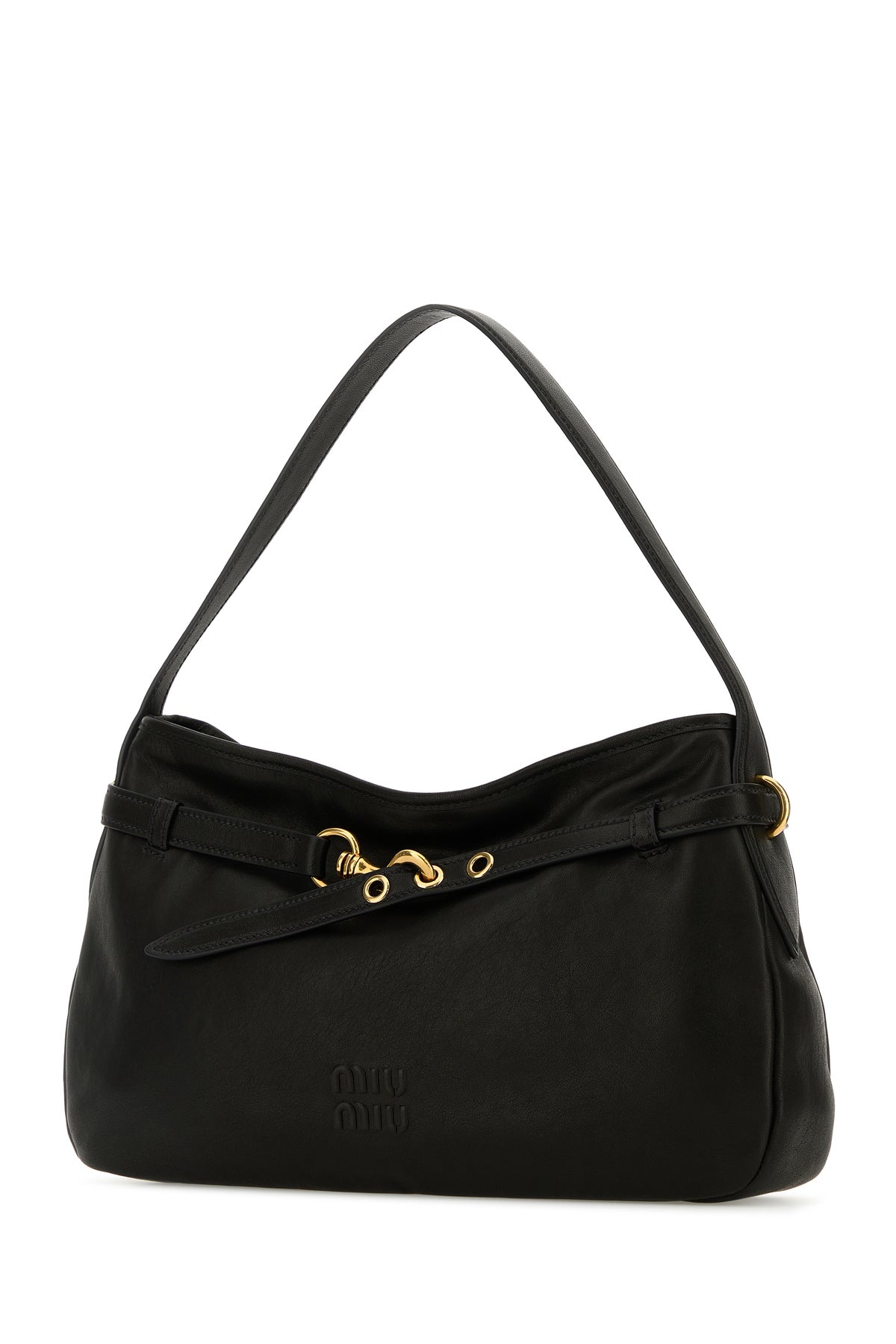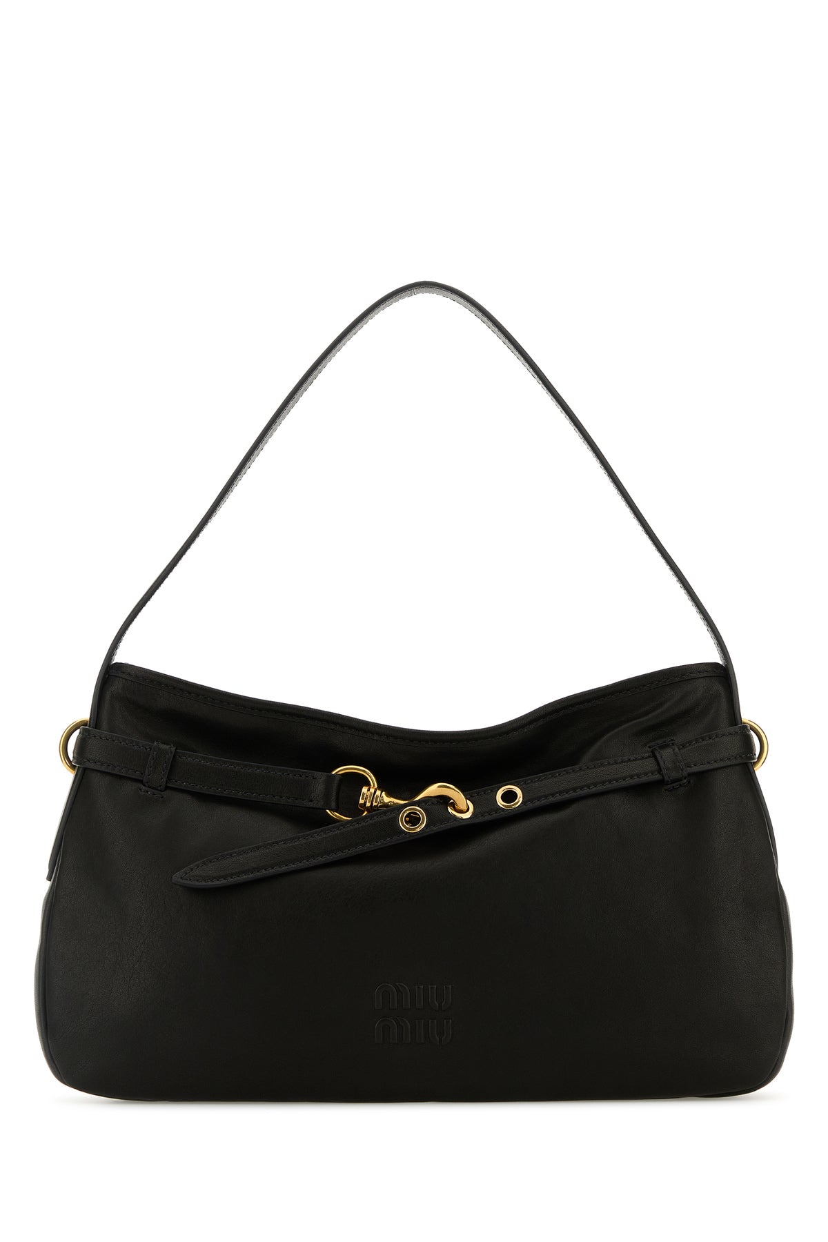 Borsa a spalla realizzata in nappa leggermente martellata caratterizza da logo in rilievo sulla parte frontale.