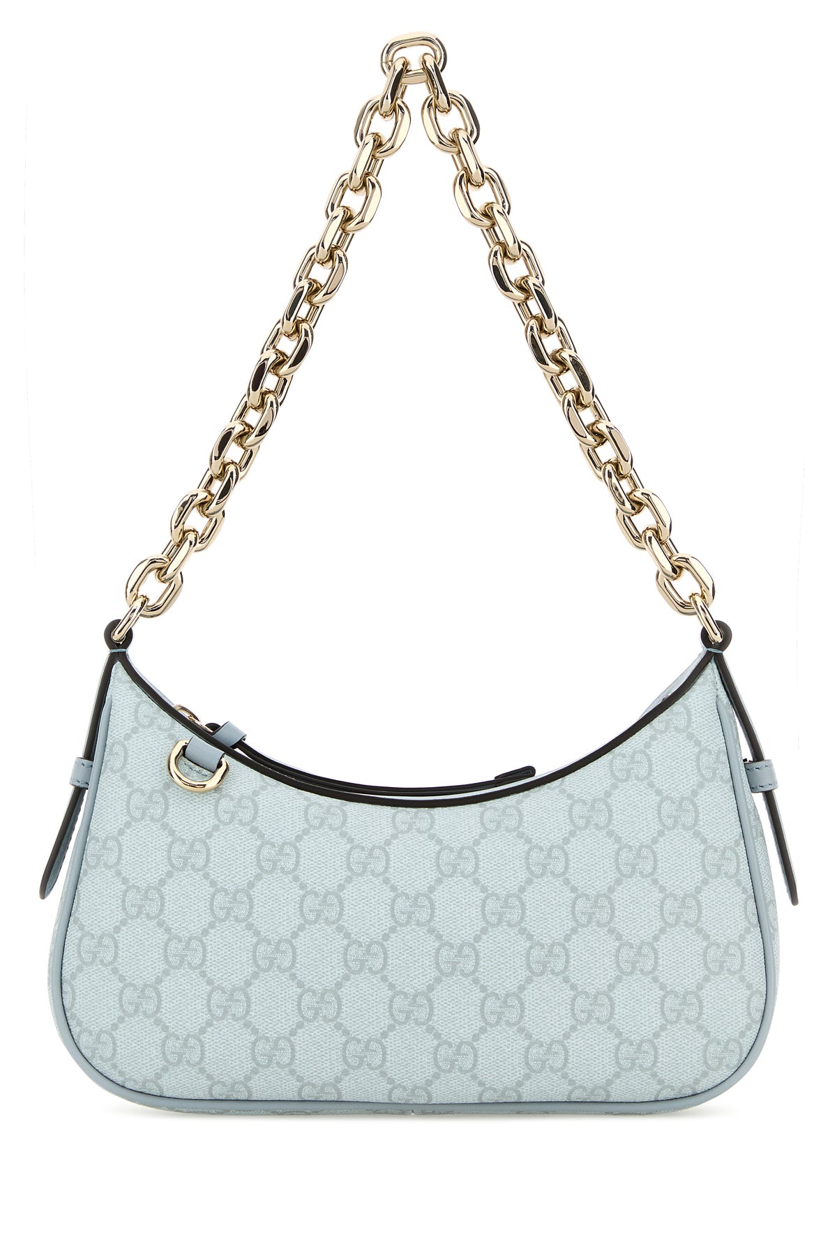 Borsa a spalla realizzata in tela rivestita caratterizzata da stampa GG su tutta la superficie.