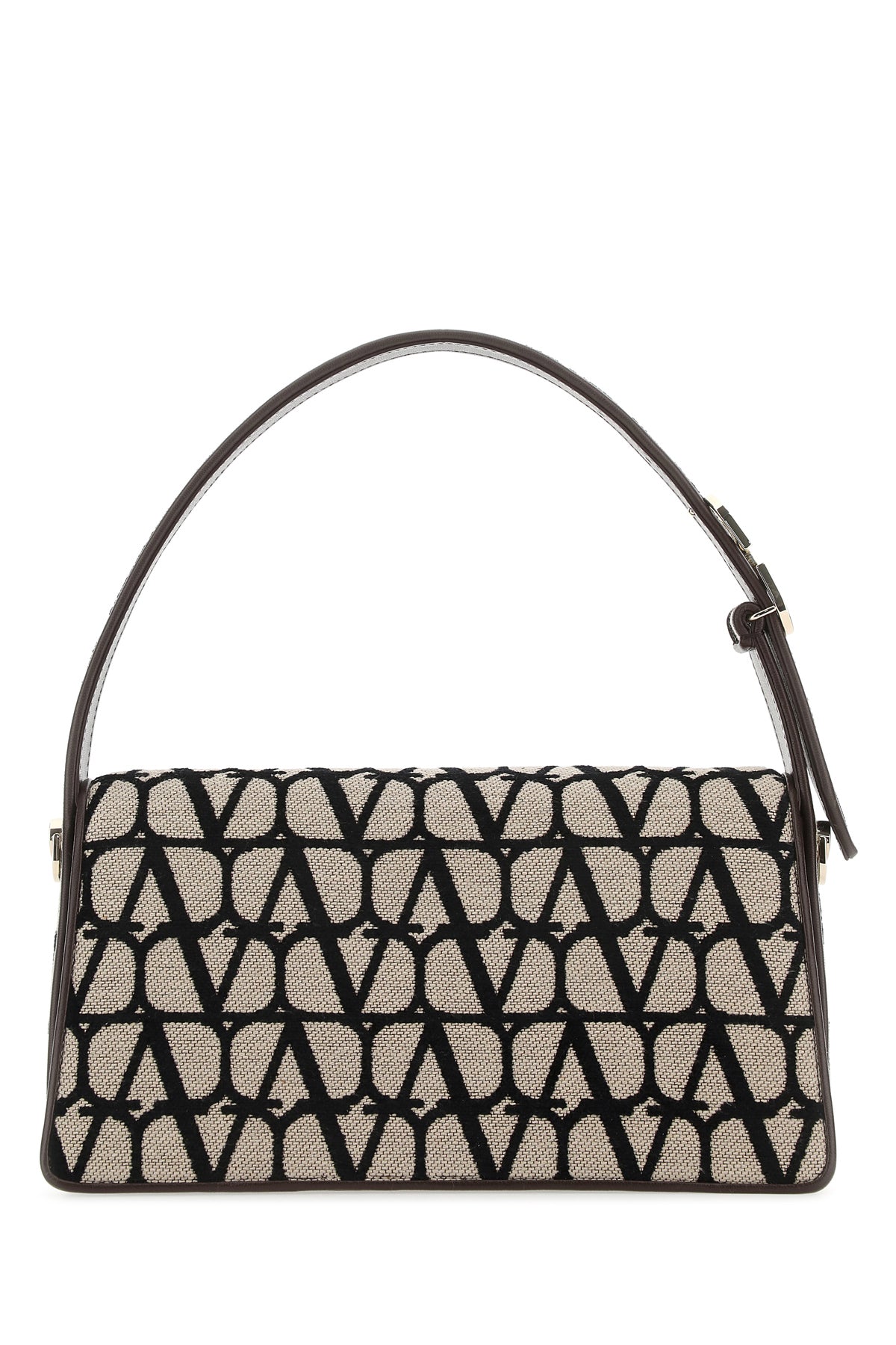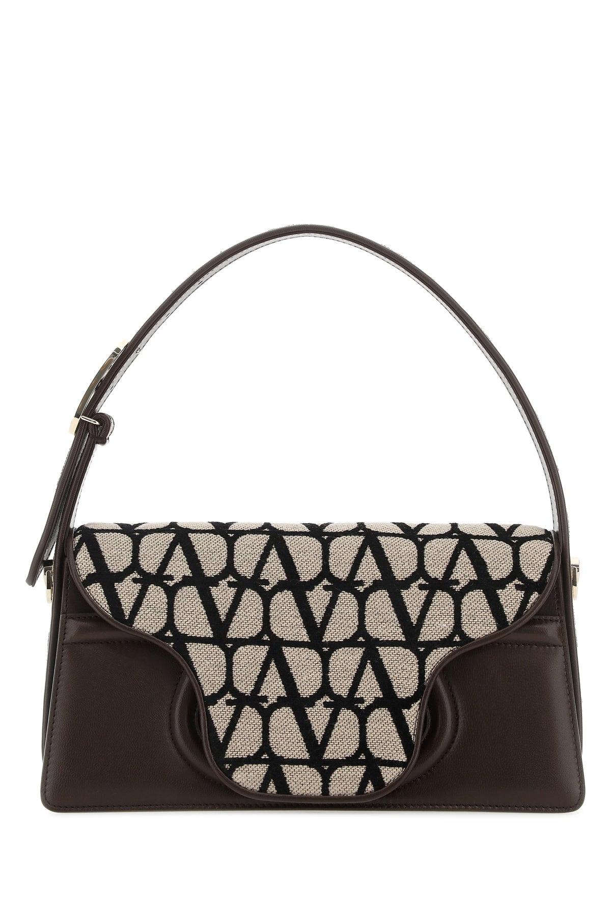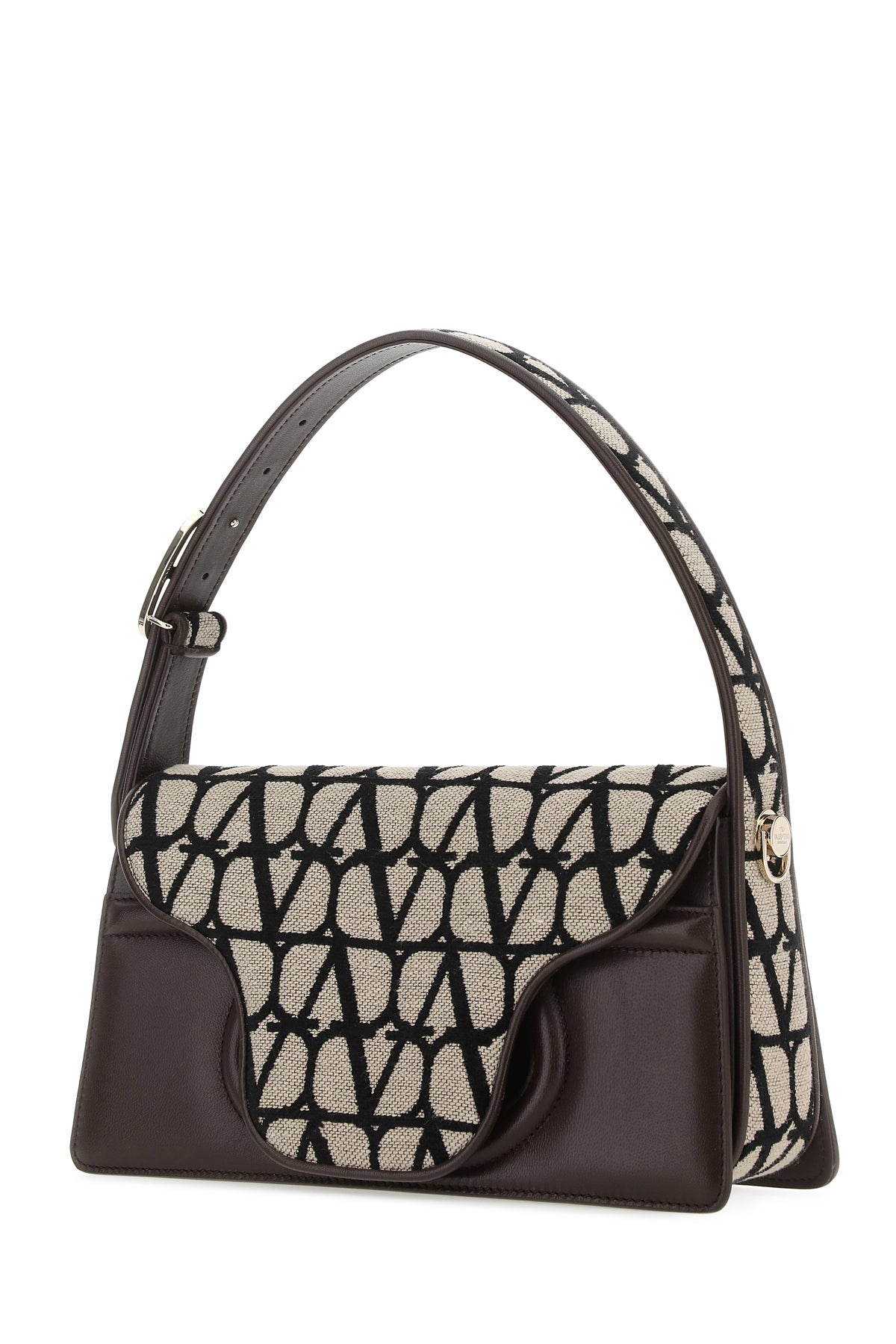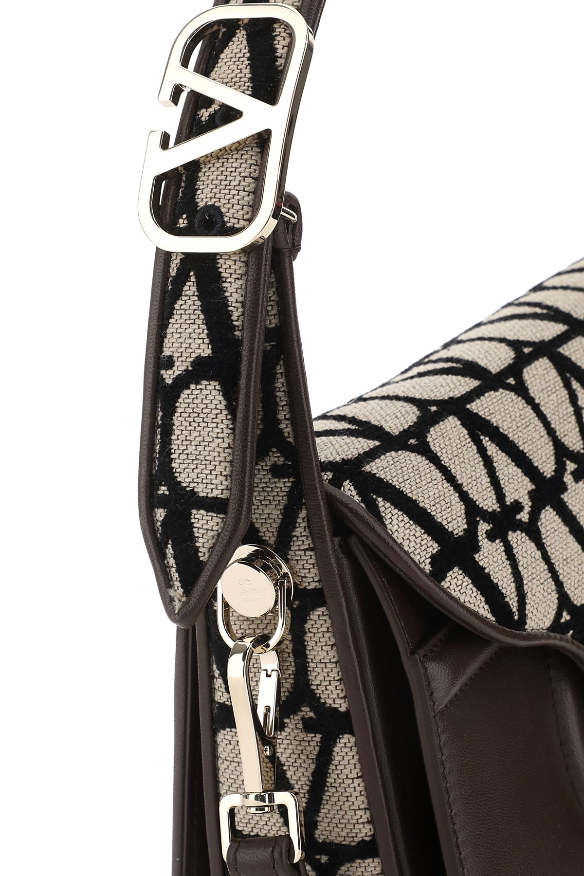 Borsa a spalla realizzata in Toile Iconographe e pelle leggermente martellata arricchita da dettaglio metallico Vlogo sul manico.