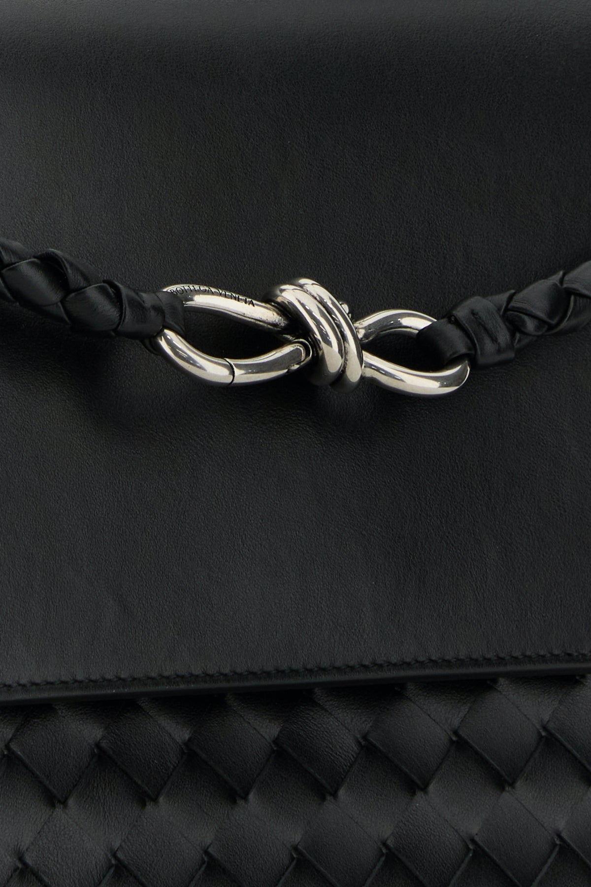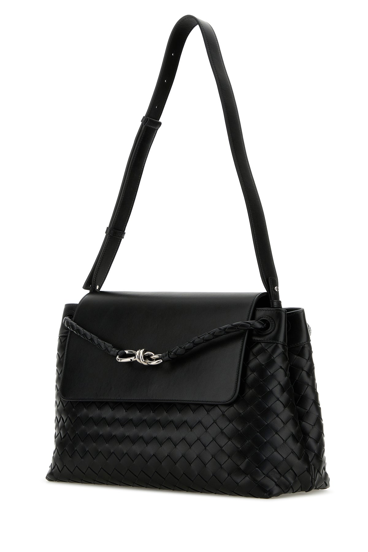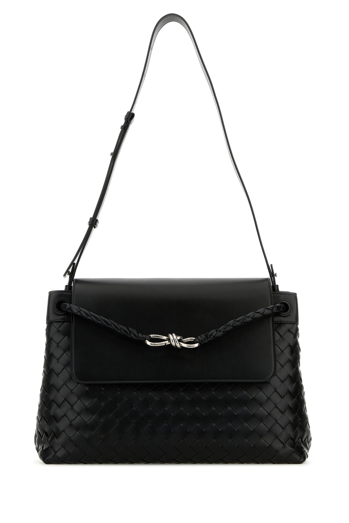 Borsa a tracolla realizzata in pelle di vitello caratterizzata da iconico motivo Intrecciato su tutta la superficie.