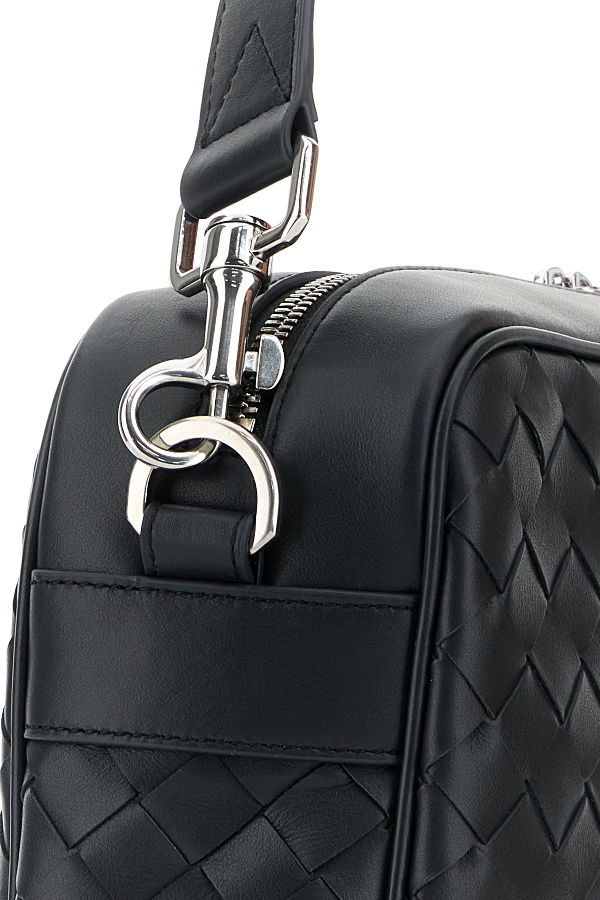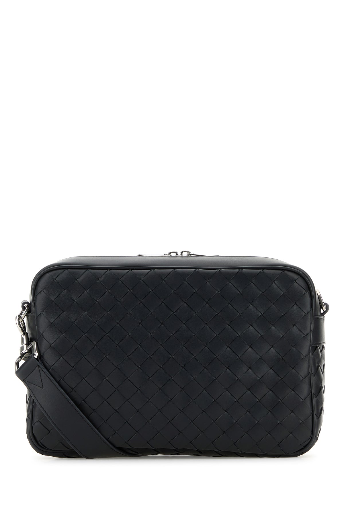 Borsa a tracolla realizzata in pelle di vitello liscia caratterizzata da iconico motivo Intrecciato su tutta la superficie.