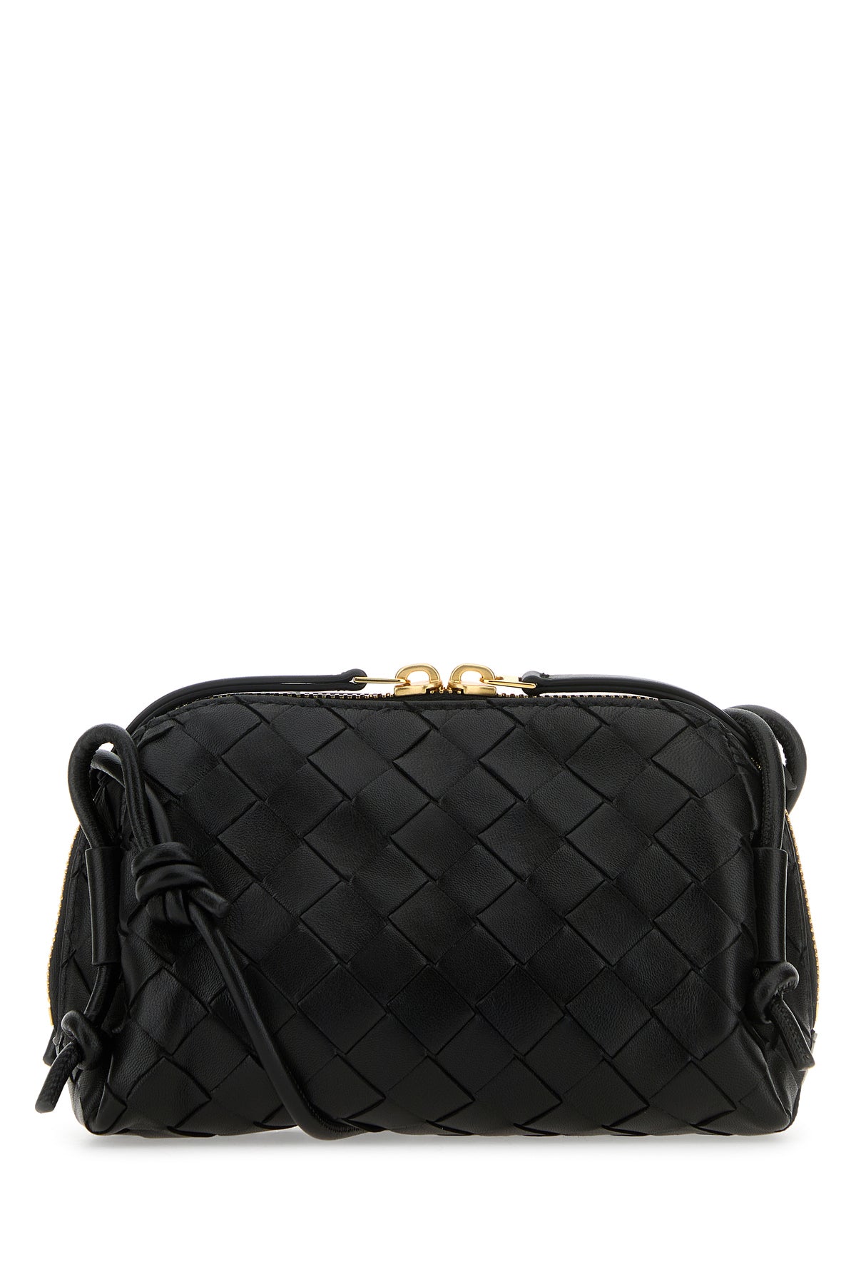 Borsa a tracolla realizzata in pelle di vitello caratterizzata da iconico motivo Intrecciato su tutta la superficie.
