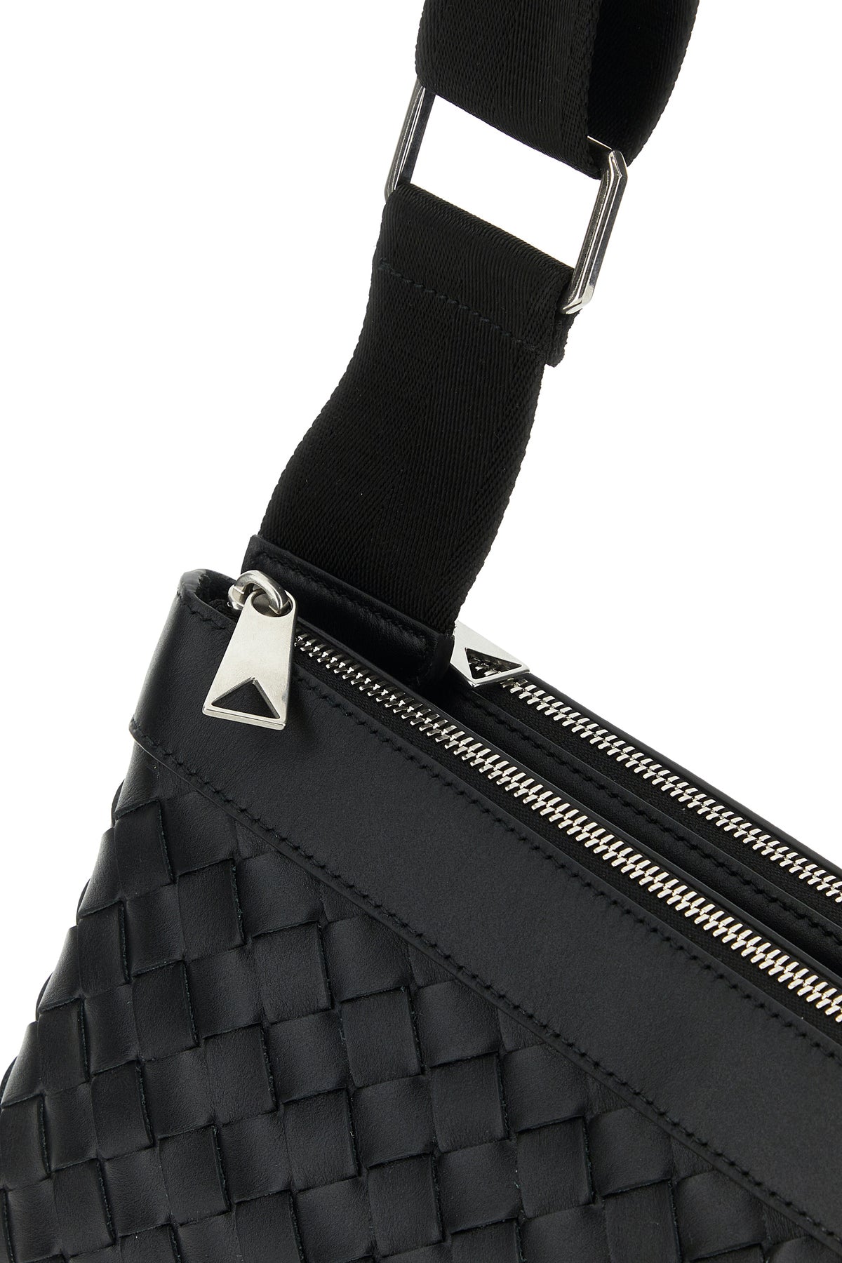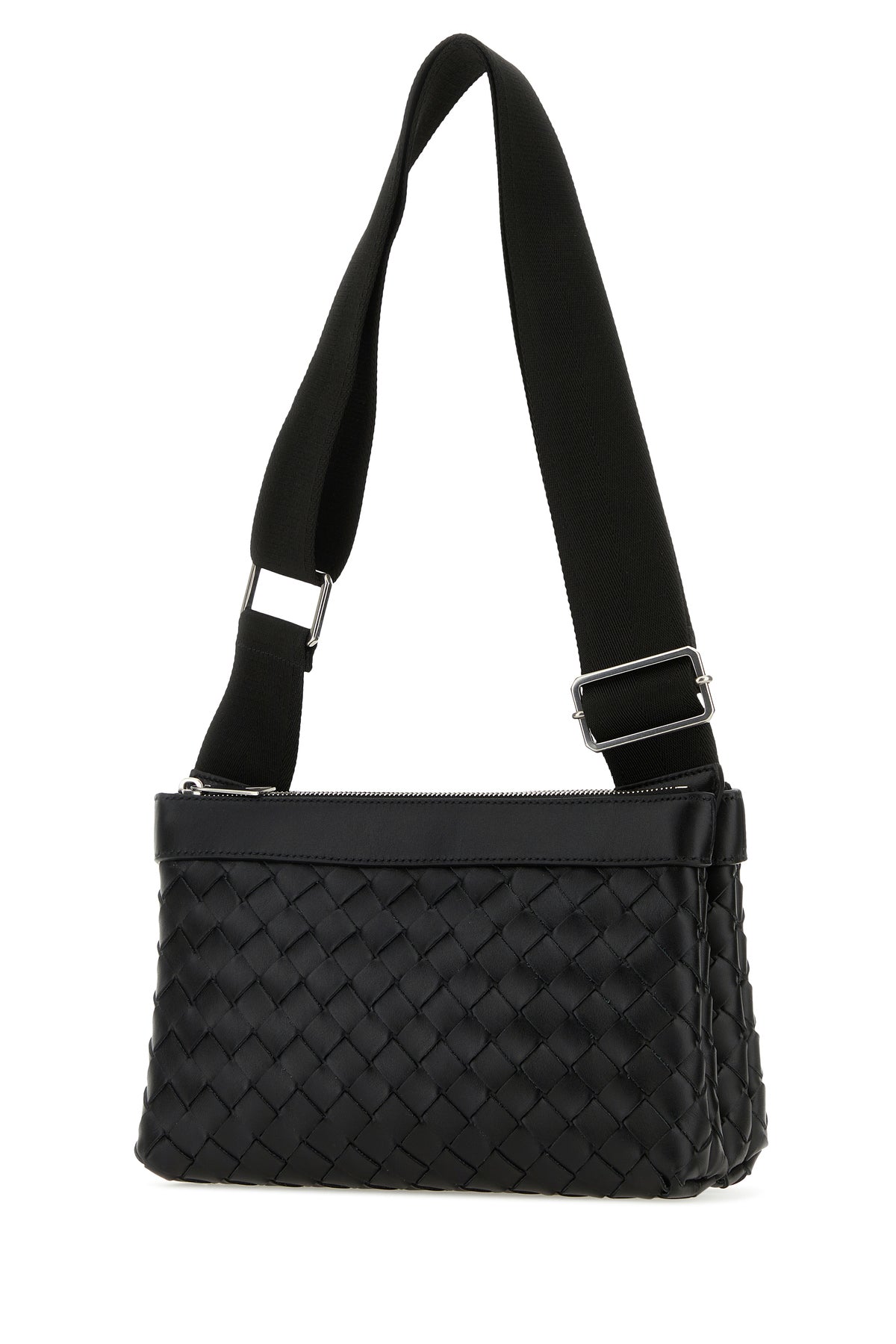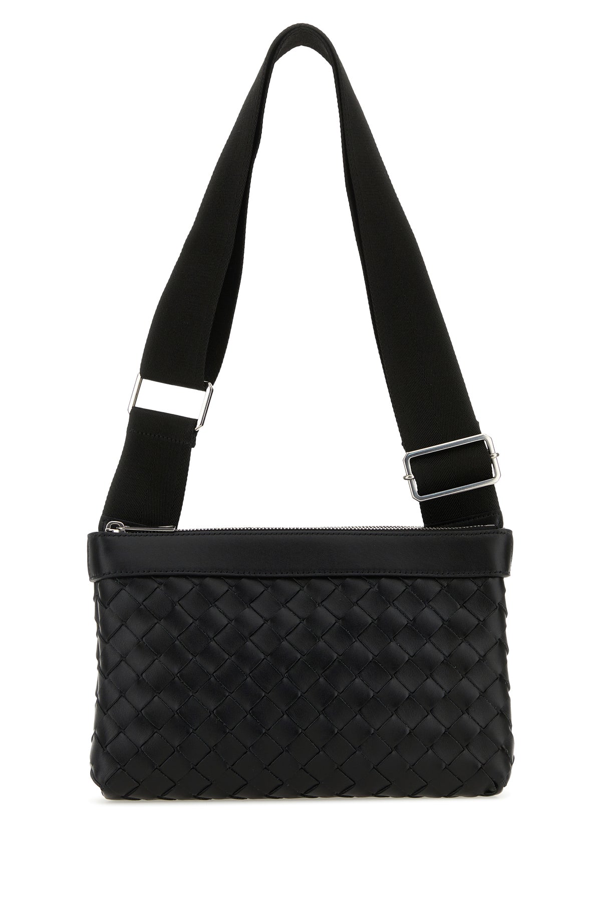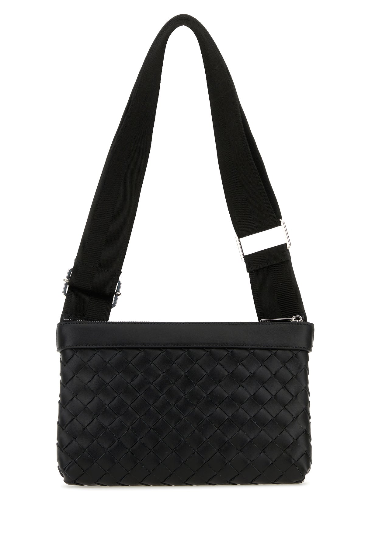Borsa a tracolla realizzata in pelle di vitello liscia caratterizzata da iconico motivo Intrecciato su tutta la superficie.
