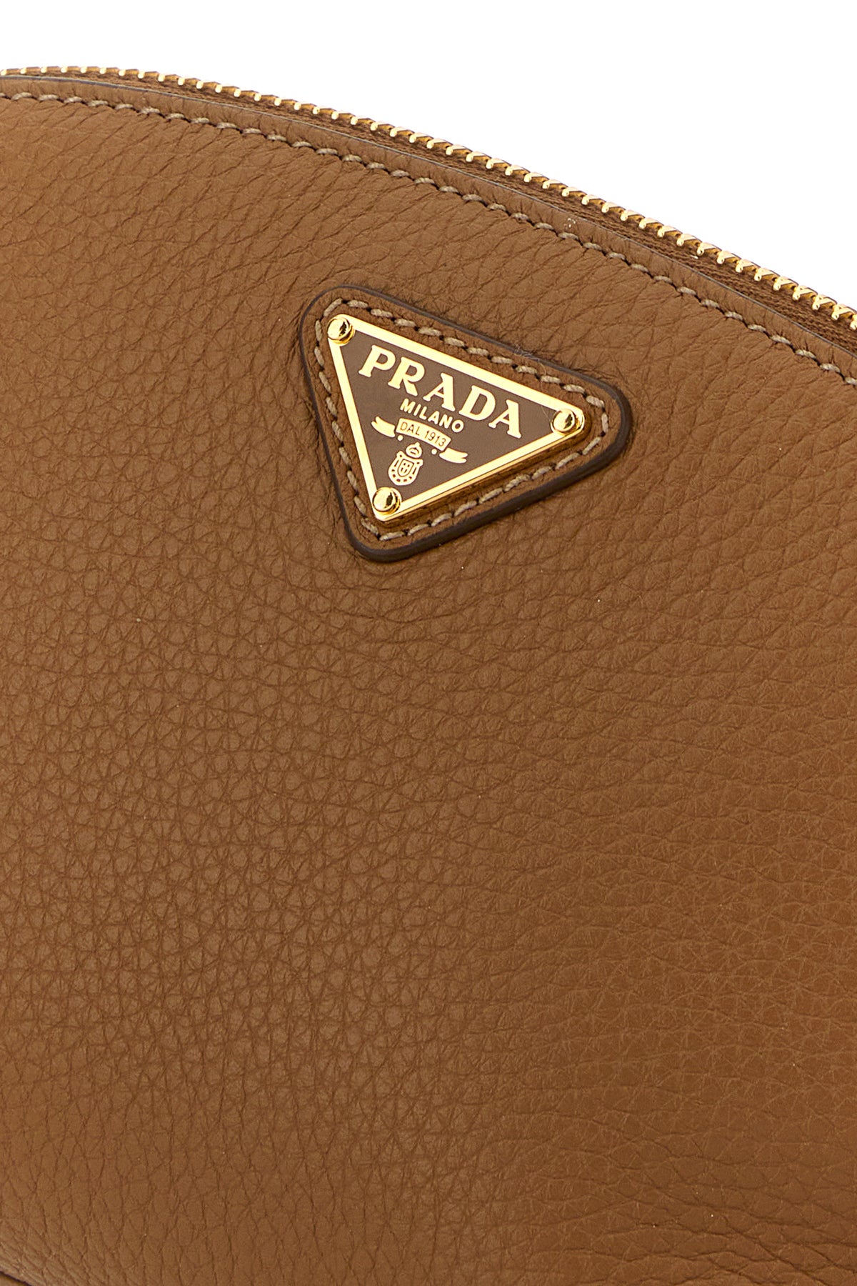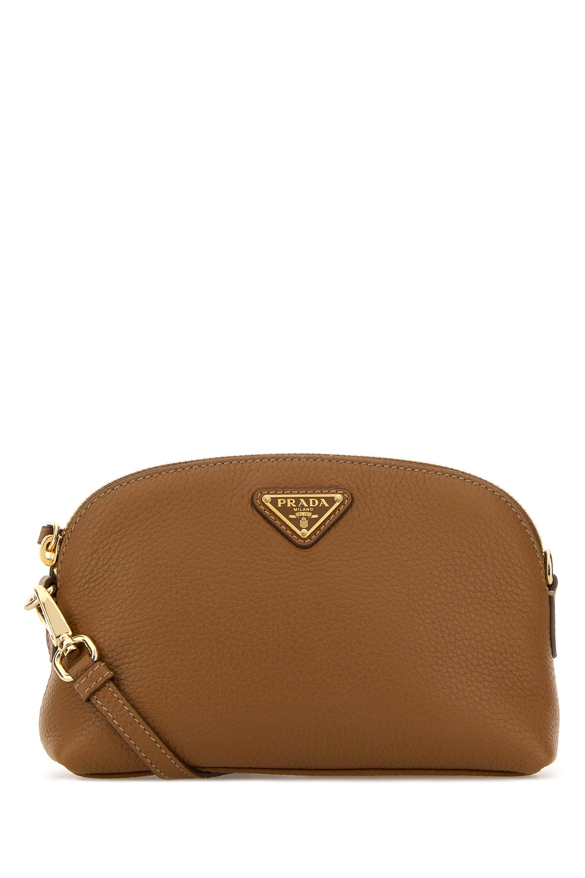 Borsa a tracolla realizzata in pelle di daino martellata arricchita da iconico triangolo metallico logato sulla parte frontale.