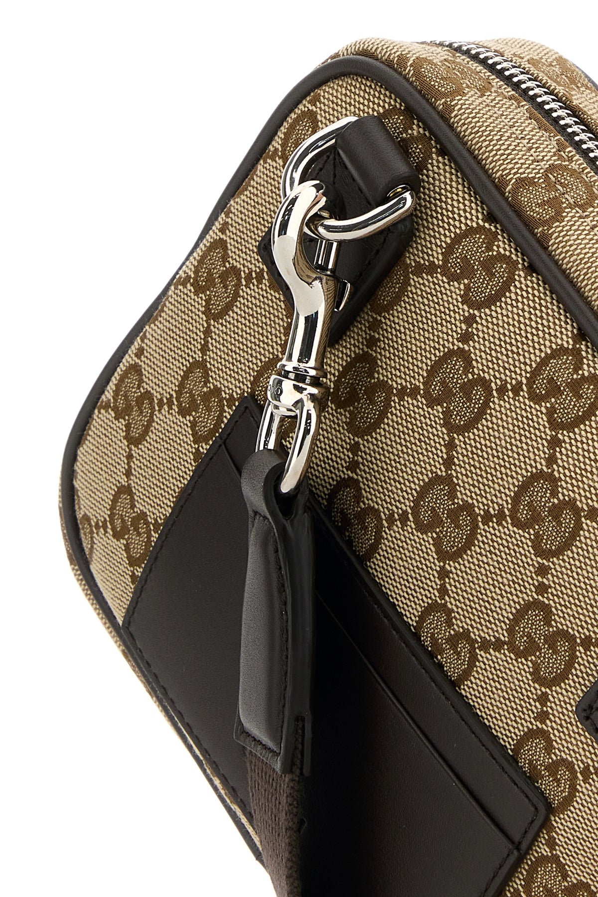 Borsa a tracolla realizzata in tessuto GG caratterizzata da logo impresso sul retro.