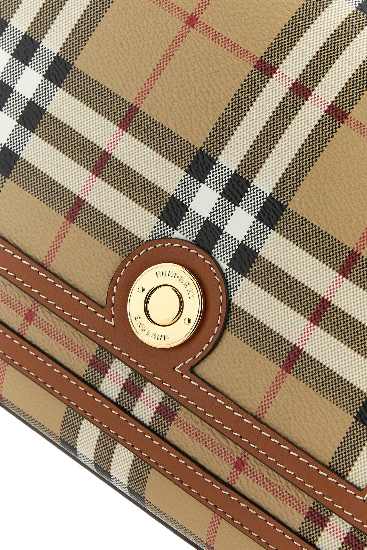 Borsa a tracolla realizzata in tessuto con inserti in pelle di vitello caratterizzata da ricamo a motivo tartan su tutta la superficie.