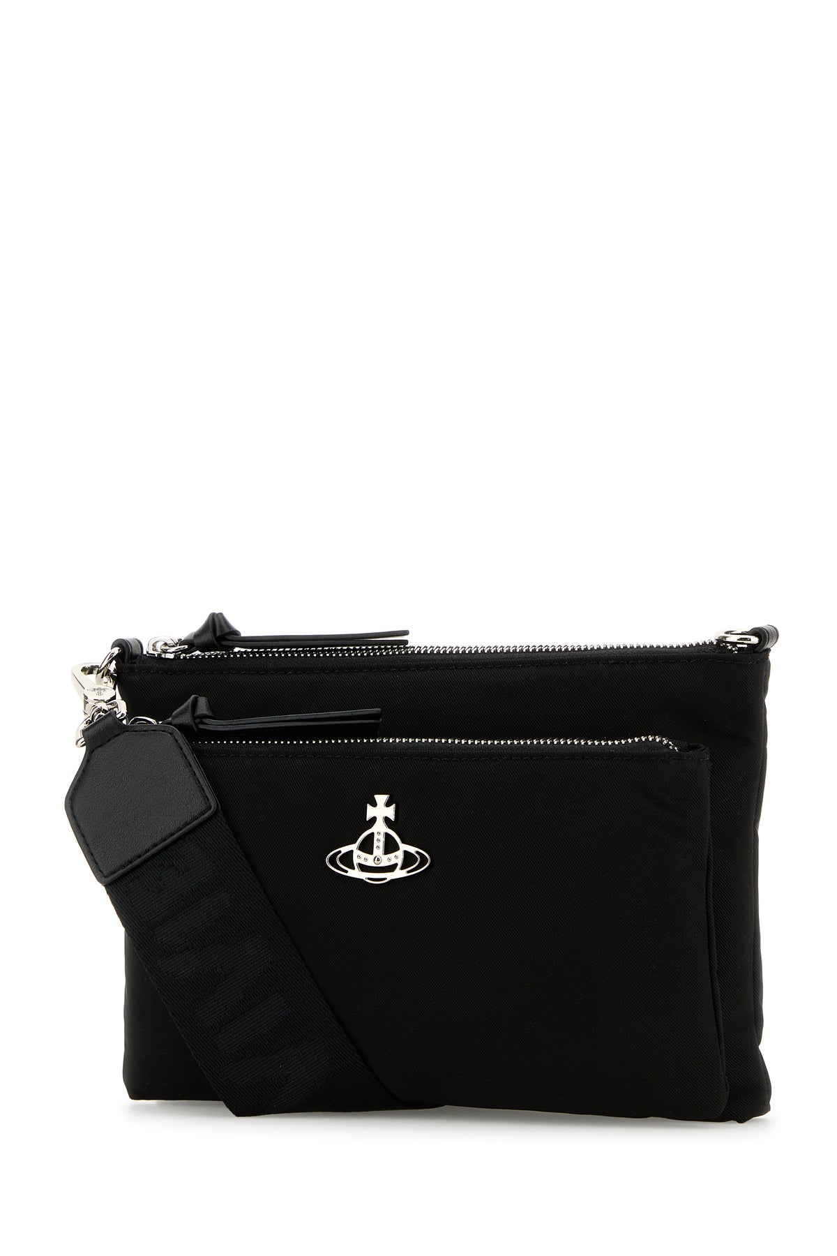 Borsa a tracolla realizzata in tessuto arricchita da dettaglio metallico Orb sulla parte frontale.