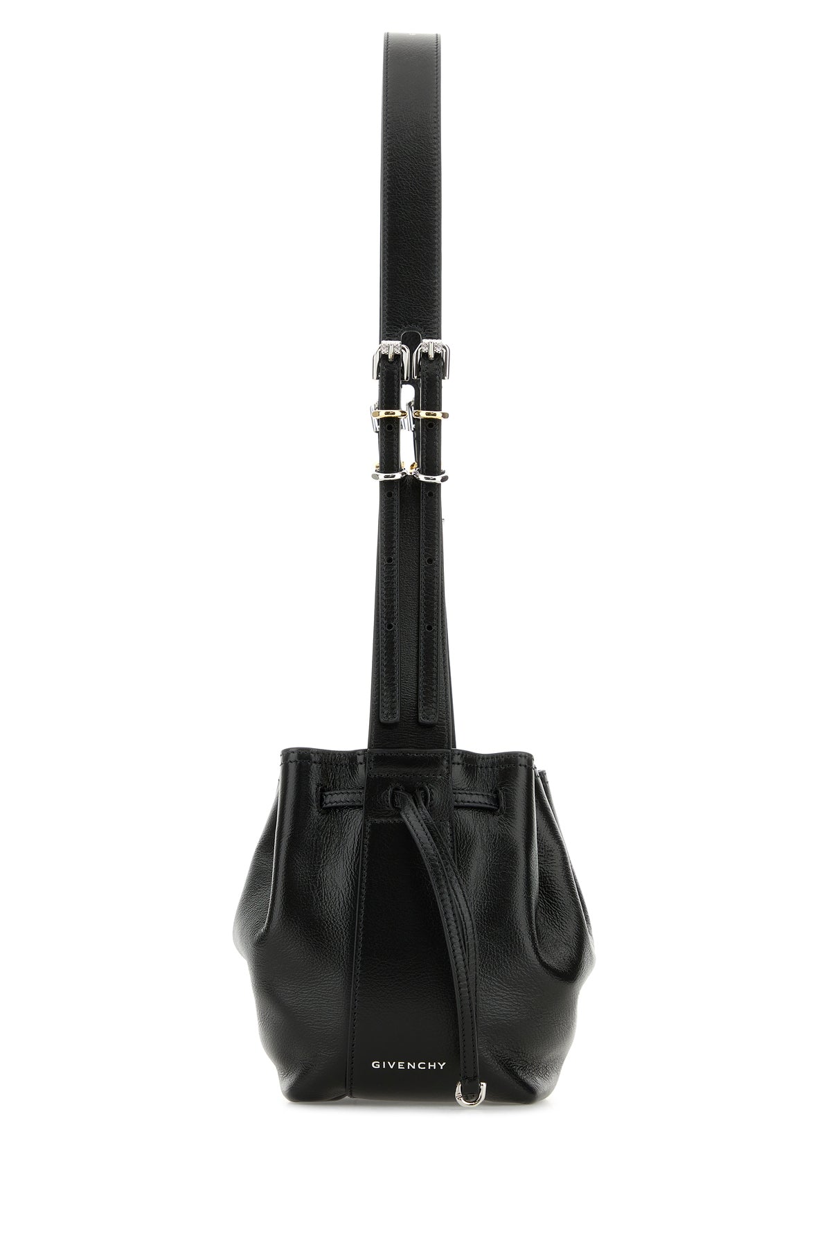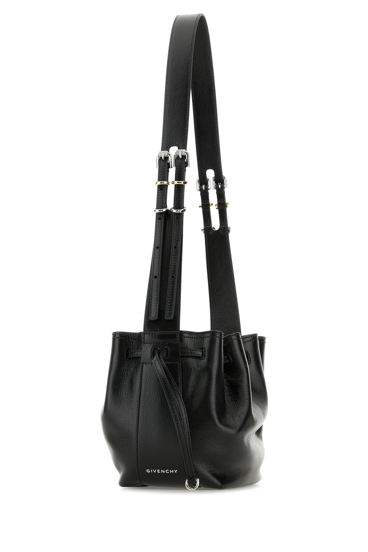 Borsa a tracolla realizzata in pelle di vitello martellata caratterizzata da logo stampato laminato sui lati.