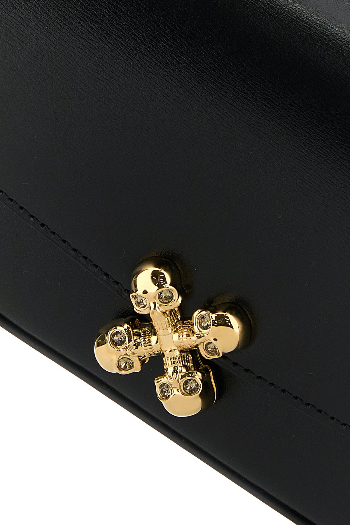 Borsa a tracolla realizzata in pelle di vitello liscia caratterizzata da logo stampato laminato sul retro arricchita da dettaglio metallico Skull Flower McQueen sulla parte frontale.