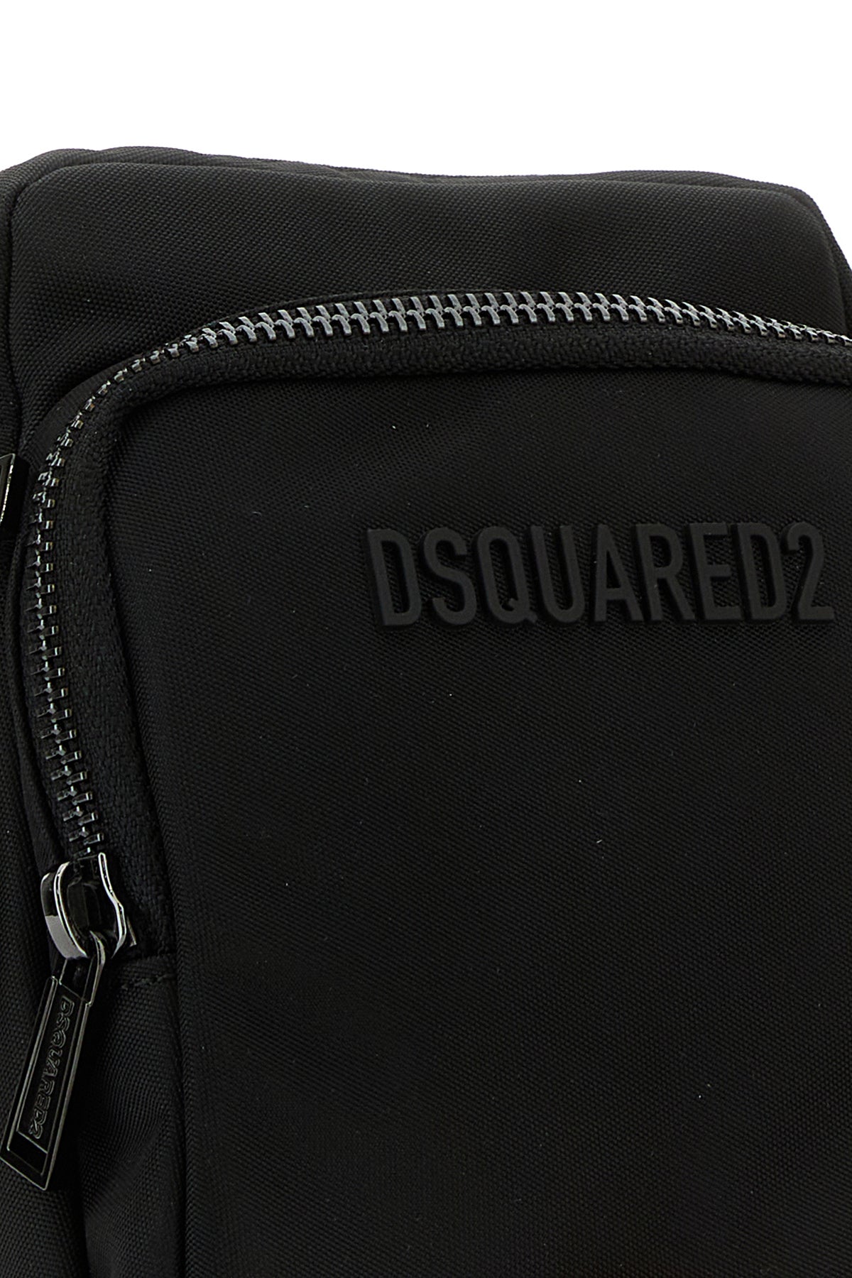 Borsa a tracolla realizzata in nylon arricchita da applicazione logata gommata sulla parte frontale.
