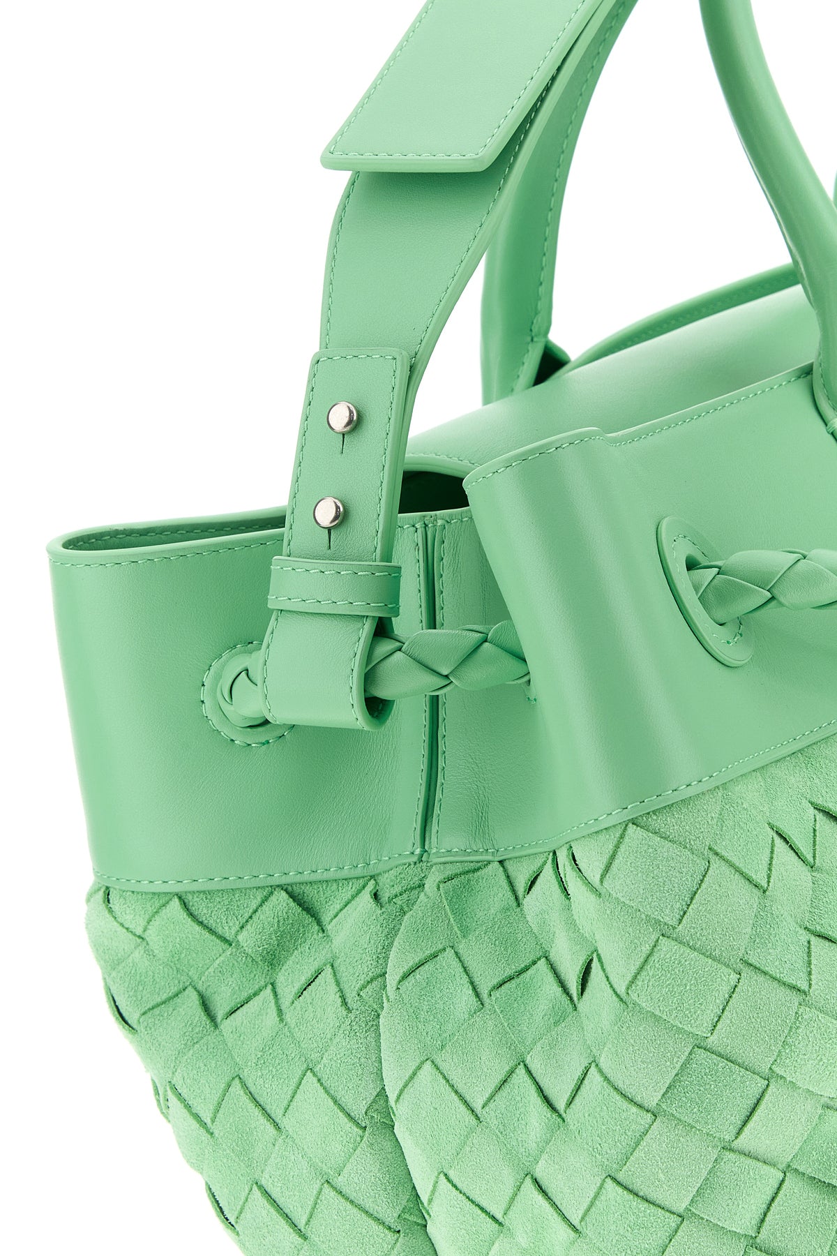 Borsa da viaggio realizzata in pelle scamosciata con inserti in pelle liscia sulle profilature caratterizzata da motivo Intrecciato su tutta la superficie.