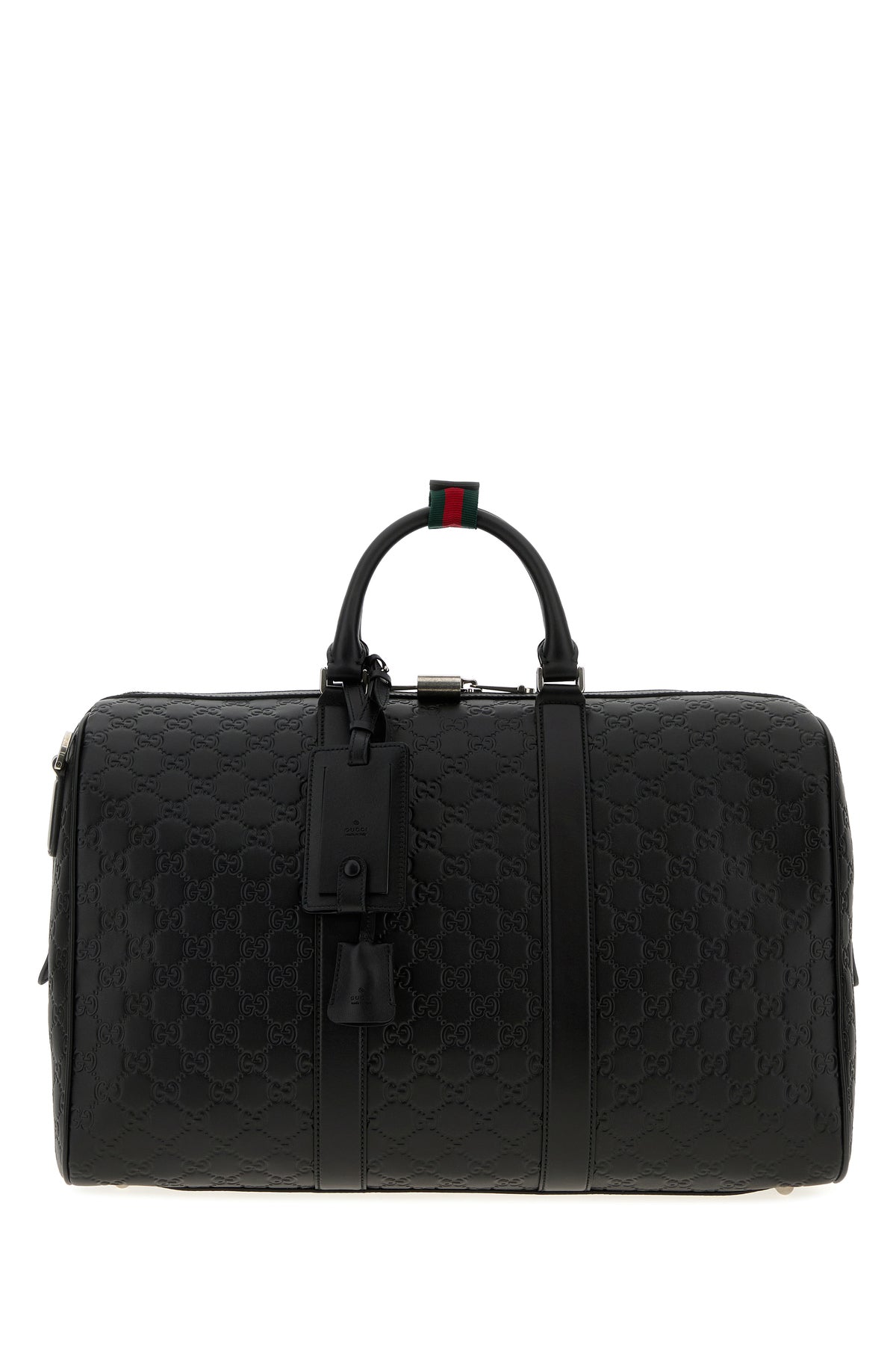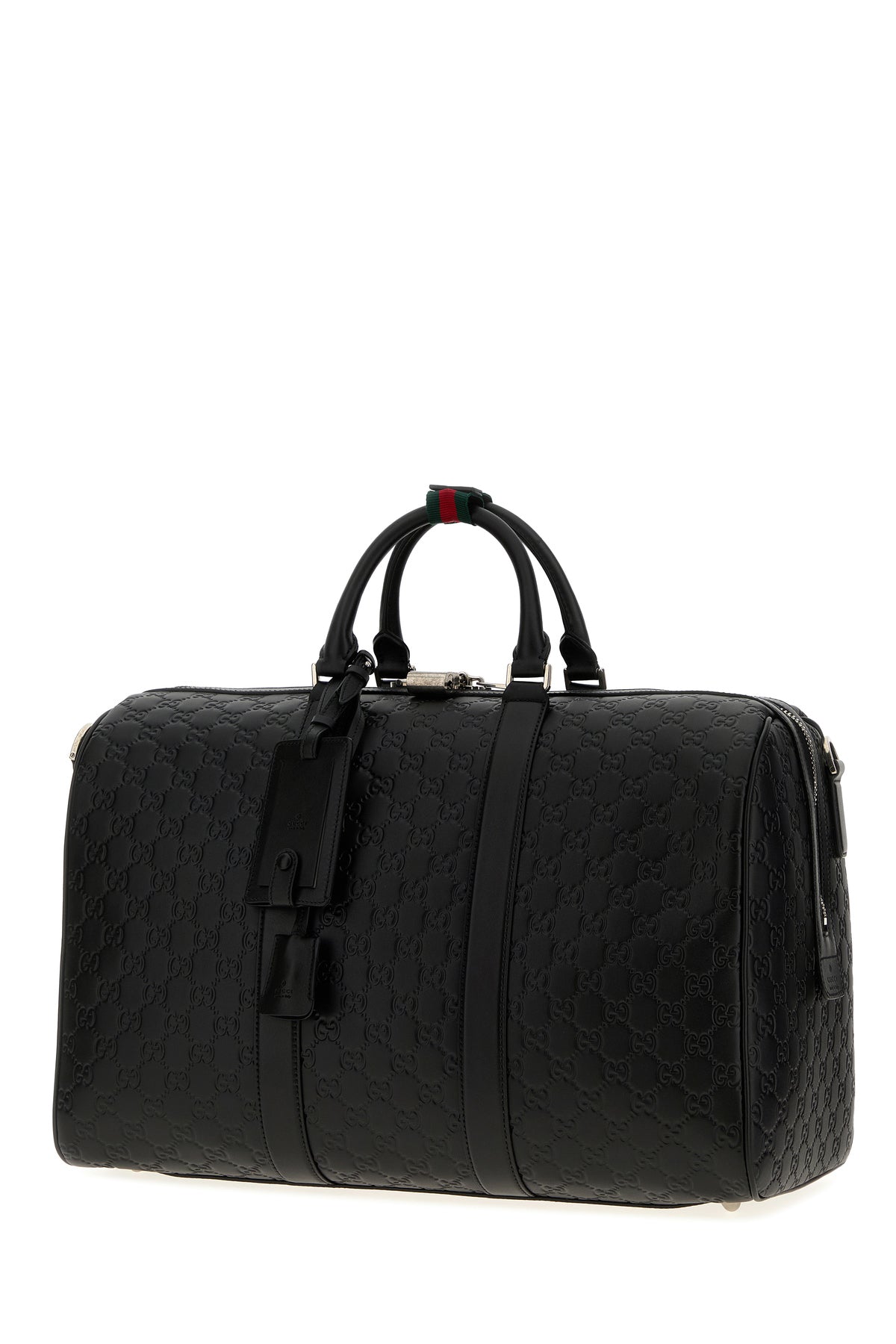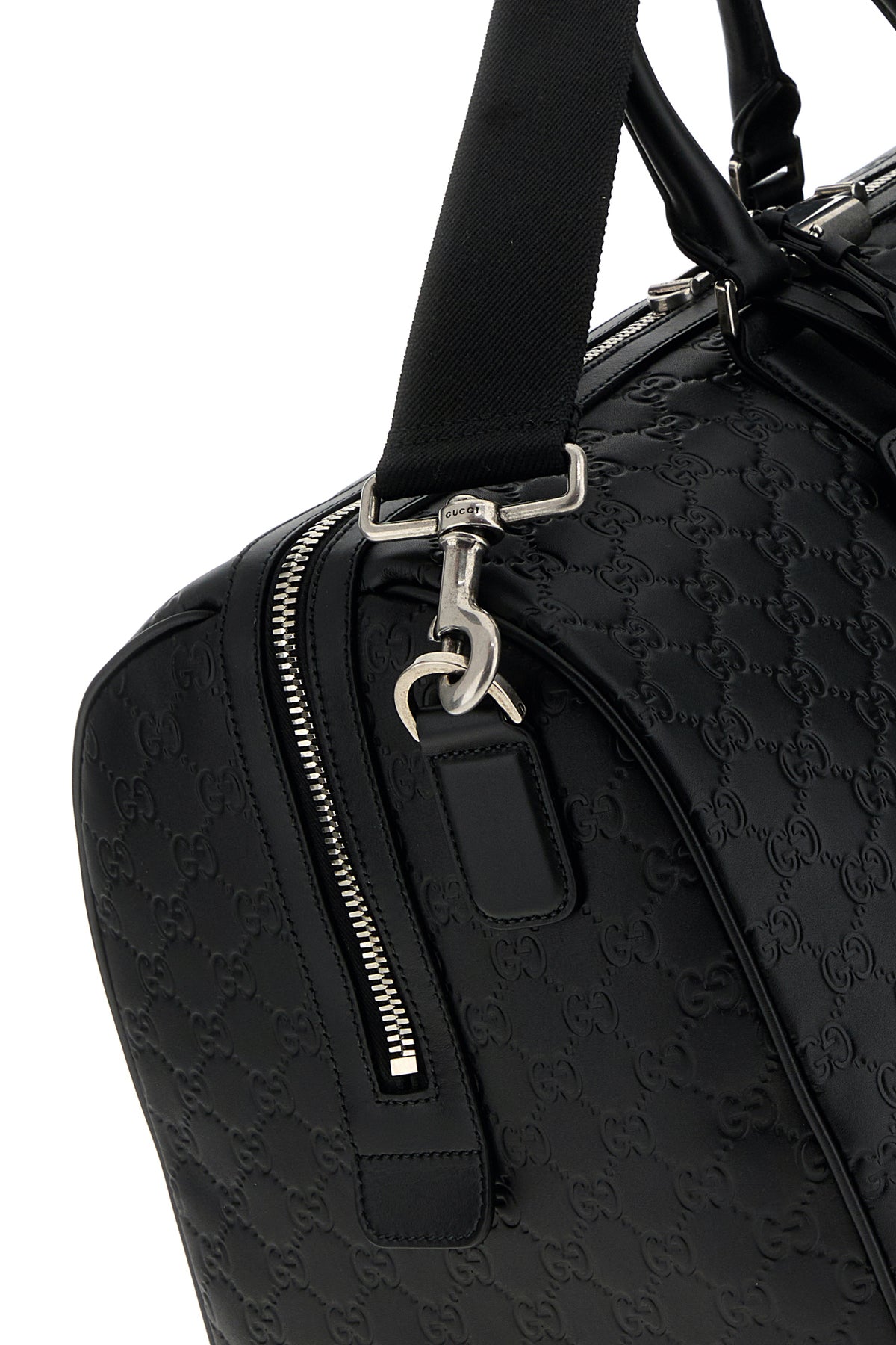 Borsa da viaggio realizzata in pelle caratterizzata da motivo GG impresso su tutta la superficie.