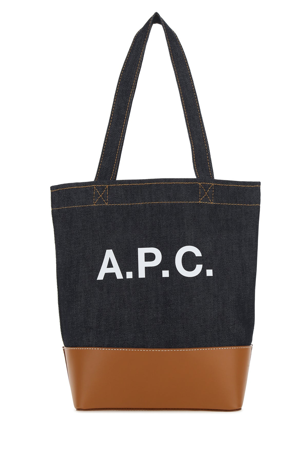 Borsa shopping realizzata in denim e pelle liscia caratterizzata da logo stampato sulla parte frontale.