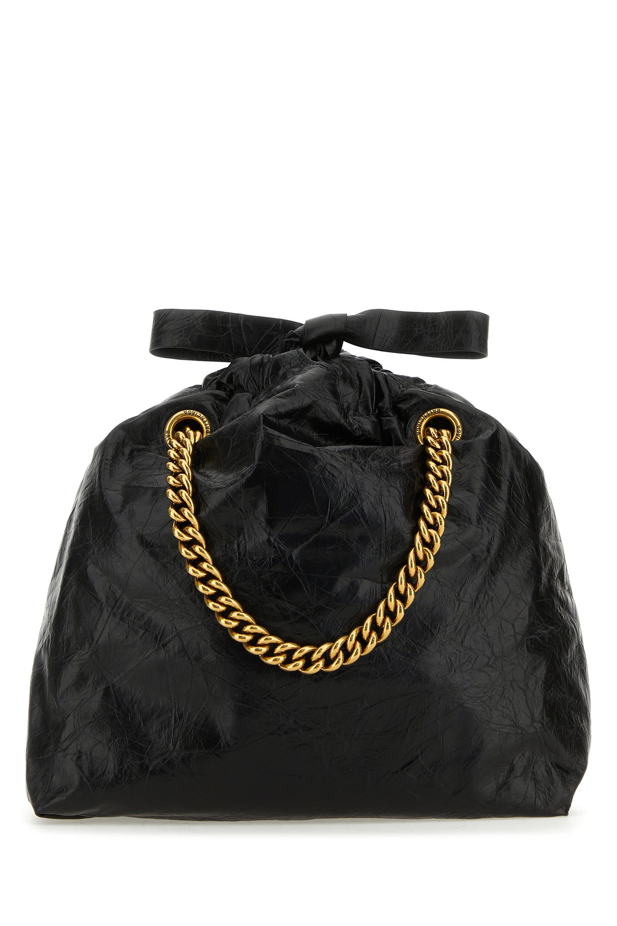 Borsa shopping realizzata in pelle di vitello ad effetto stropicciato caratterizzata da logo stampato a contrasto sulla parte frontale.