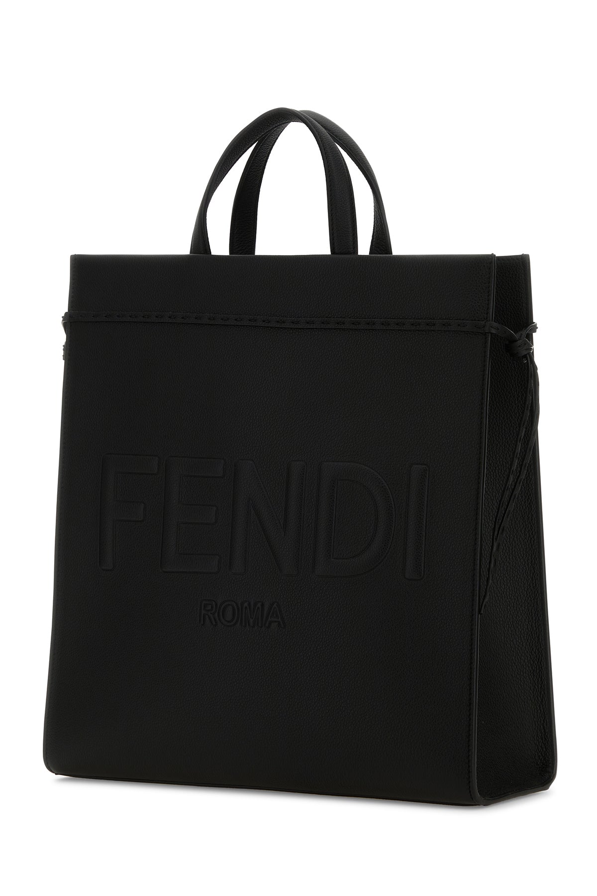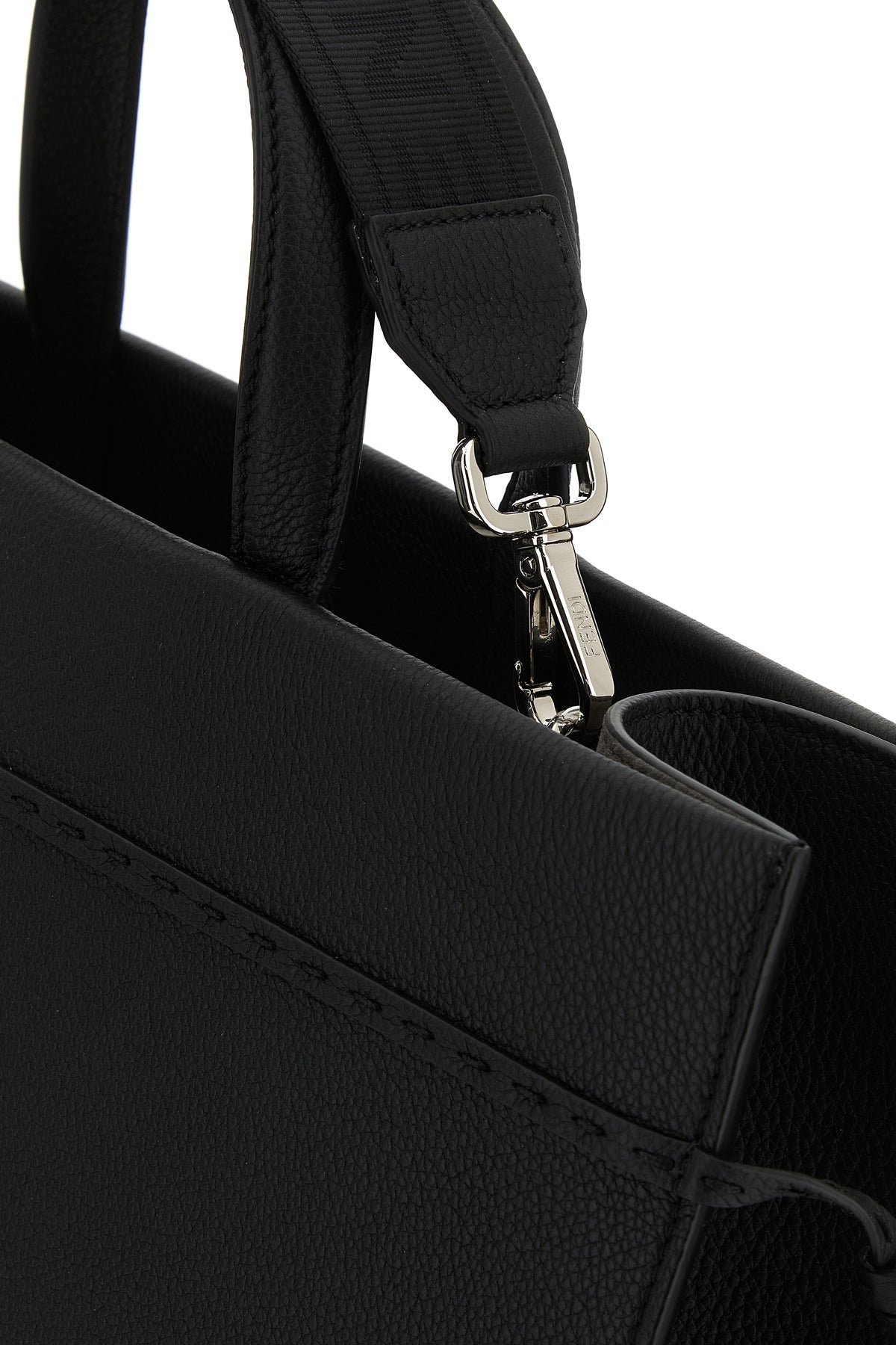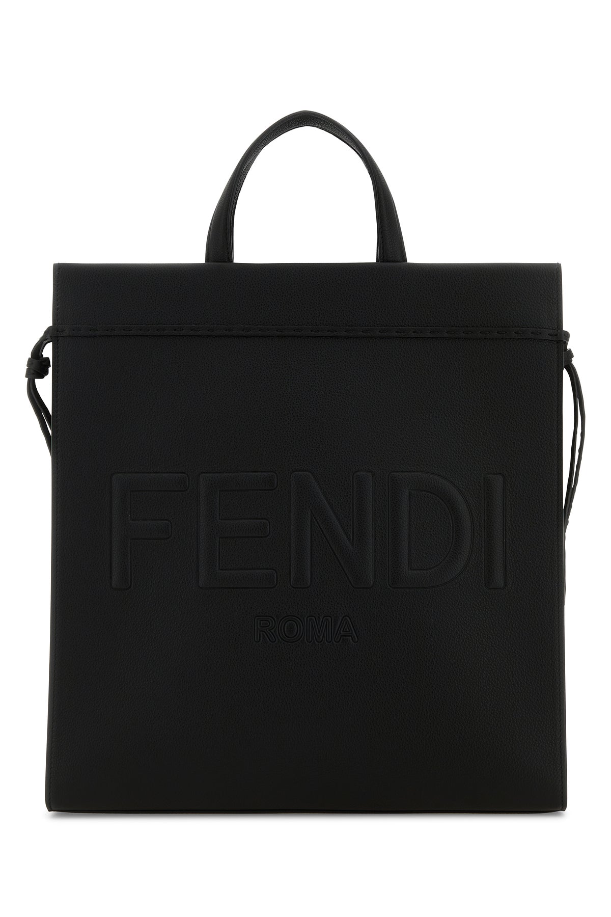 Borsa shopping realizzata in pelle martellata di vitello caratterizzata da logo stampato in rilievo sulla parte frontale.