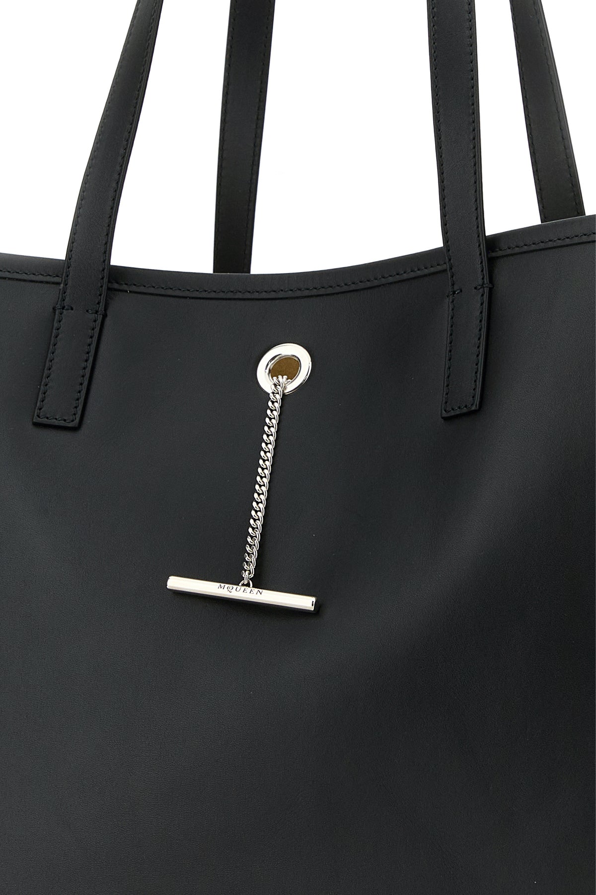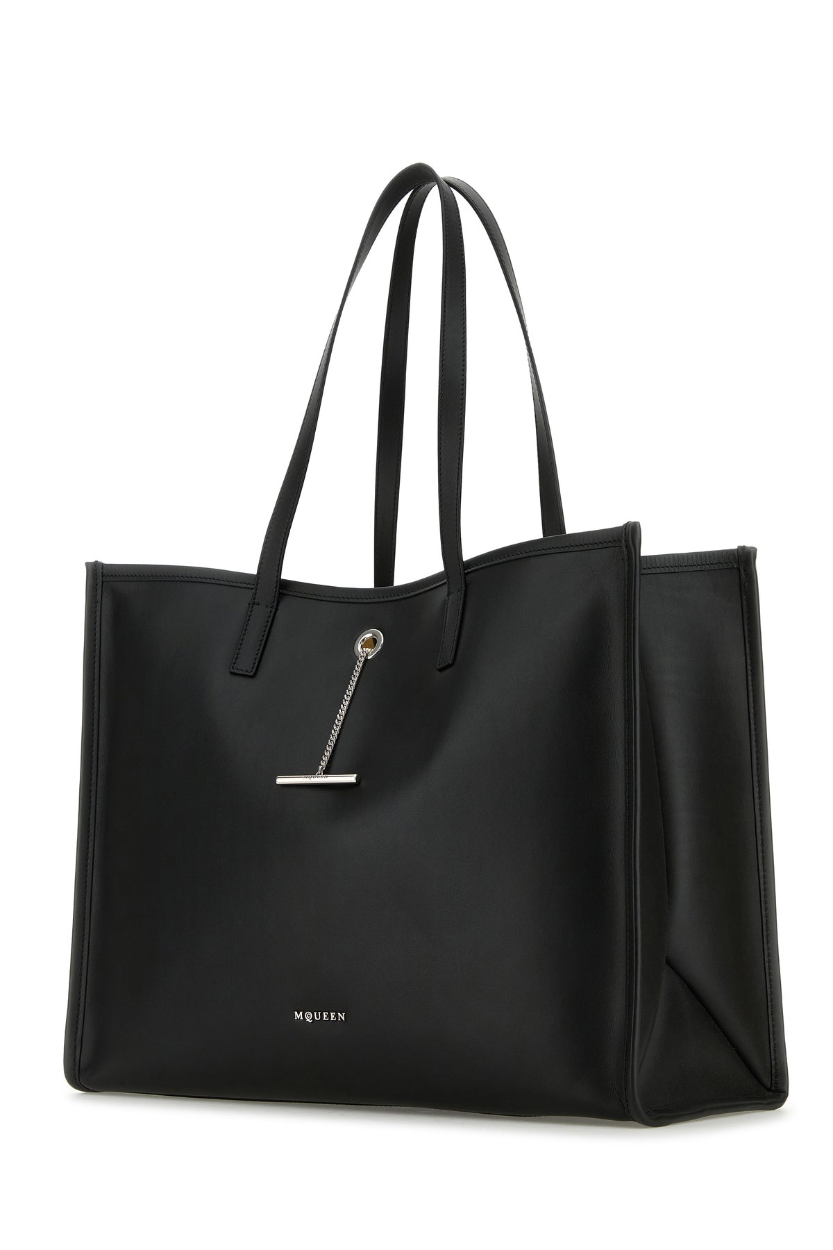 Borsa shopping realizzata in pelle di vitello liscia arricchita da logo in lettere metalliche sulla parte frontale.