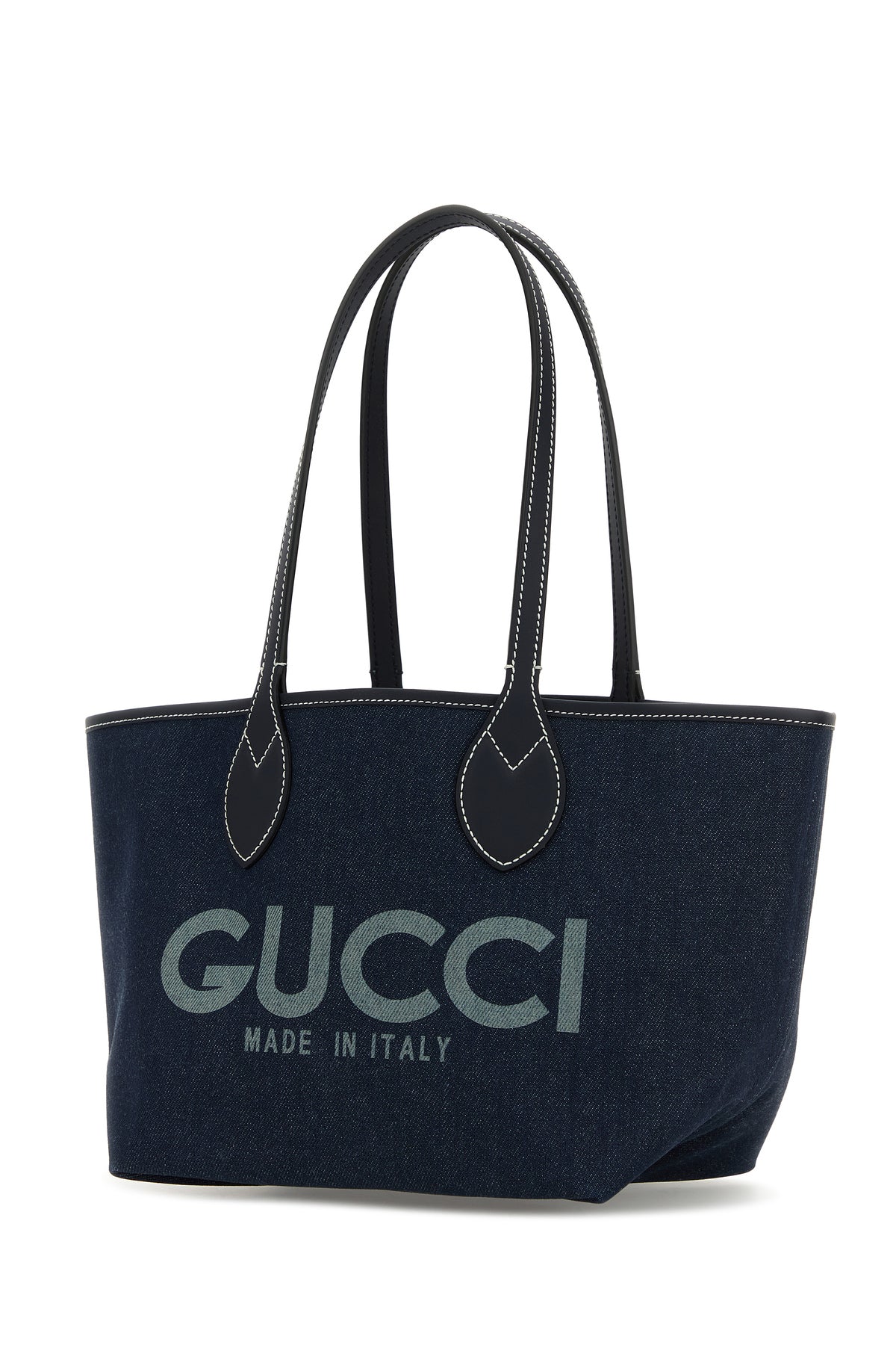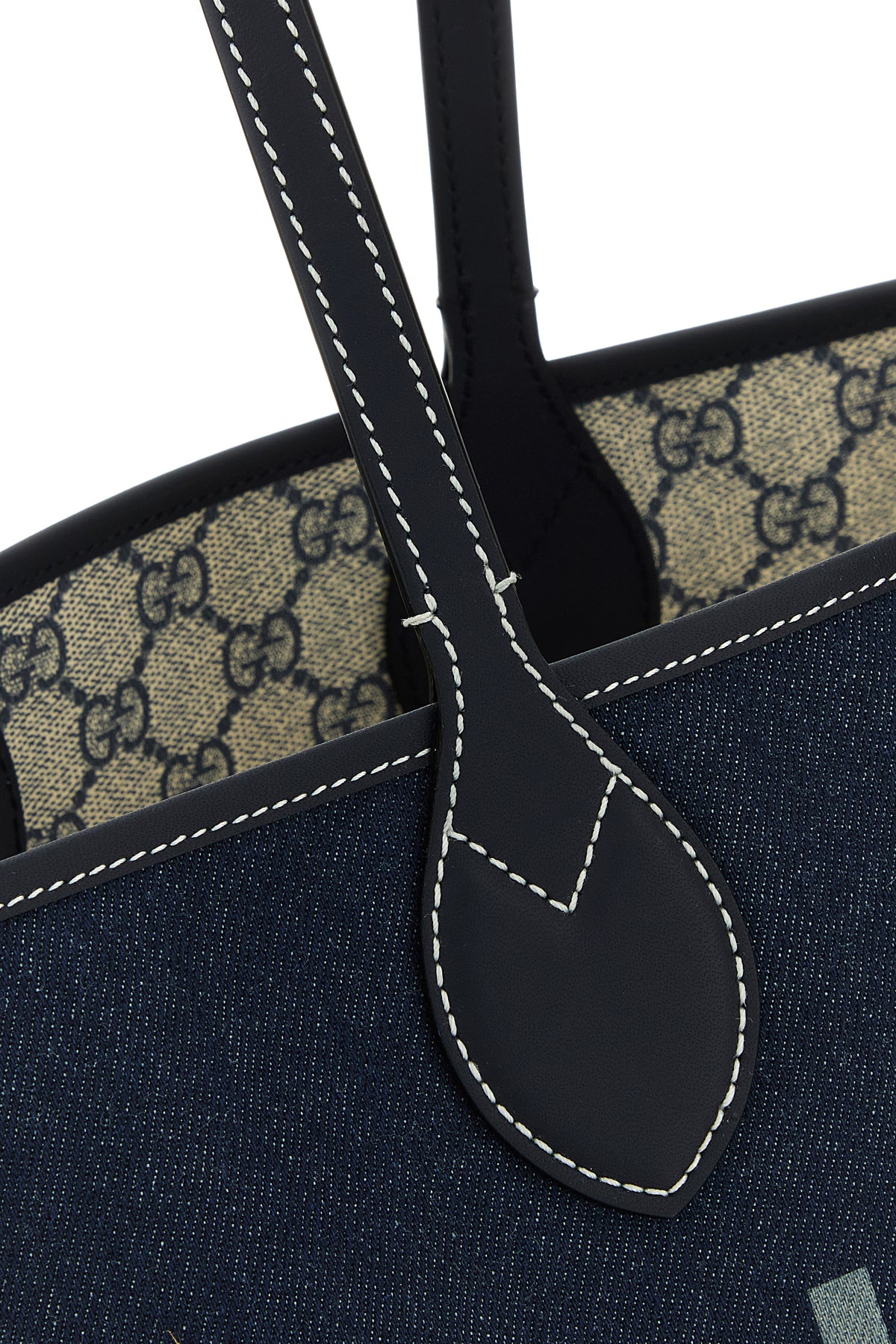 Borsa shopping reversibile realizzata in denim caratterizzata da logo stampato a contrasto sulla parte frontale.