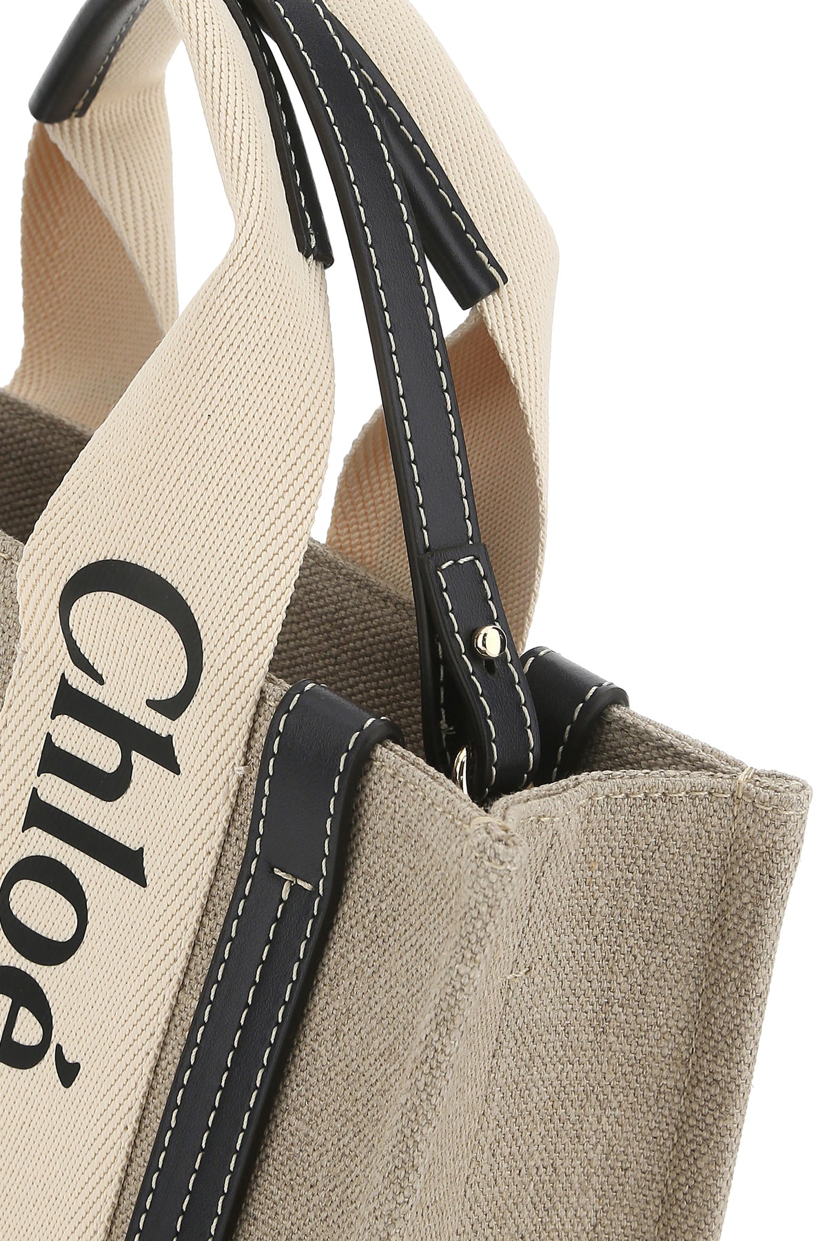 Borsa shopping realizzata in tessuto con inserti in pelle caratterizzata da particolare ricamo su tutta la superficie arricchita da bande logate in tela sulla parte frontale e sul retro.