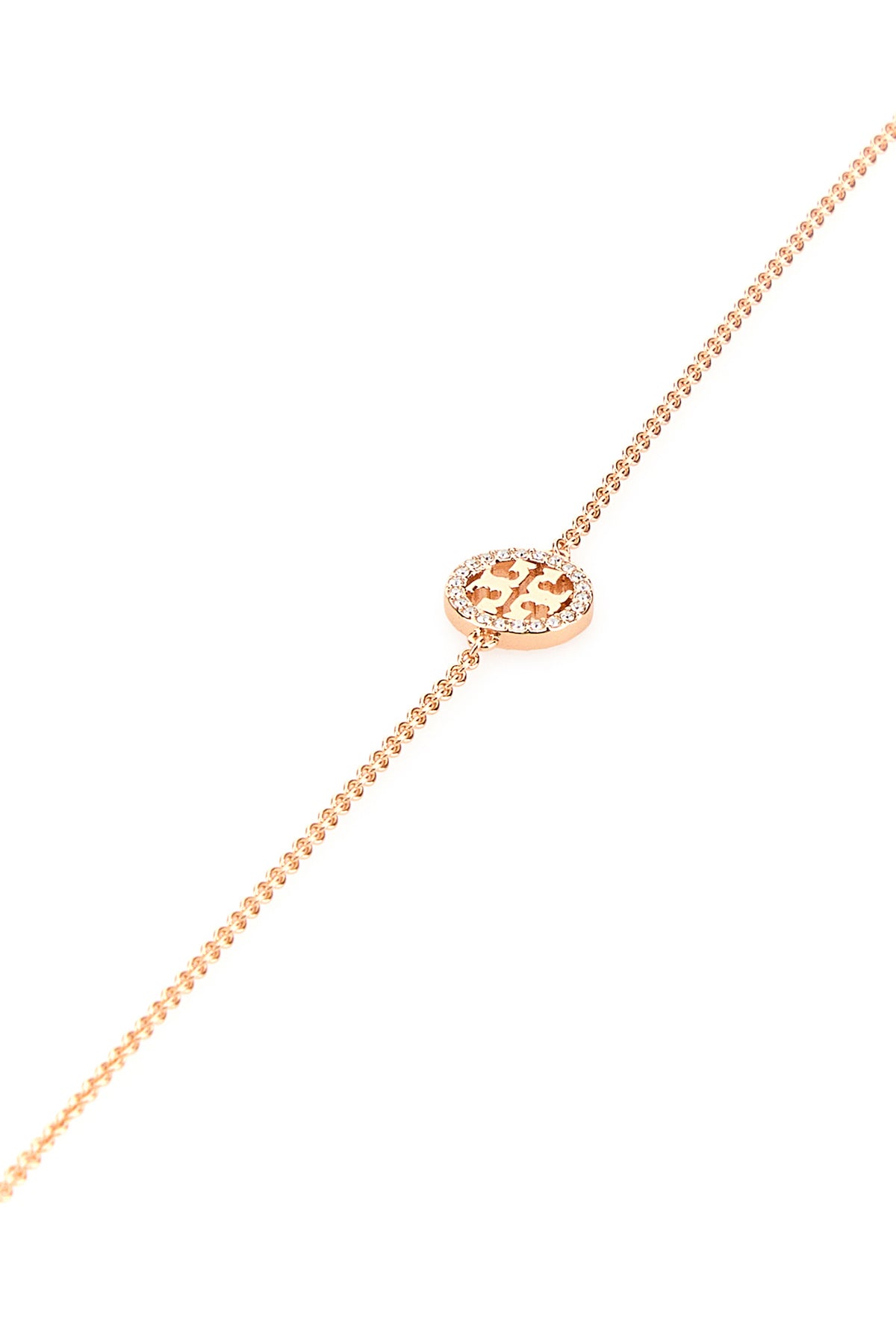 Bracciale realizzato in metallo placcato color oro rosa arricchito da dettaglio metallico logato.