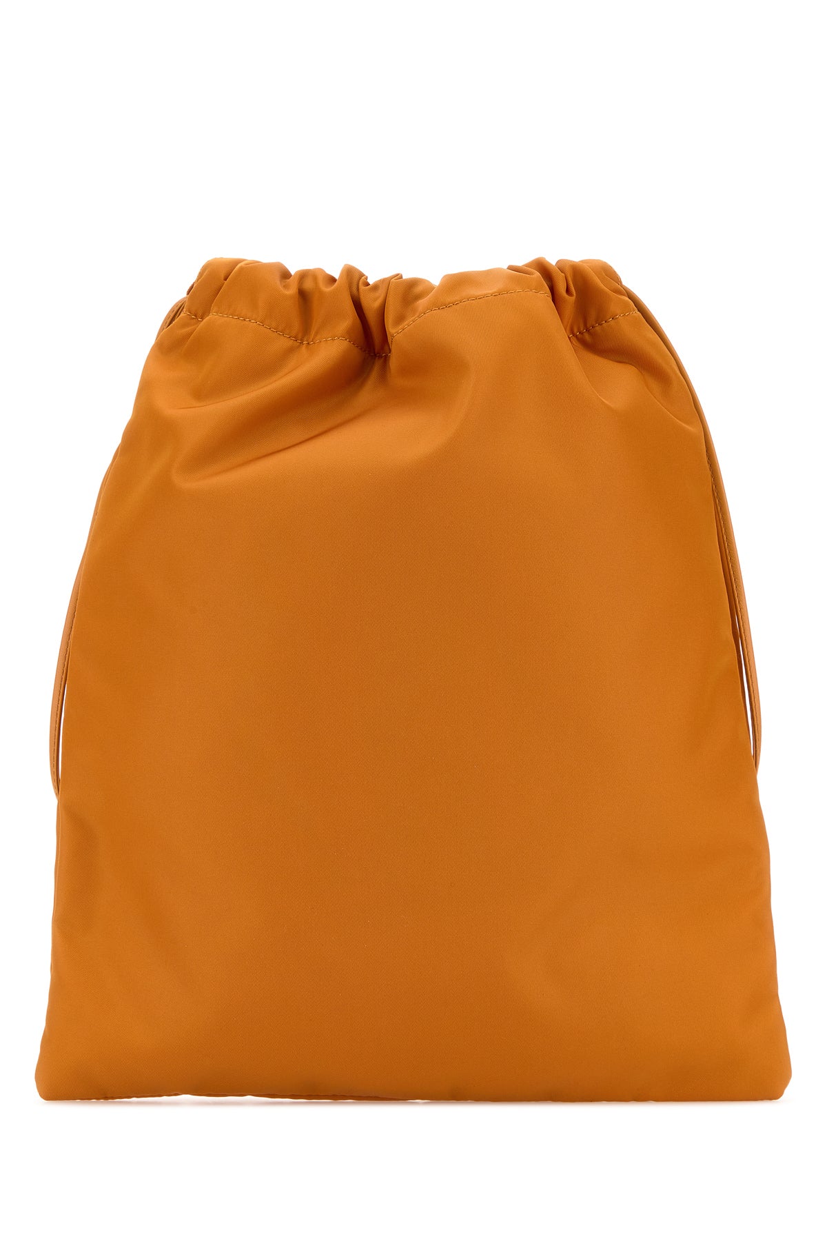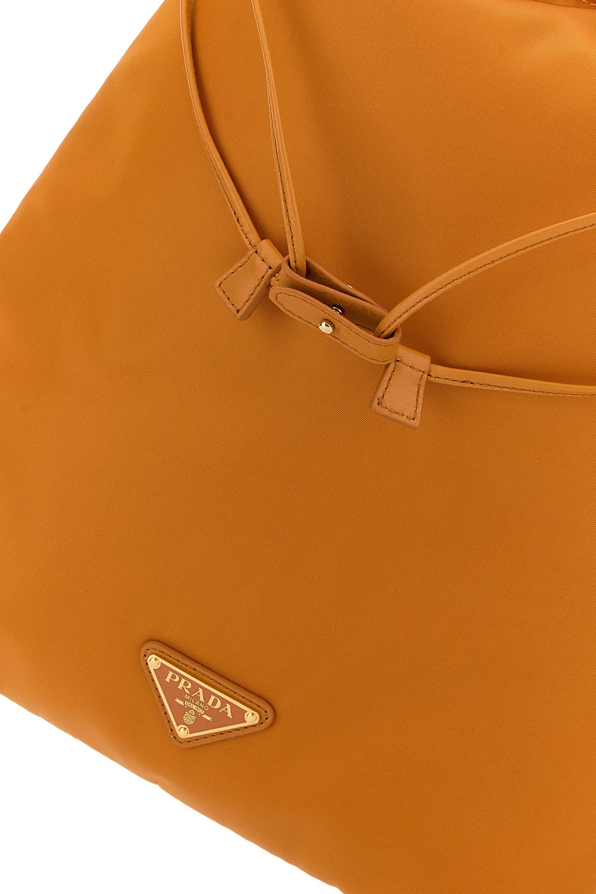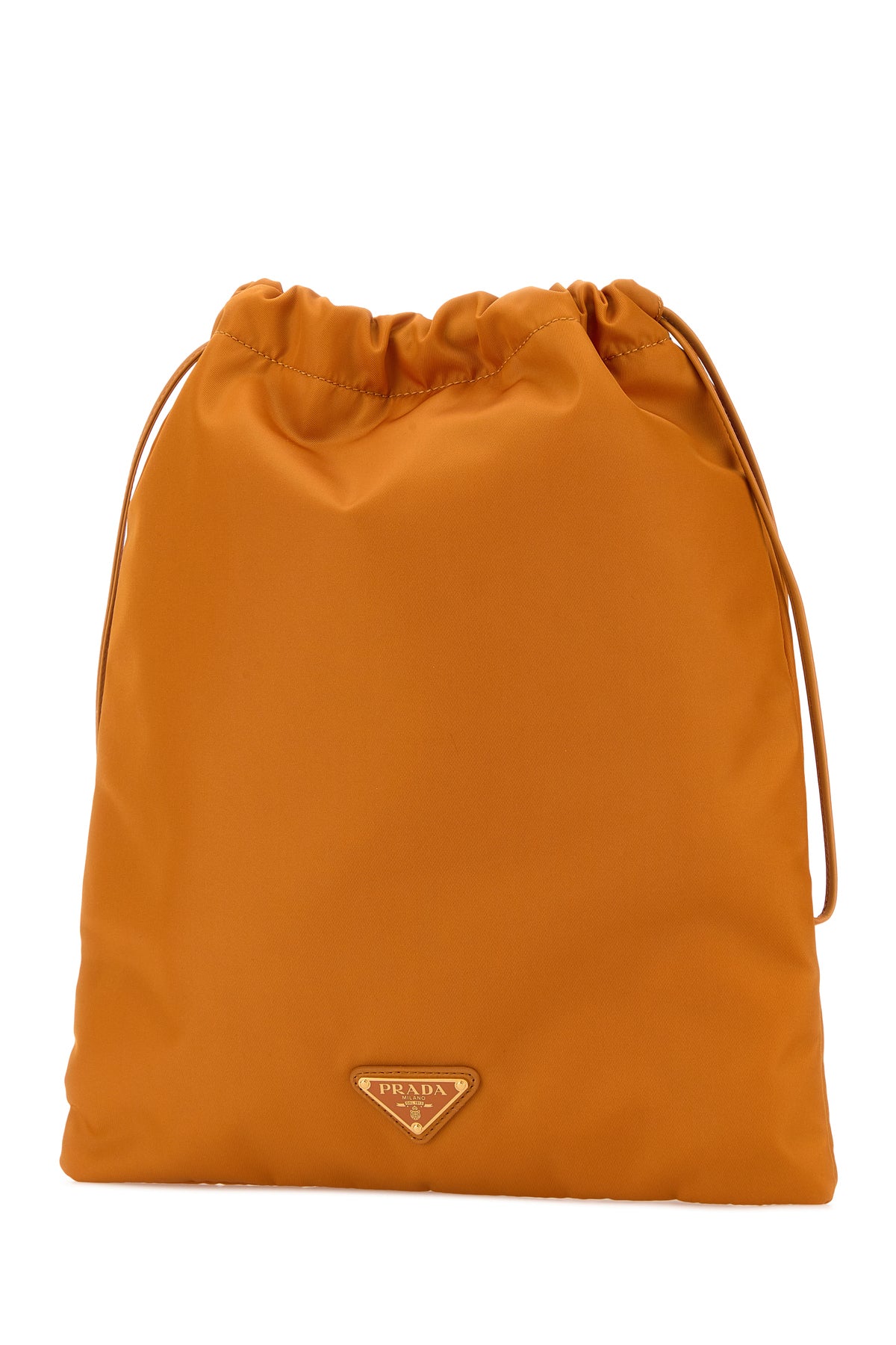 Busta realizzata in nylon arricchita da iconico triangolo metallico logato sulla parte frontale.
