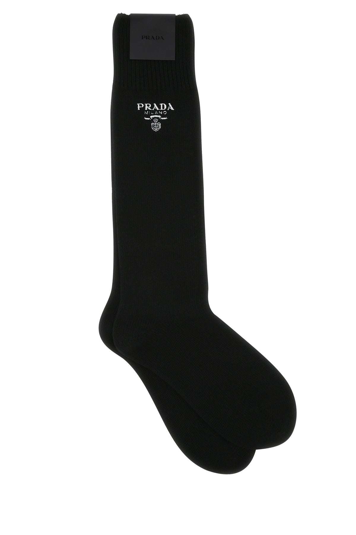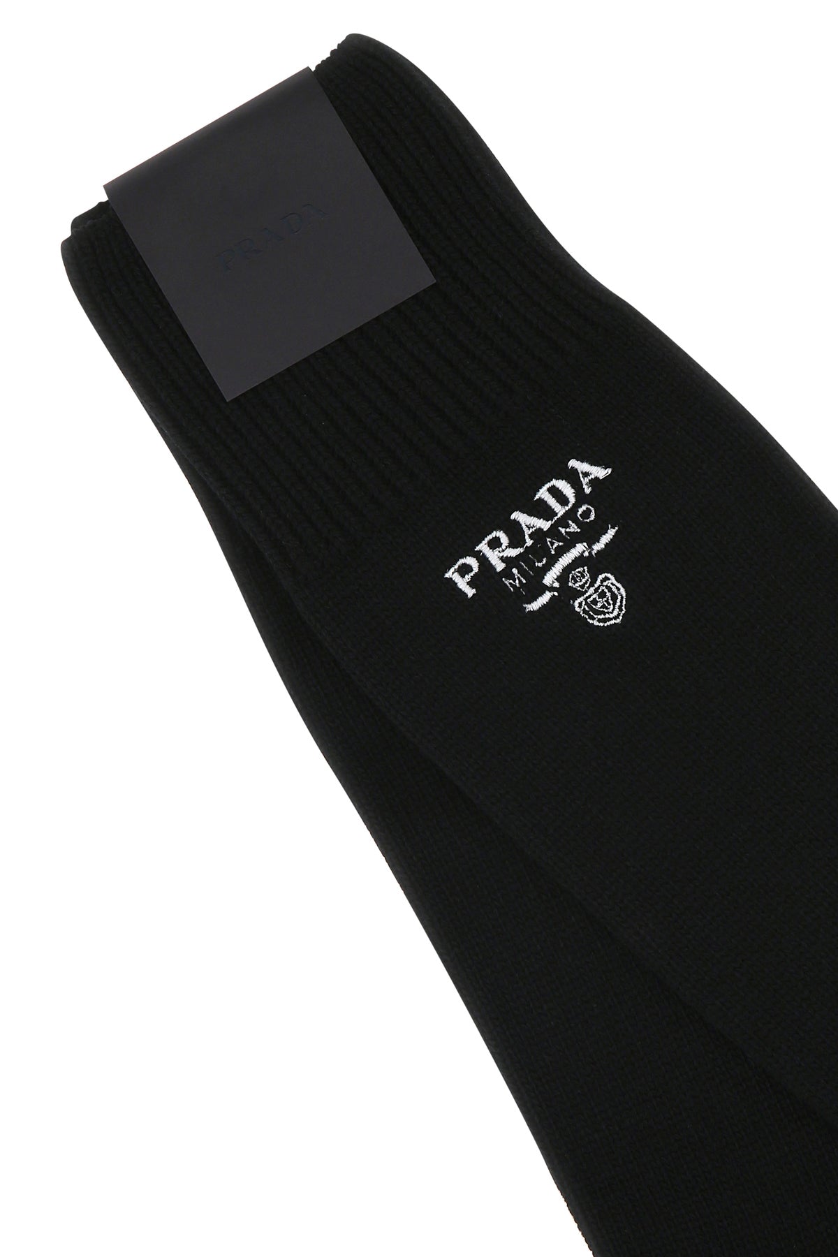 Calze realizzate in lana vergine e cashmere caratterizzate da ricamo logato a contrasto sui lati.
