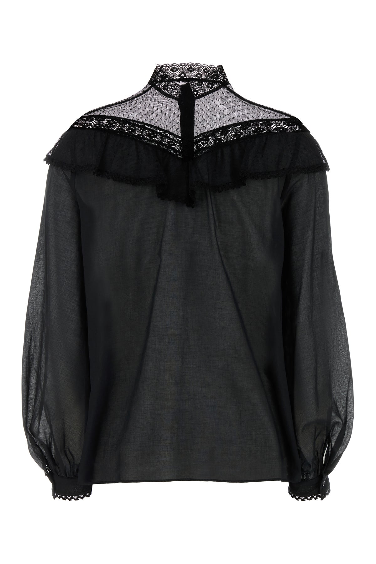 Camicia realizzata in puro cotone con inserto in pizzo sulla parte superiore.