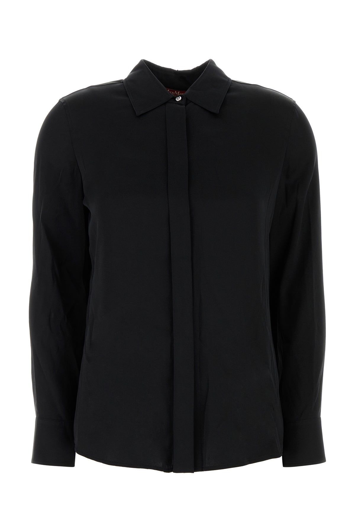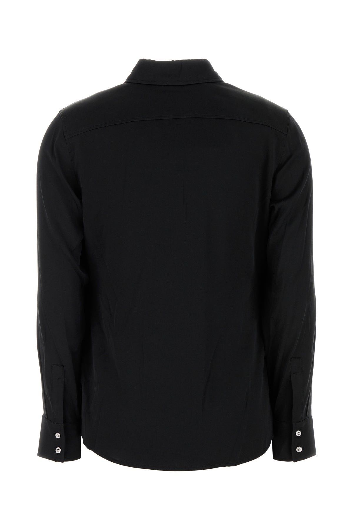 Camicia realizzata in raso di seta stretch caratterizzata da colletto a punte corte.