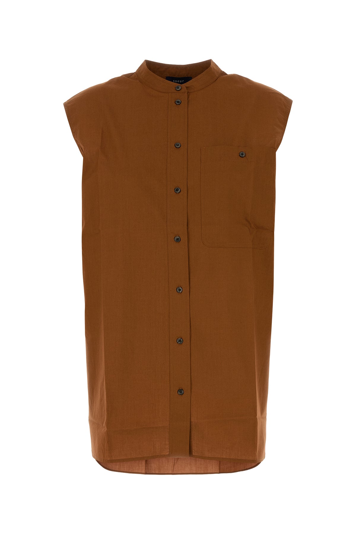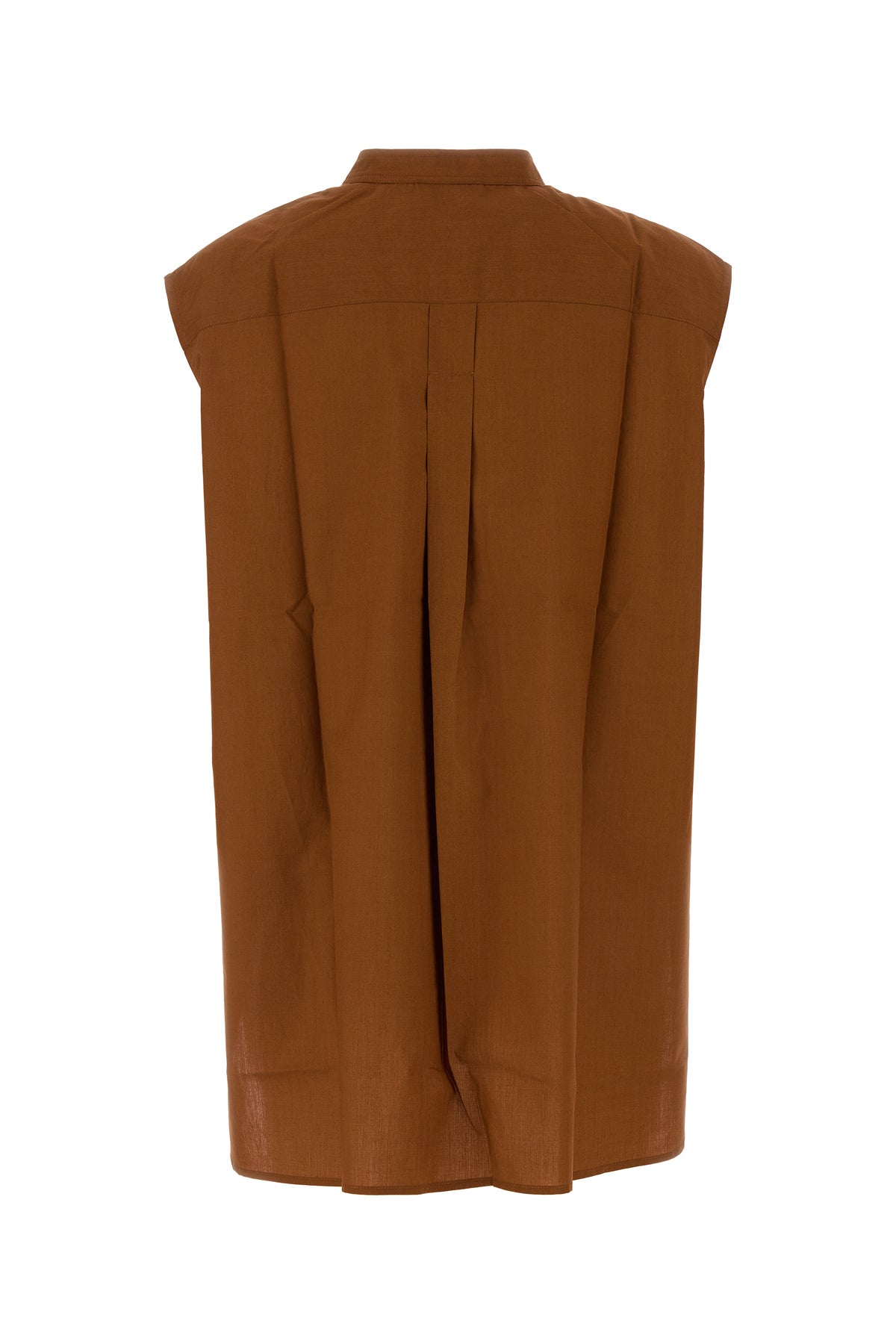 Camicia smanicata realizzata in puro cotone caratterizzata da colletto coreano.