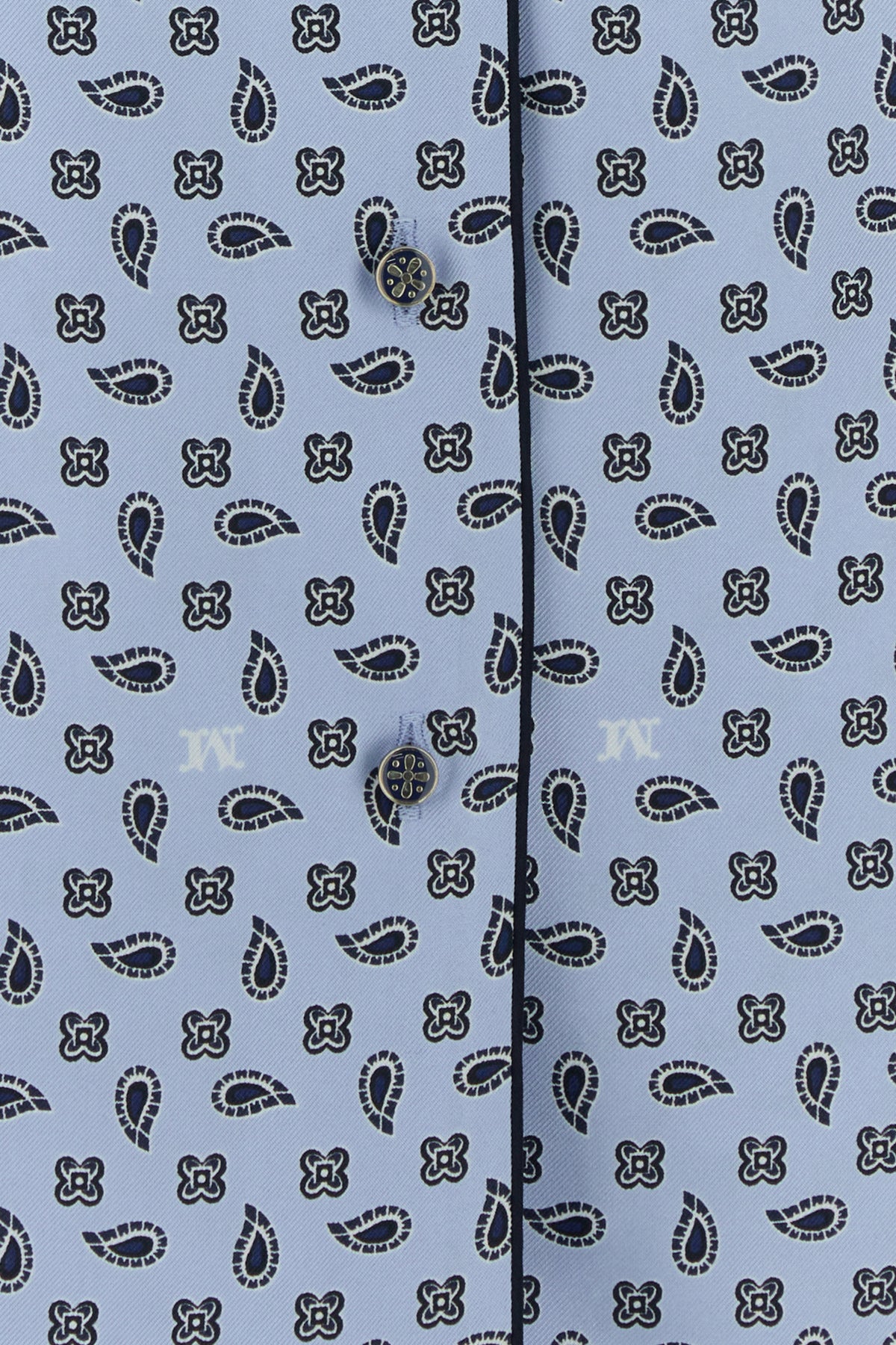 Camicia realizzata in pura seta caratterizzata da particolare stampa logata su tutta la superficie.