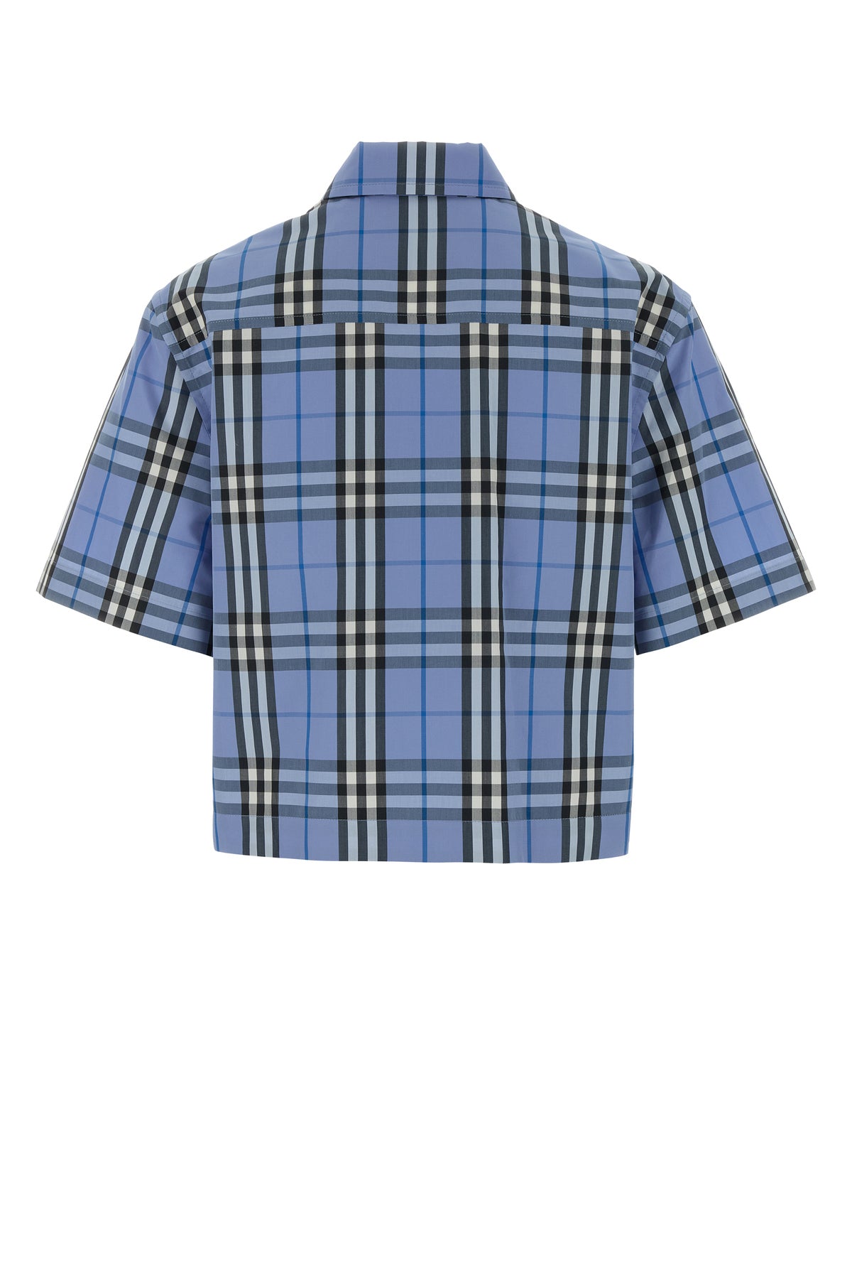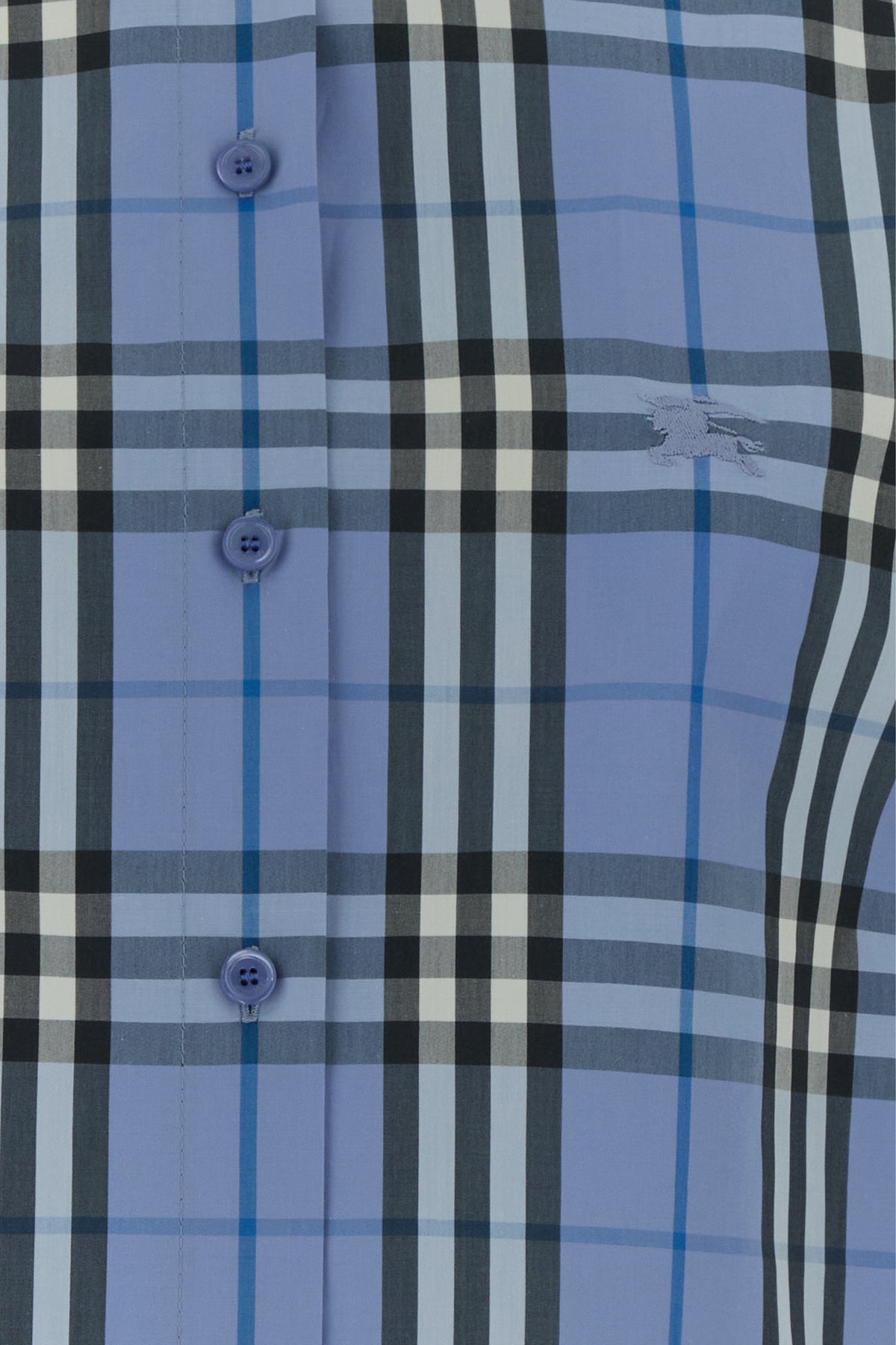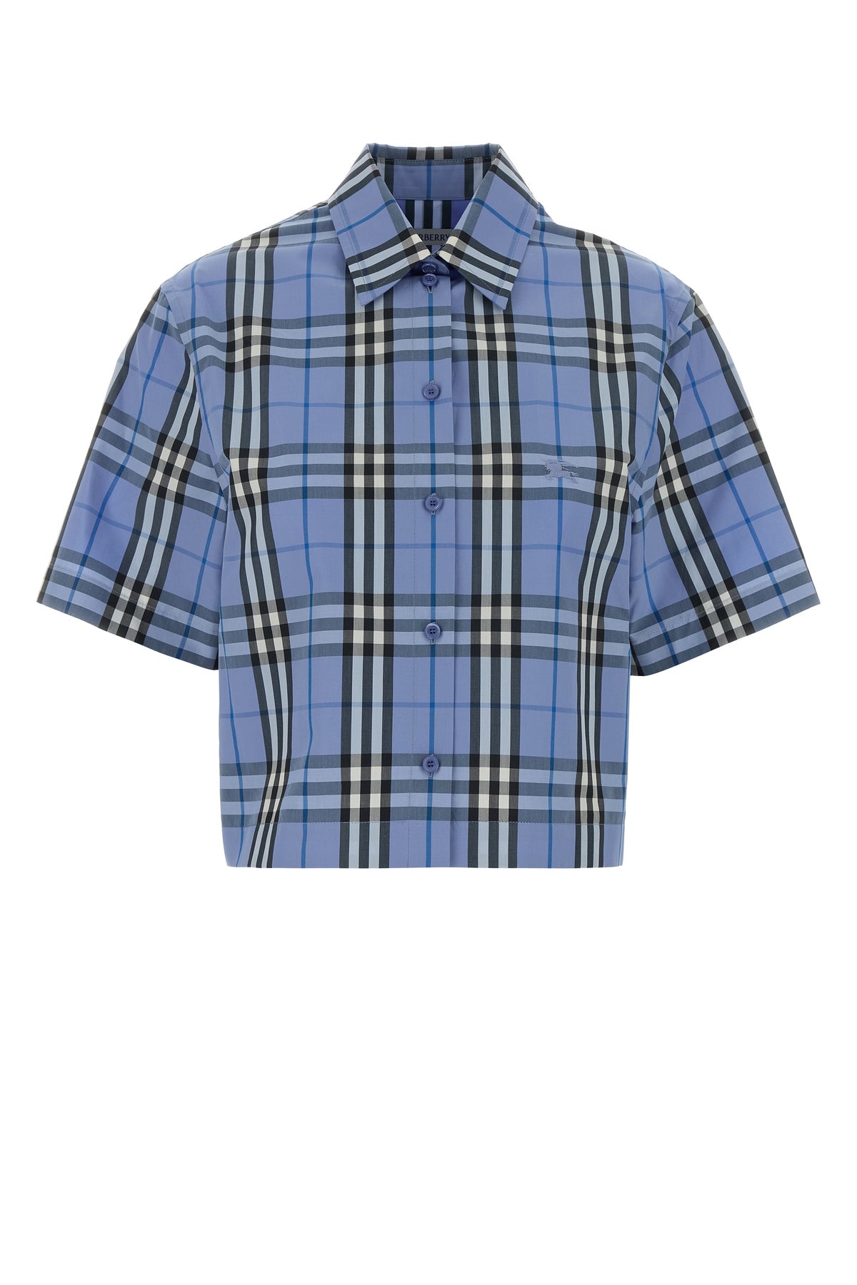 Camicia a maniche corte realizzata in puro cotone caratterizzata da ricamo Burberry Check su tutta la superficie e ricamo Equestrian Knight sul petto.