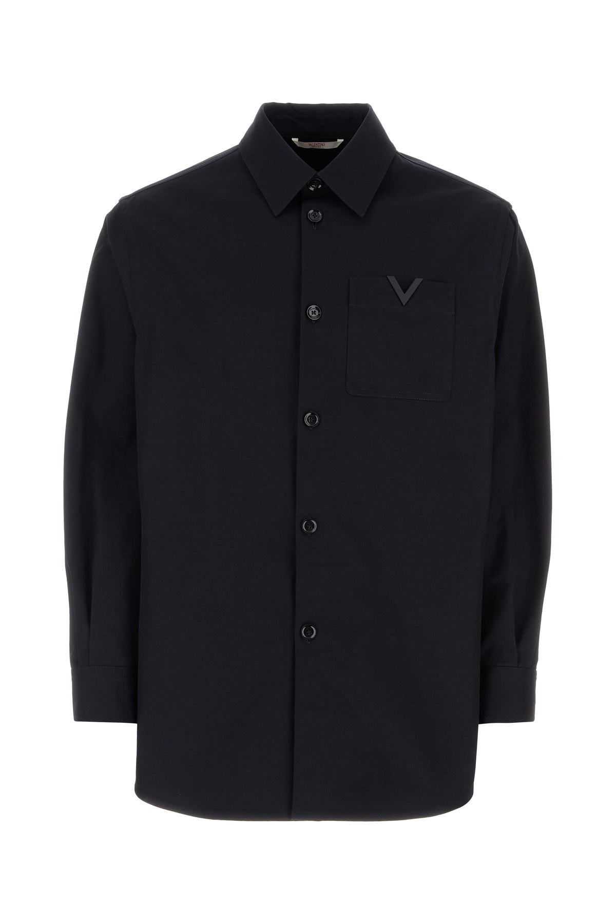 Camicia realizzata in cotone stretch arricchita da dettaglio metallico logato sul petto.