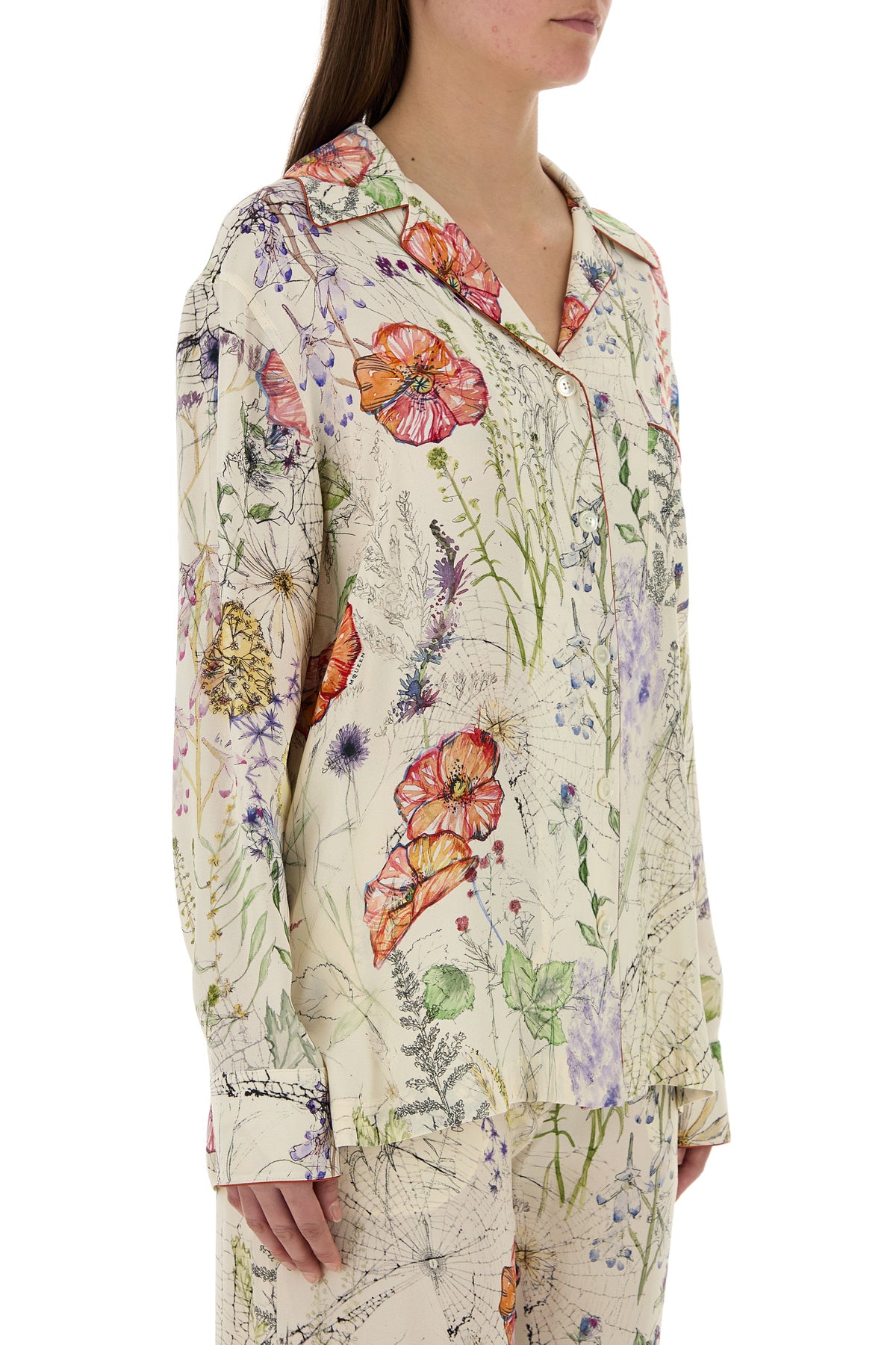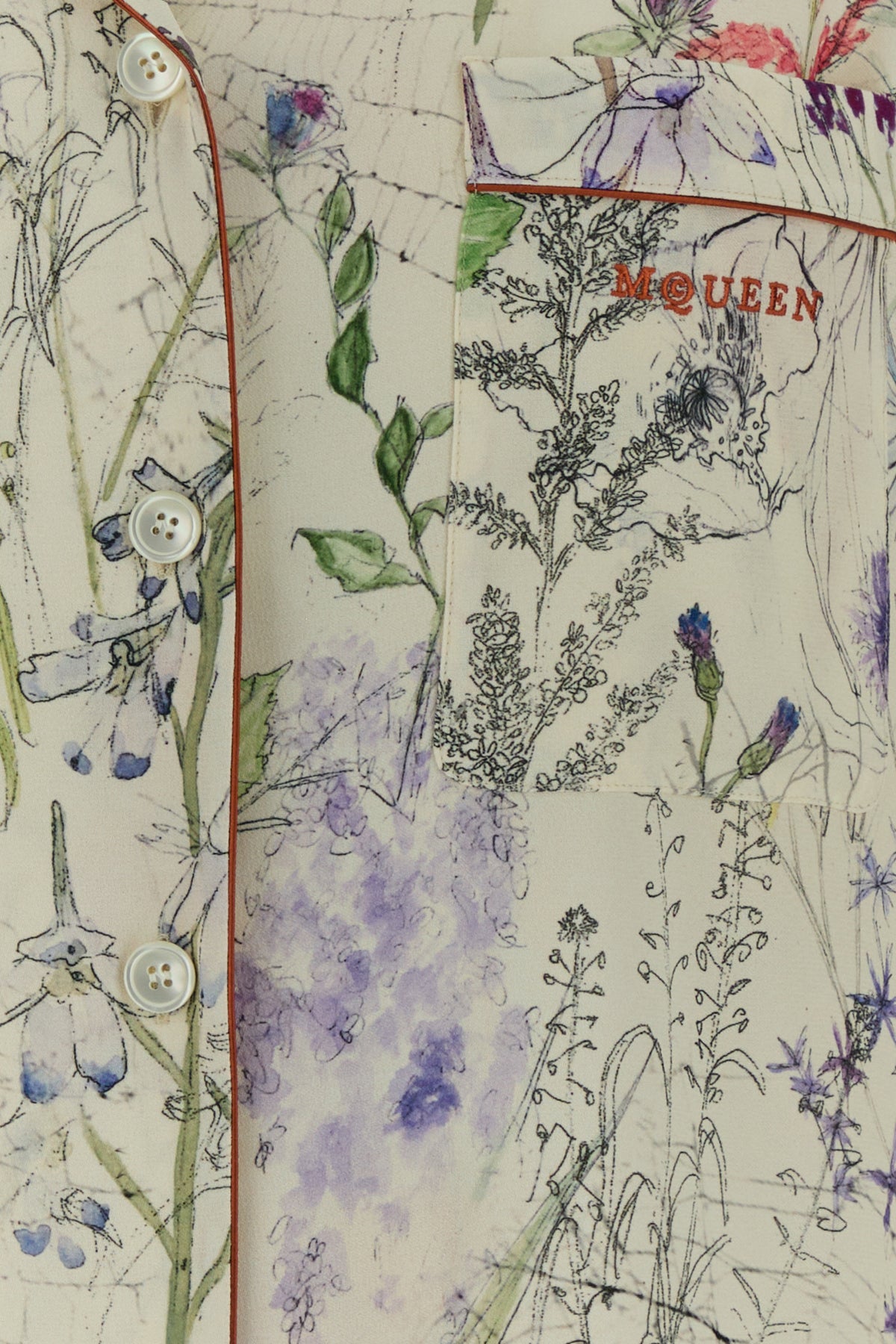 Camicia realizzata in crepe caratterizzata da stampa Meadow Floral su tutta la superficie e logo ricamato sul petto.