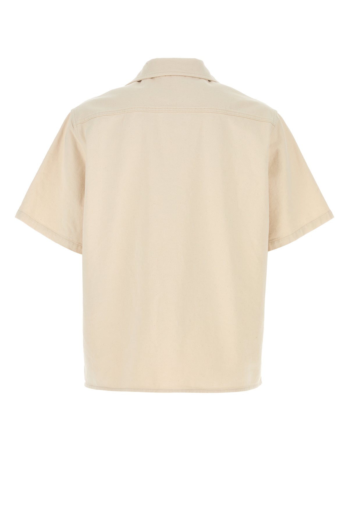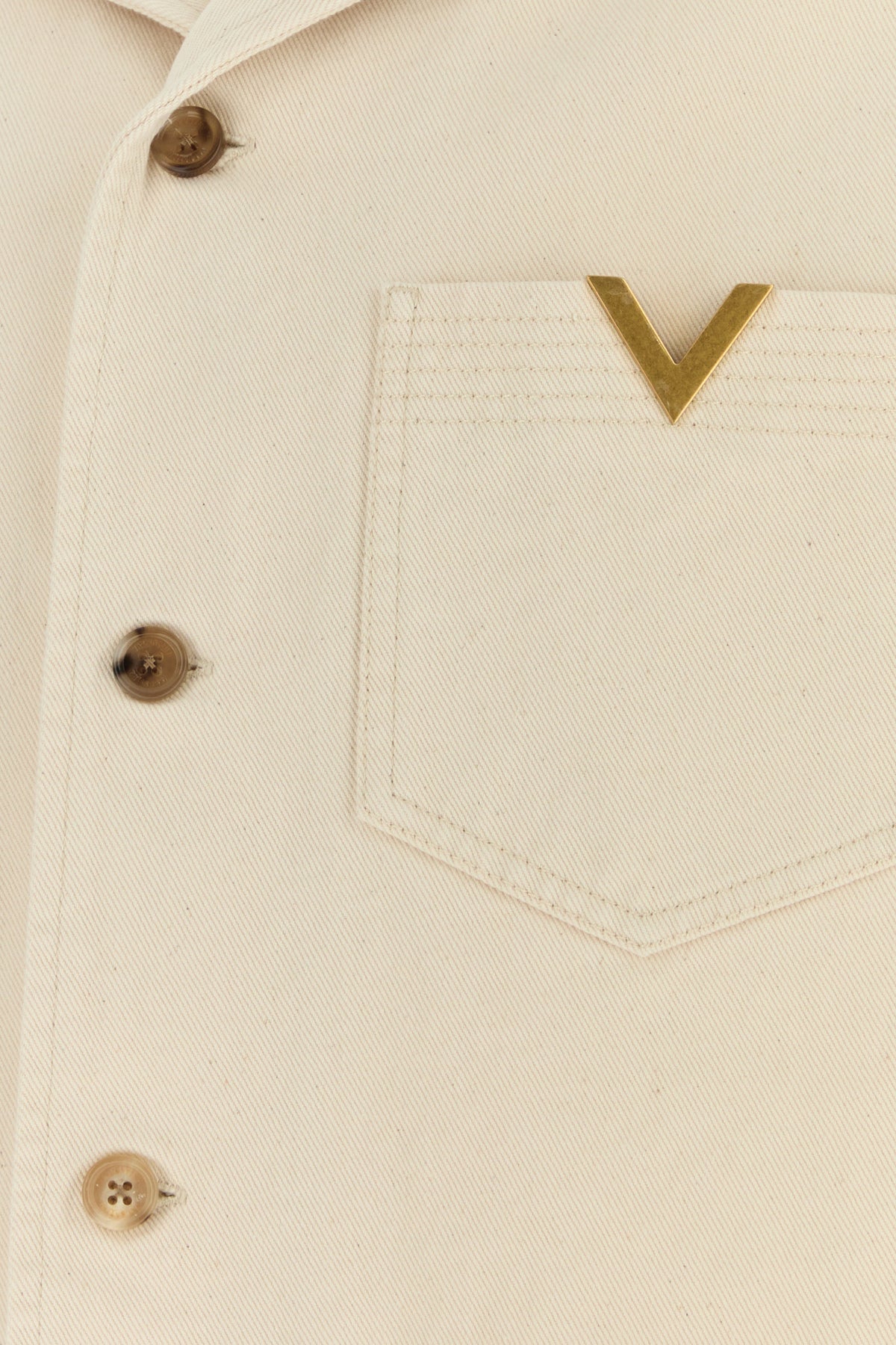 Camicia a maniche corte realizzata in denim di puro cotone arricchita da dettaglio metallico V sul petto.