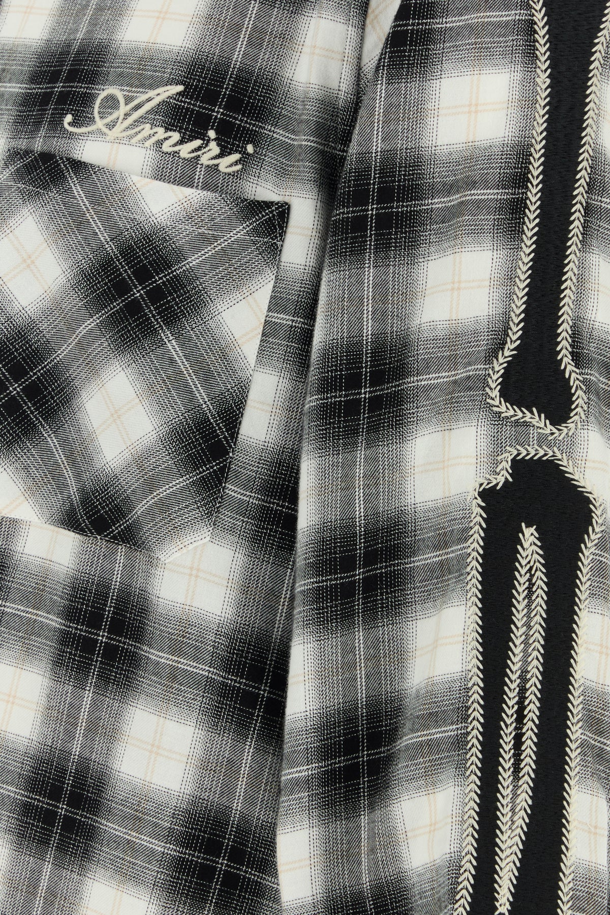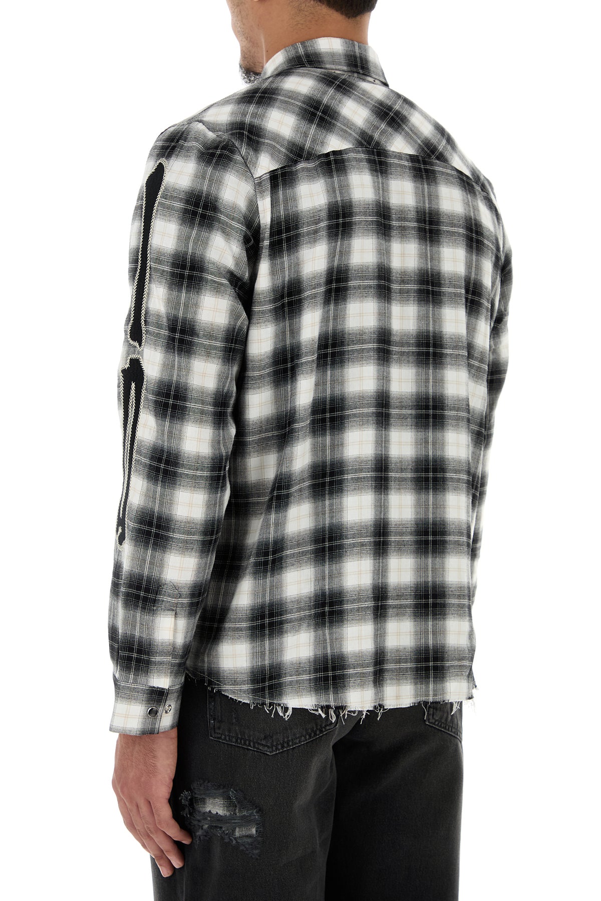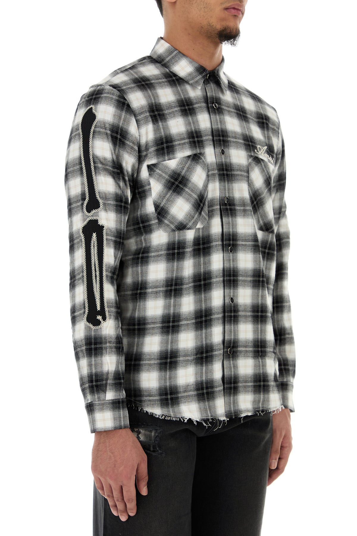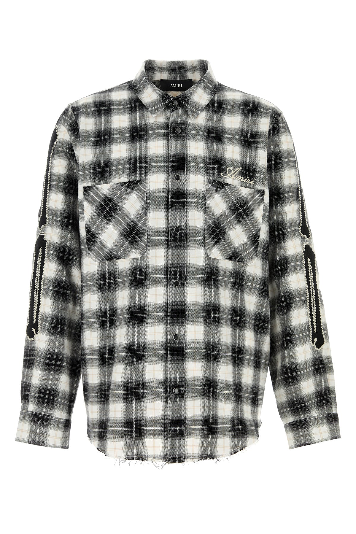 Camicia realizzata in flanella di puro cotone caratterizzata da ricamo a quadri su tutta la superficie, logo ricamato sul petto e ricamo Bones sulle maniche.