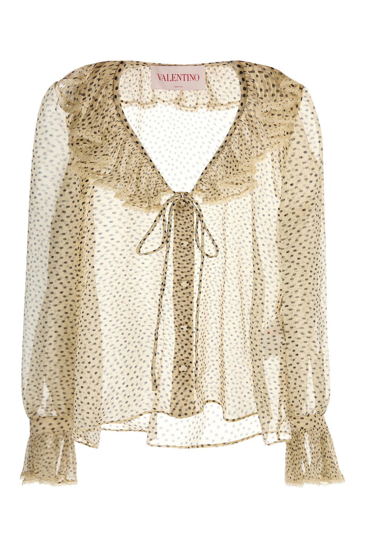 Camicia semitrasparente realizzata in georgette di pura seta caratterizzata da stampa Plusdepois su tutta la superficie.