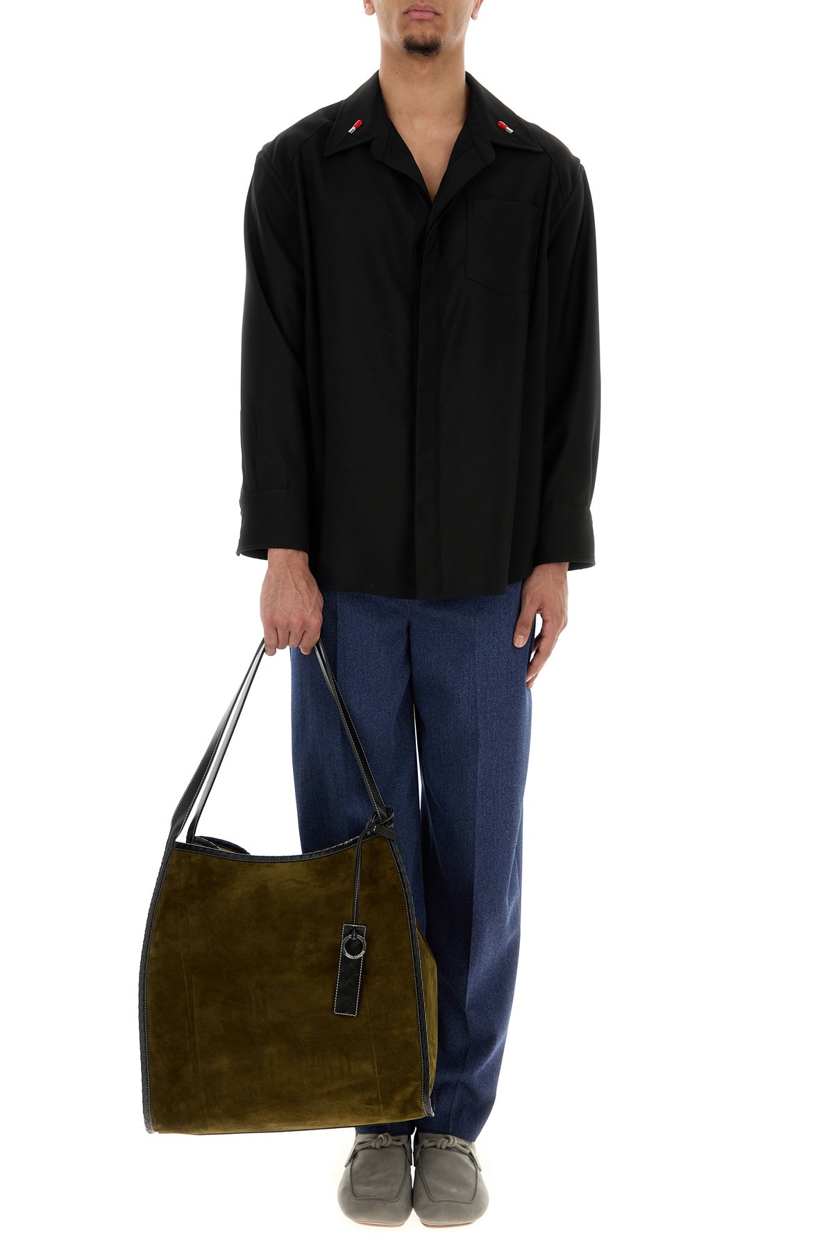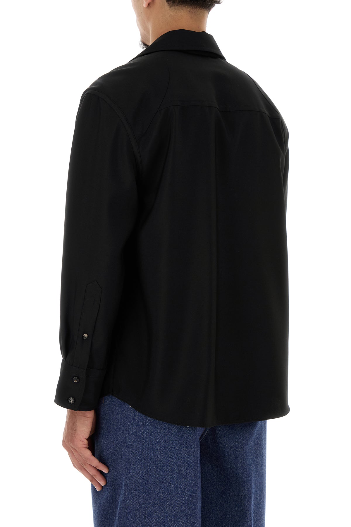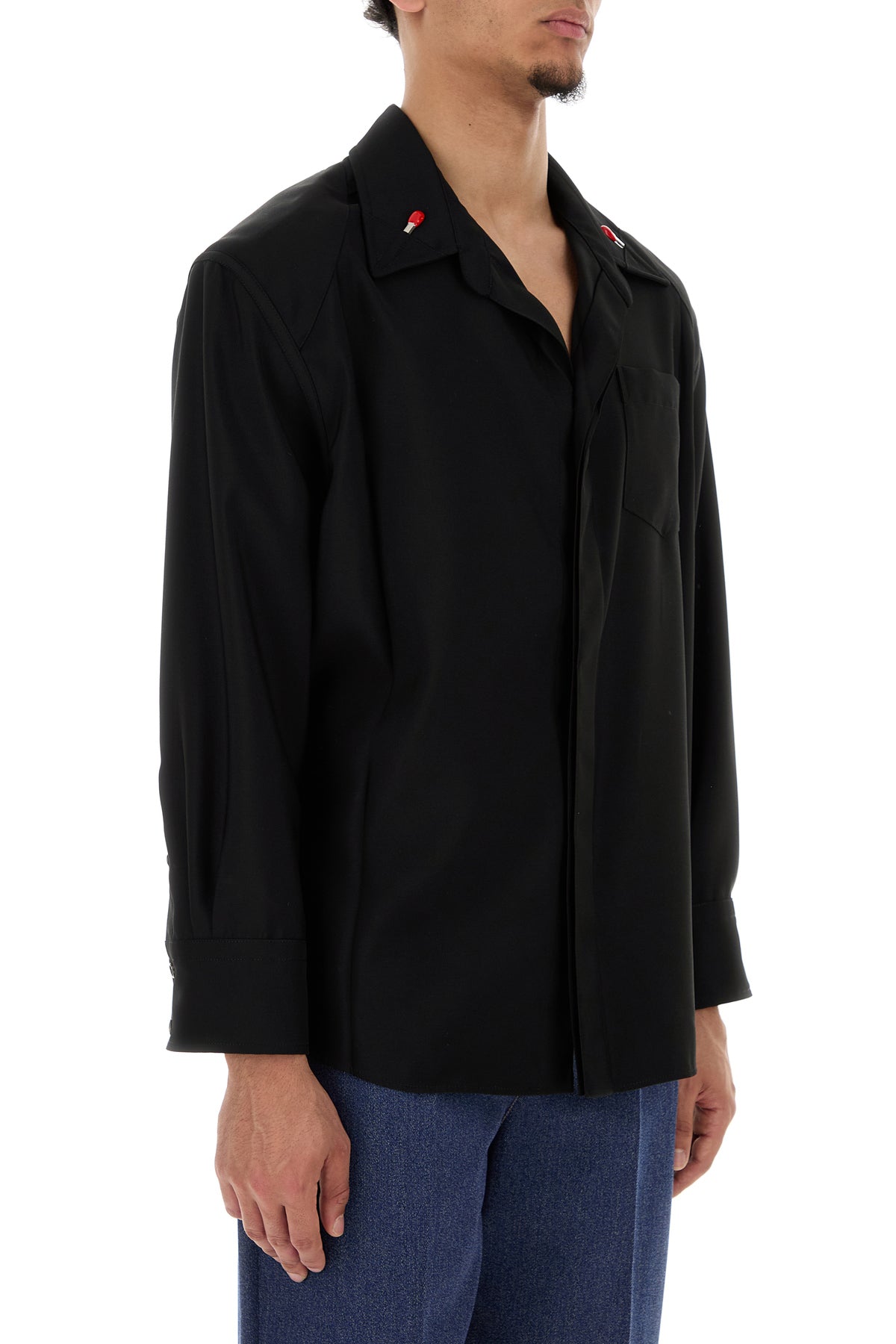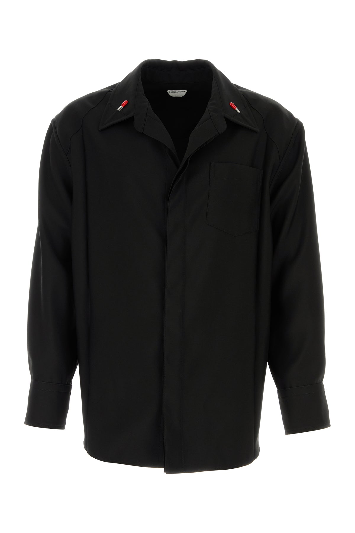 Camicia realizzata in pura lana arricchita da dettagli metallici Fiammiferi sul colletto a revers.