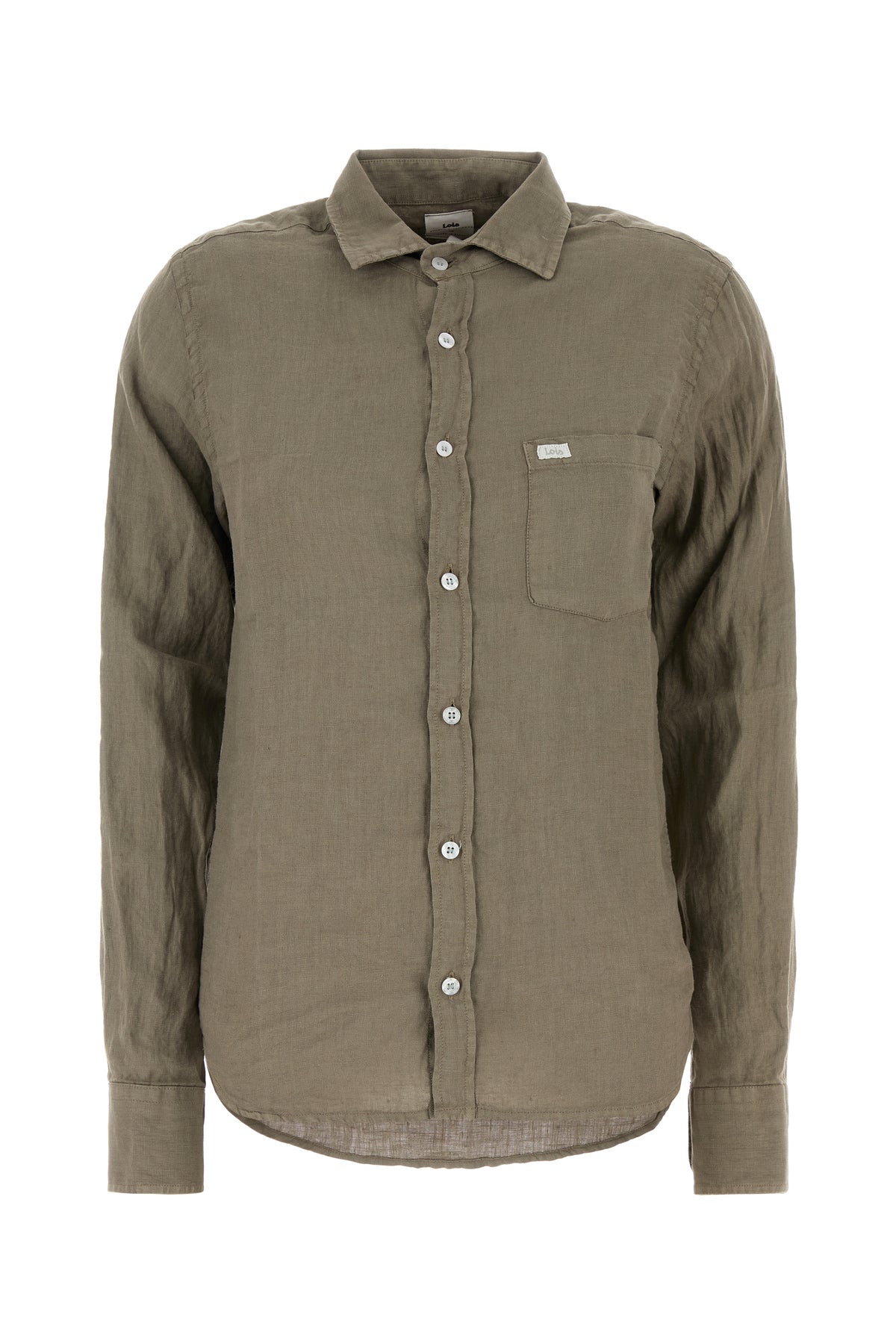 Camicia realizzata in puro lino arricchita da etichetta logata a contrasto sul petto.