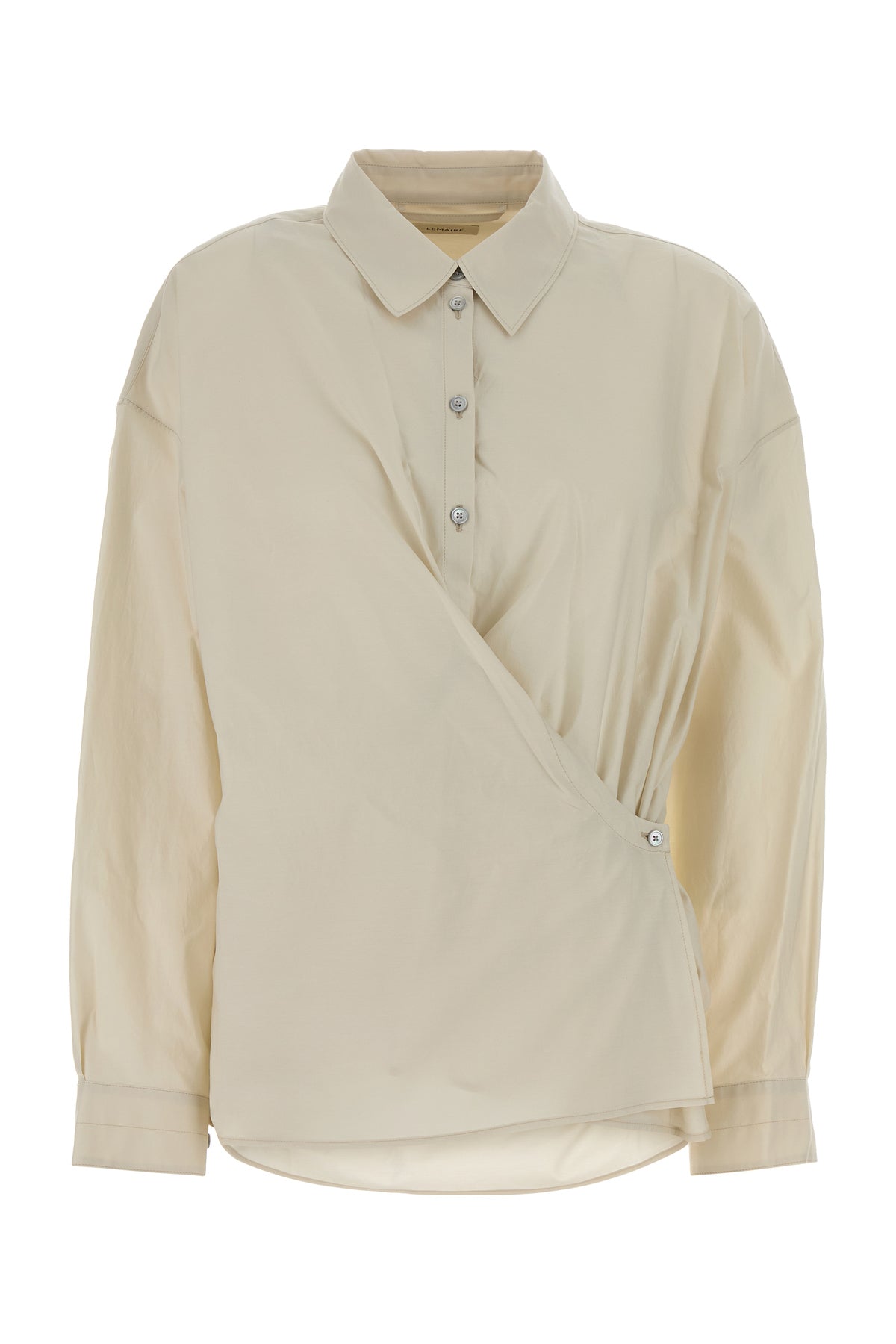 Camicia realizzata in cotone e seta caratterizzata da chiusura twisted mediante bottoni.