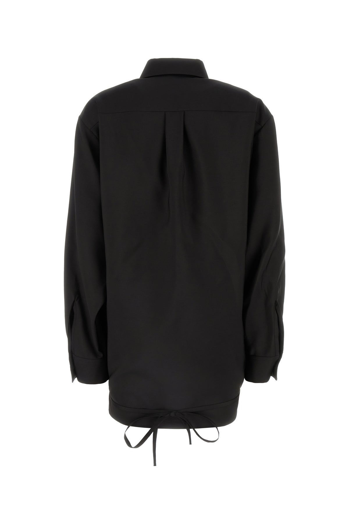 Camicia realizzata in misto lana caratterizzata da chiusura mediante lacci da annodare sul fondo.