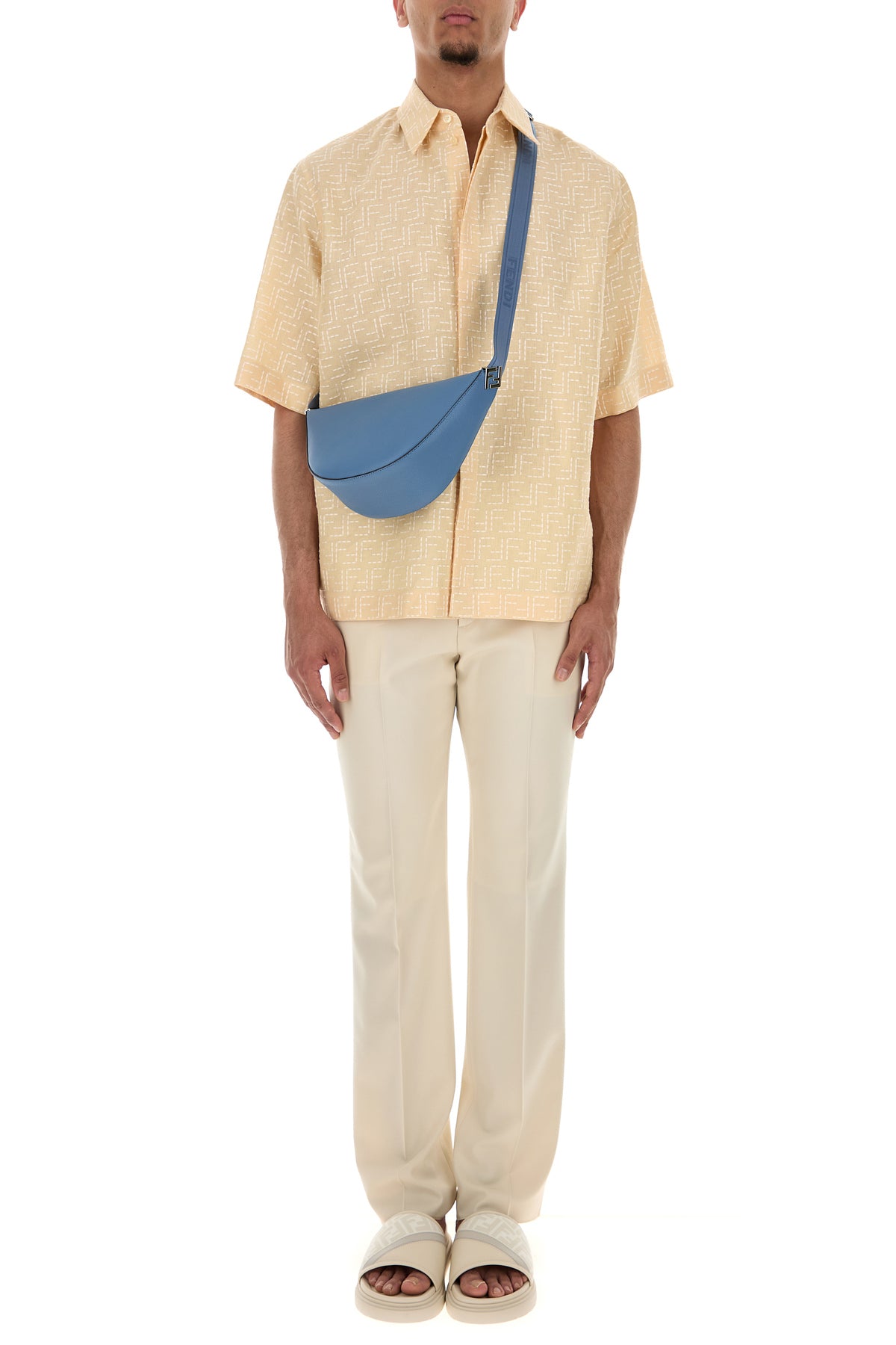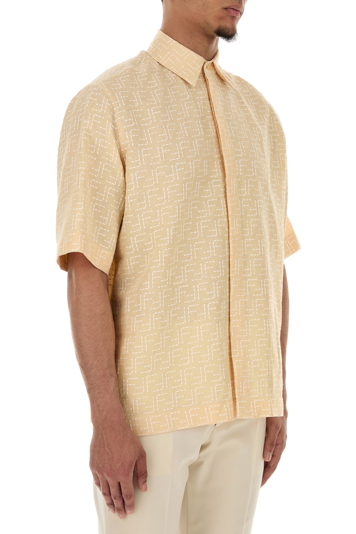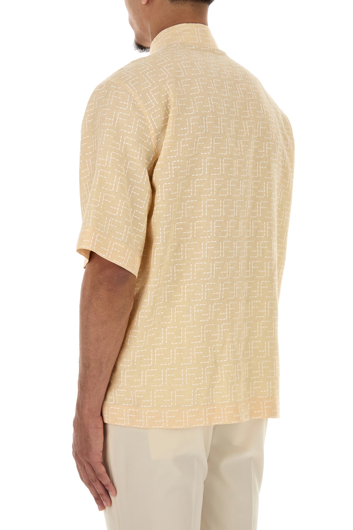 Camicia a maniche corte realizzata in lino e cotone caratterizzata da ricamo FF su tutta la superficie.